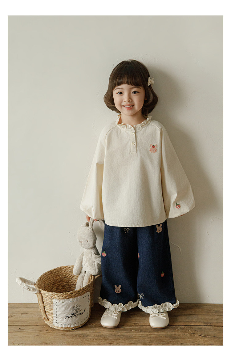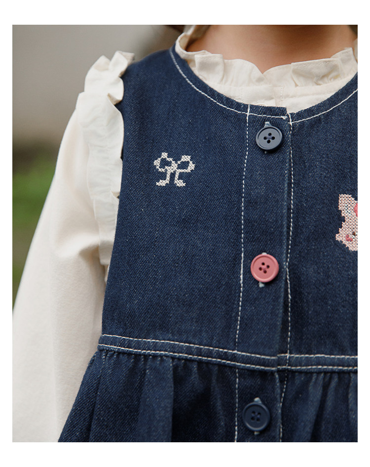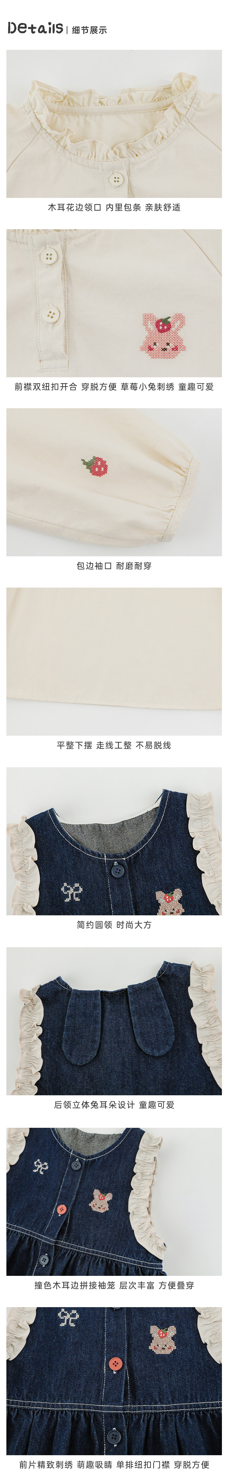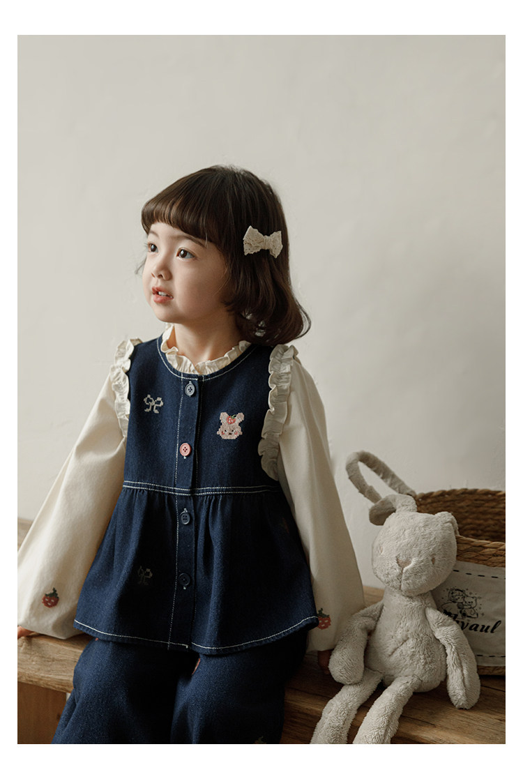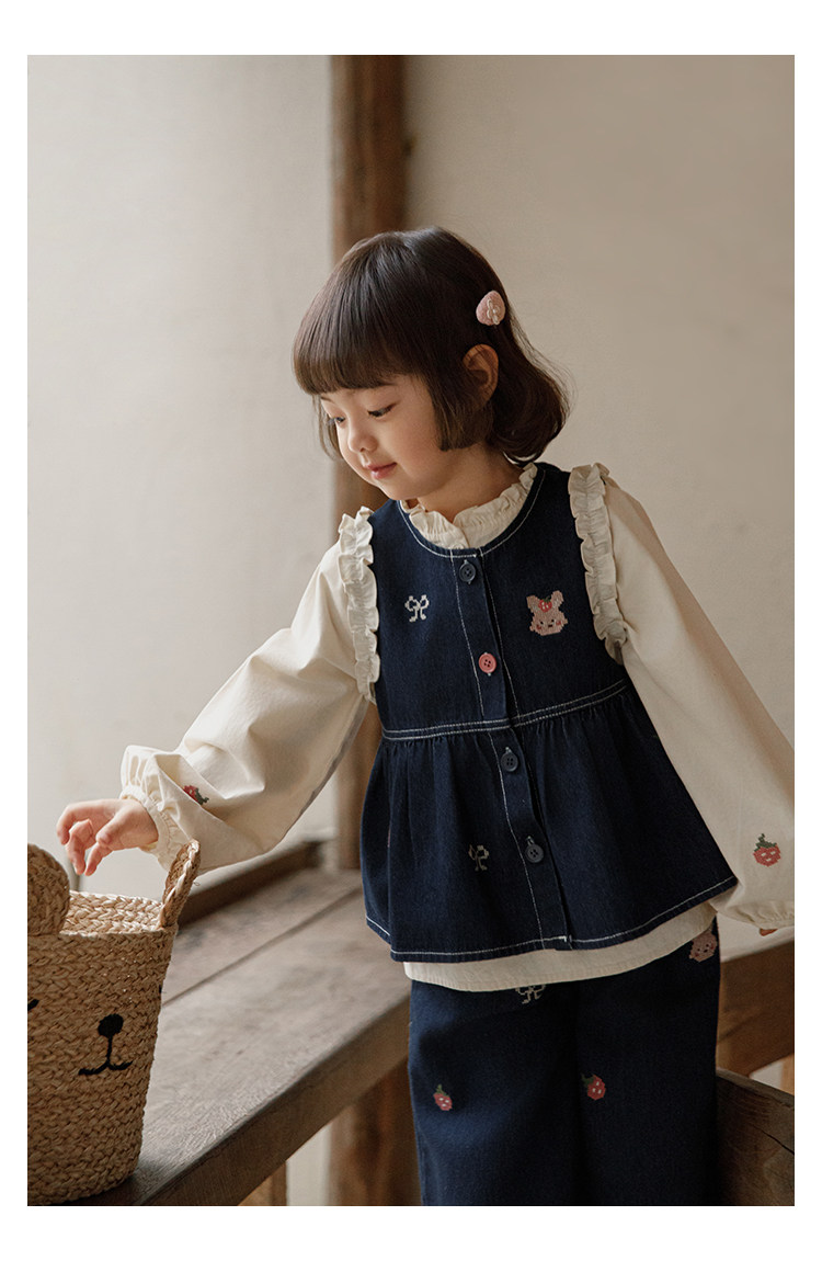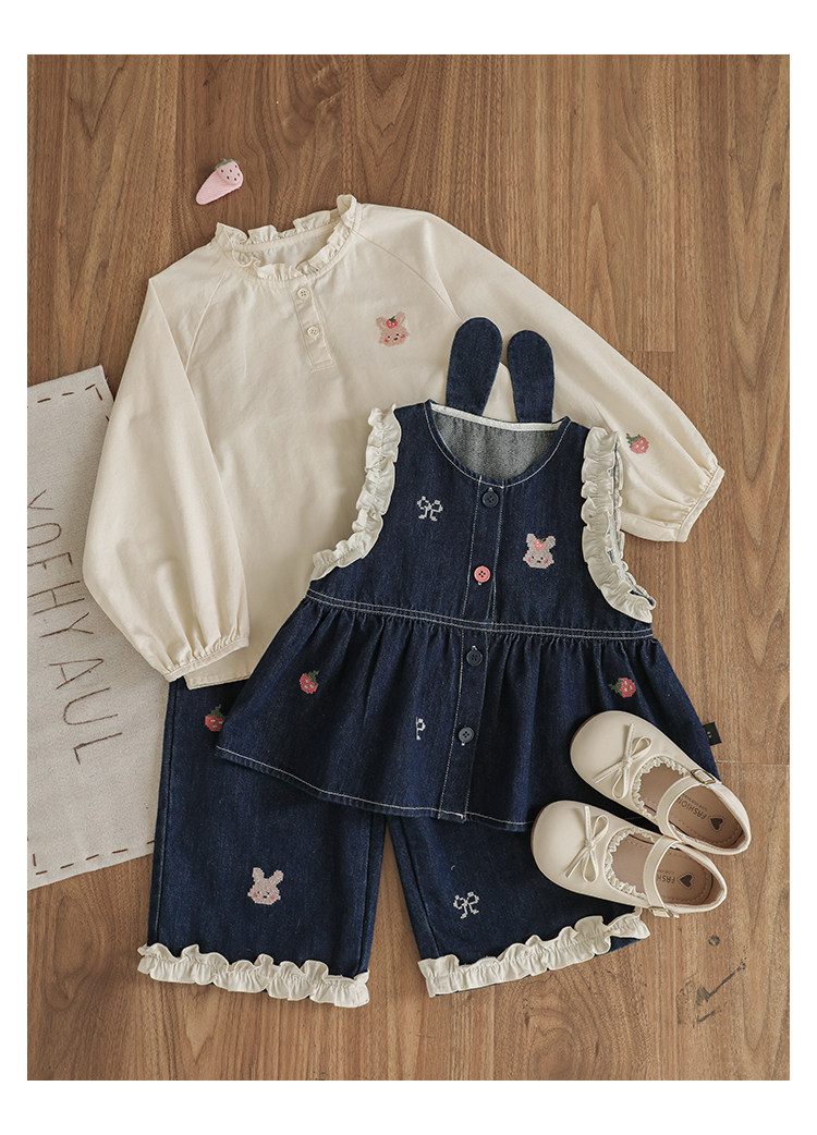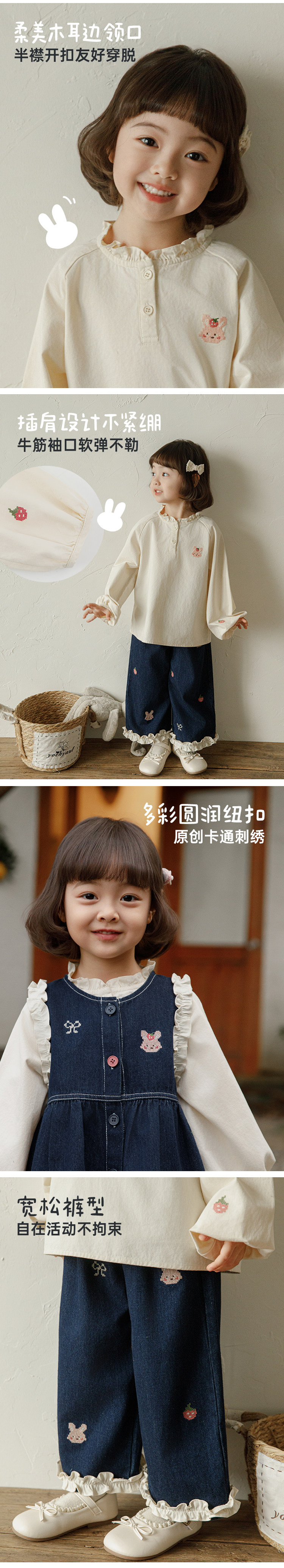 Wulibuyi niñas 2026 primavera nueva camisa de cuello de hongo para niños chaleco sin mangas jeans set