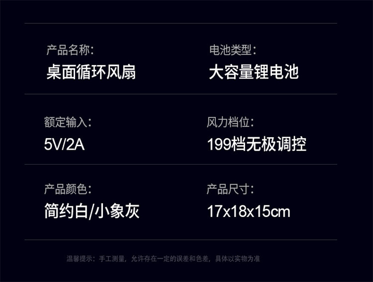 | Color | Blanco, ventilador de doble cabeza plegable, ventilador de escritorio sin paletas gris, ventilador de escritorio sin paletas blanco beige, ventilador de piso sin paletas blanco beige, ventilador de piso sin paletas gris, ventilador de circulación F15 [pequeño elefante gris], ventilador de circulación F15 [blanco simple], ventilador F16 [estándar-púrpura gris], ventilador F16 [estándar-púrpura gris], ventilador F16 [hielo-púrpura gris], ventilador F16 [hielo-púrpura gris], ventilador F16 [hielo-púrpura blanco], ventilador de cintura beige, ventilador de cintura colgante blanco, Ventilador de circulación JS898 modelo básico, ventilador de circulación JS898 modelo de control remoto, gris púrpura de escritorio, blanco de escritorio, ventilador de cintura de 100 velocidades gris, ventilador de cintura de 100 velocidades naranja, modelo de inserción directa de metal gris de piso, modelo de carga de metal gris de piso, modelo de voz de metal gris de piso 8000 mAh, ventilador de 888 - verde fresco [mejorado sacude automático], ventilador de 888 - verano [mejorado sacude automático de piso] |