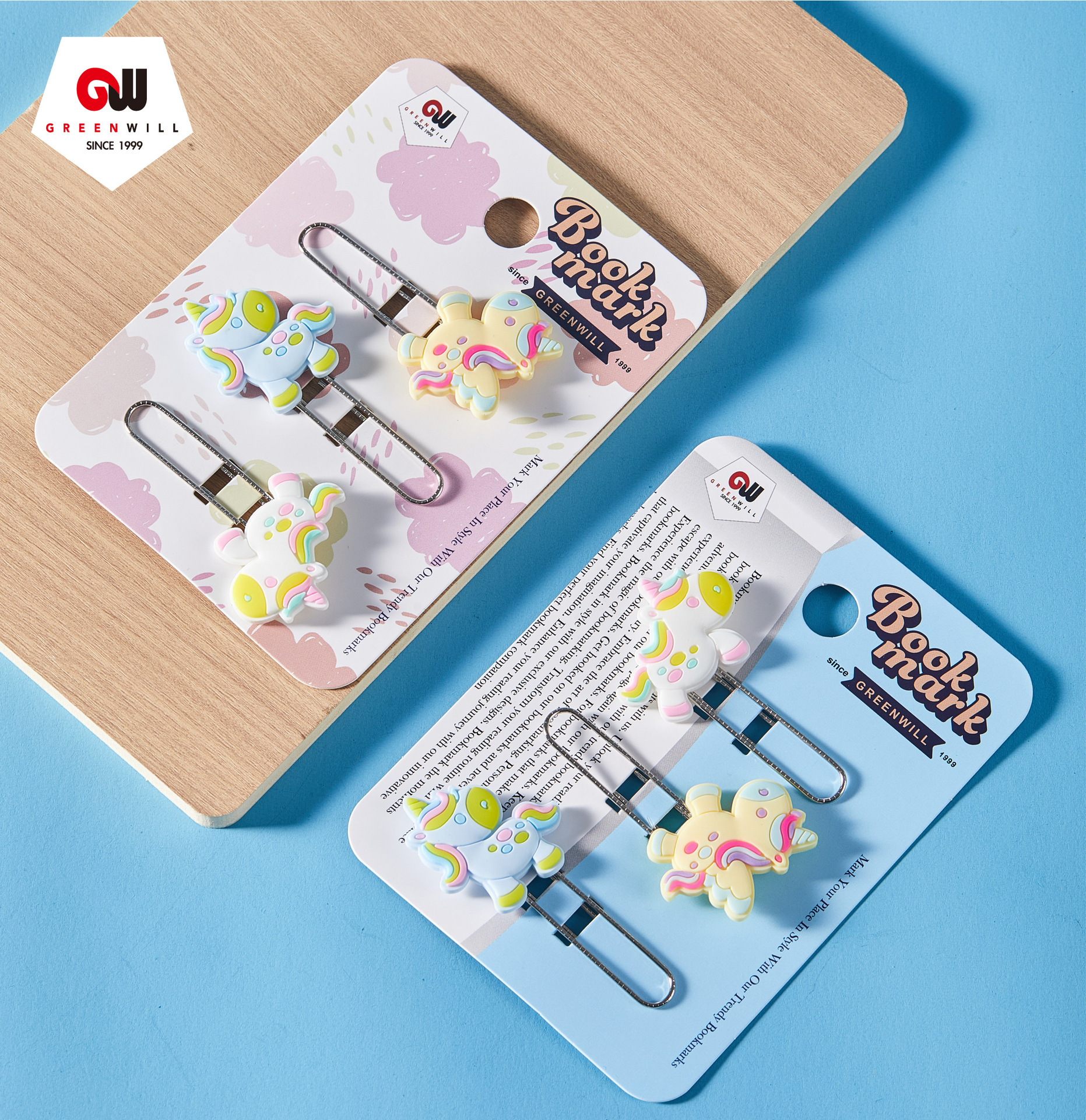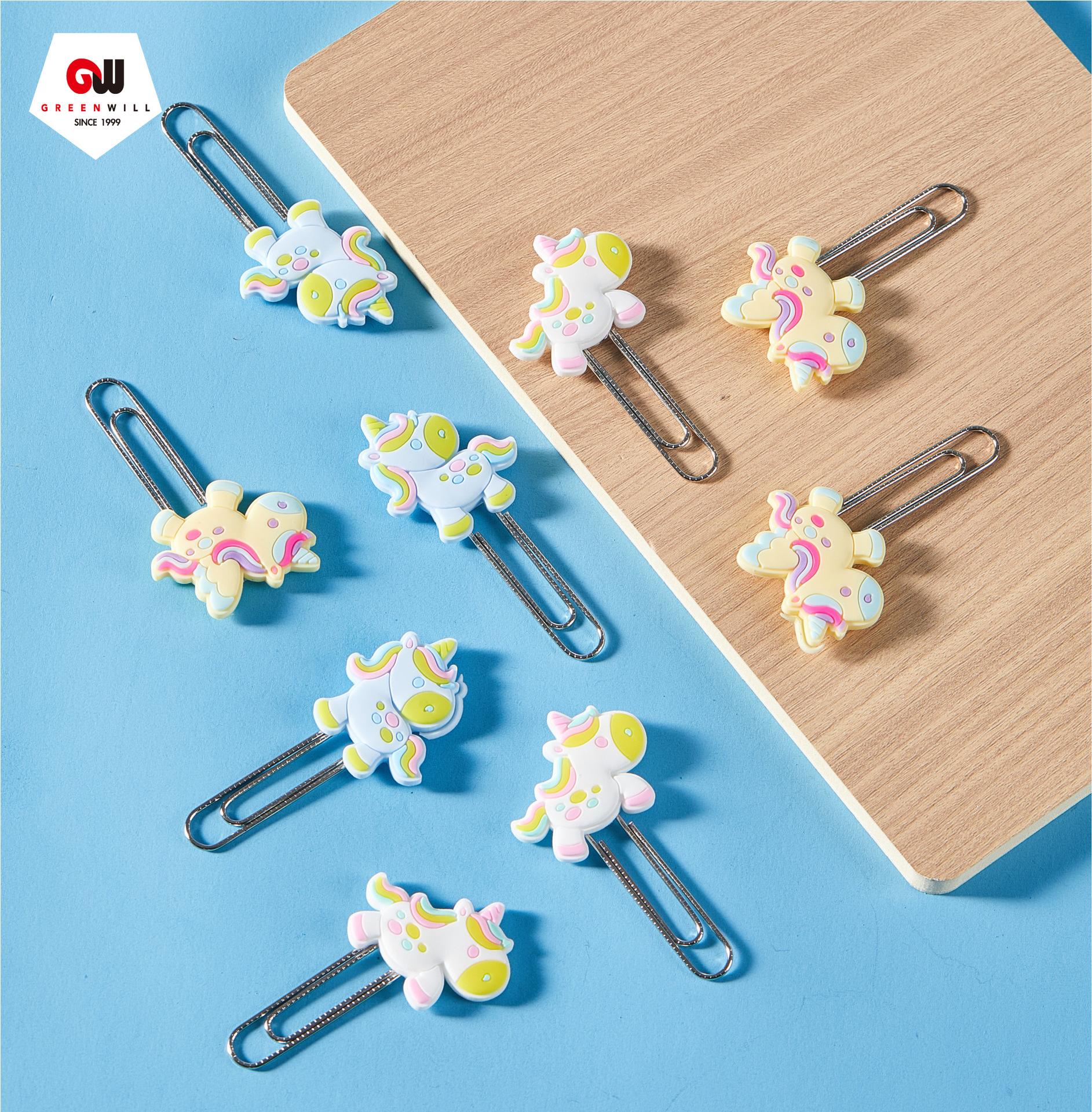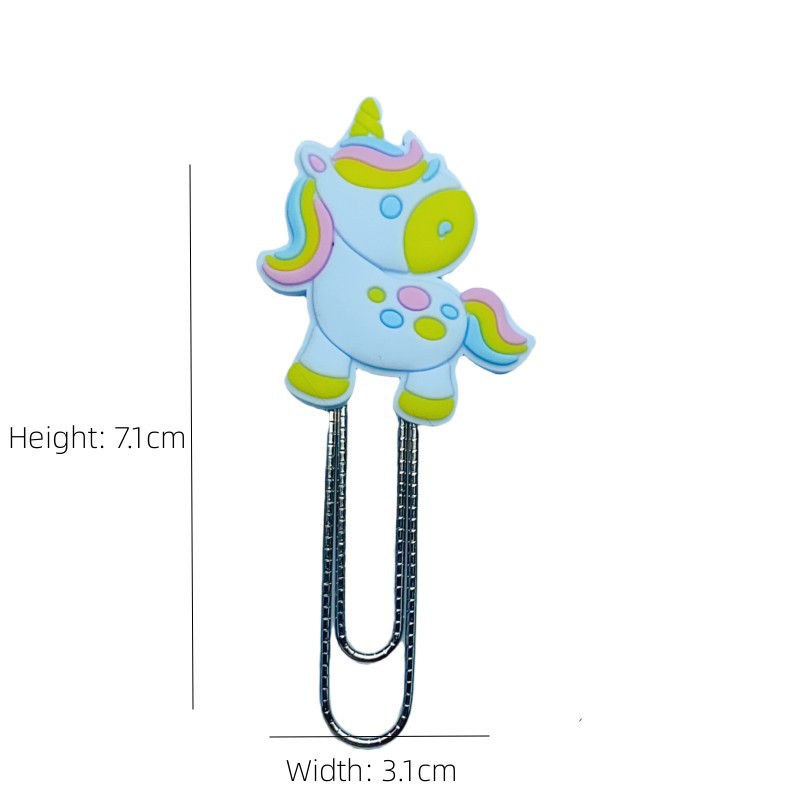 Unicornio de dibujos animados clips marcadores de libros de estudiantes carpeta de páginas adorable suministros de oficina pequeños regalos escolares pegamento suave