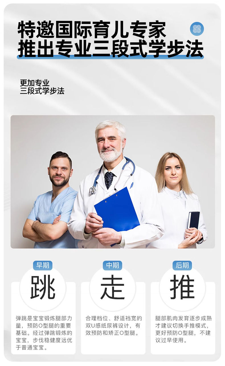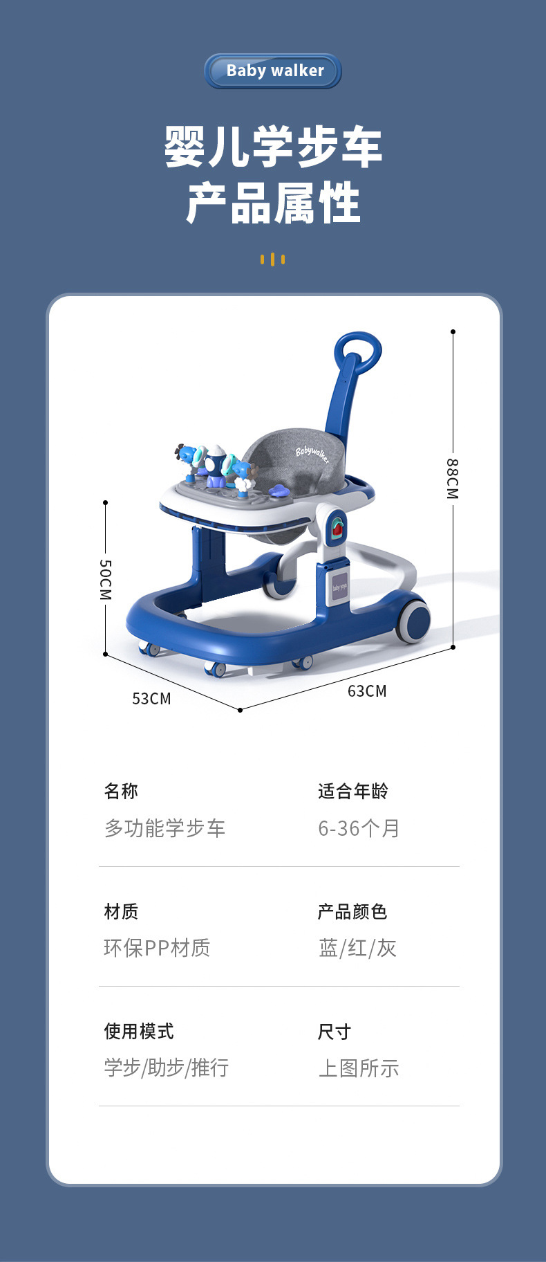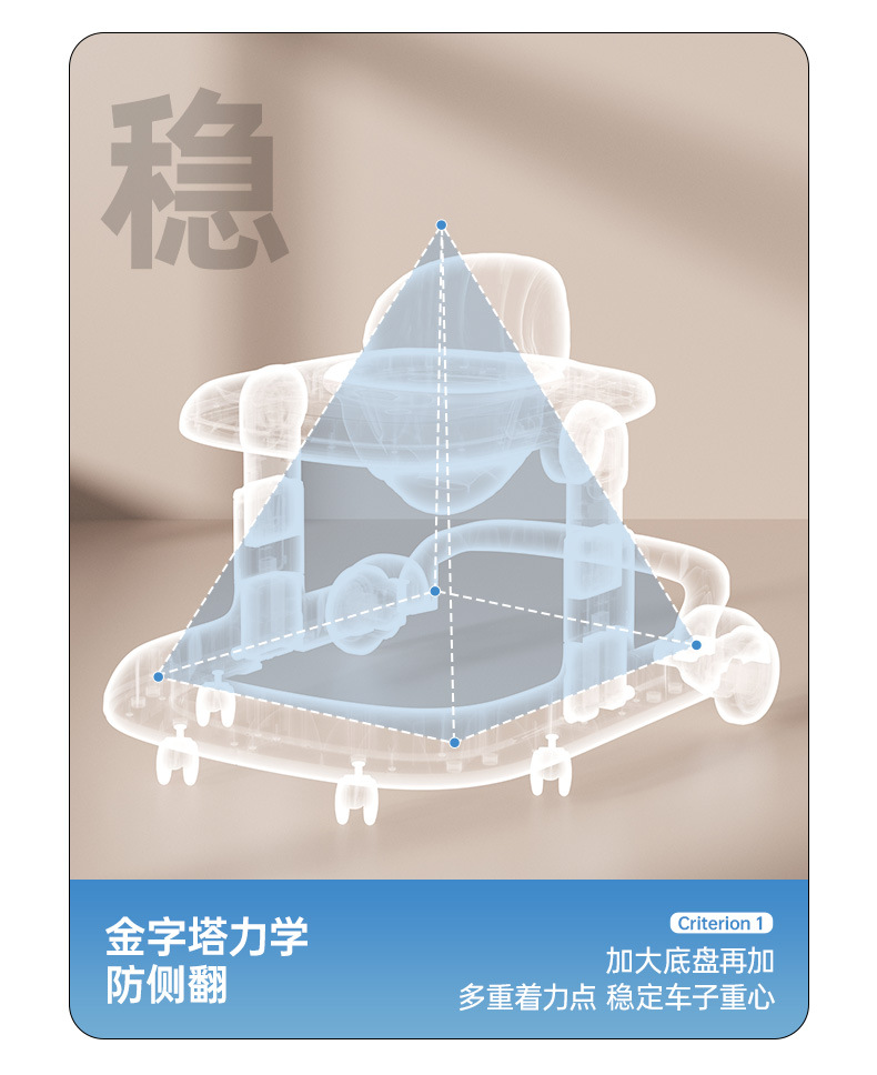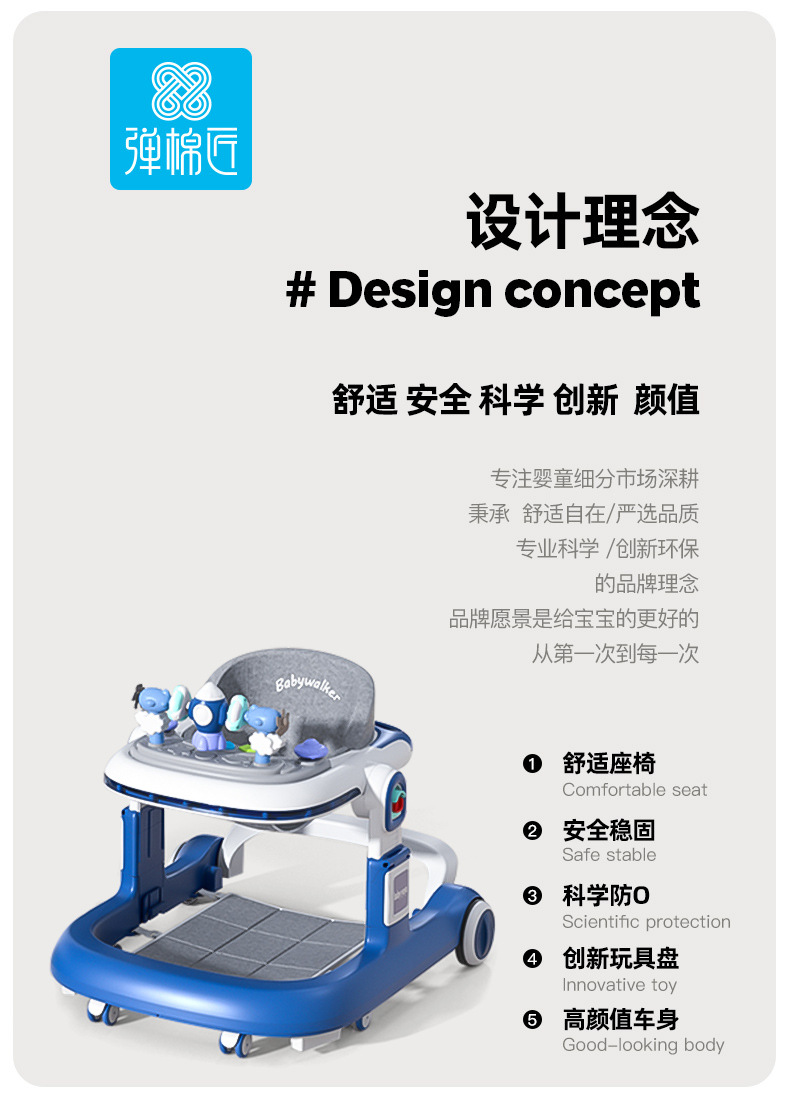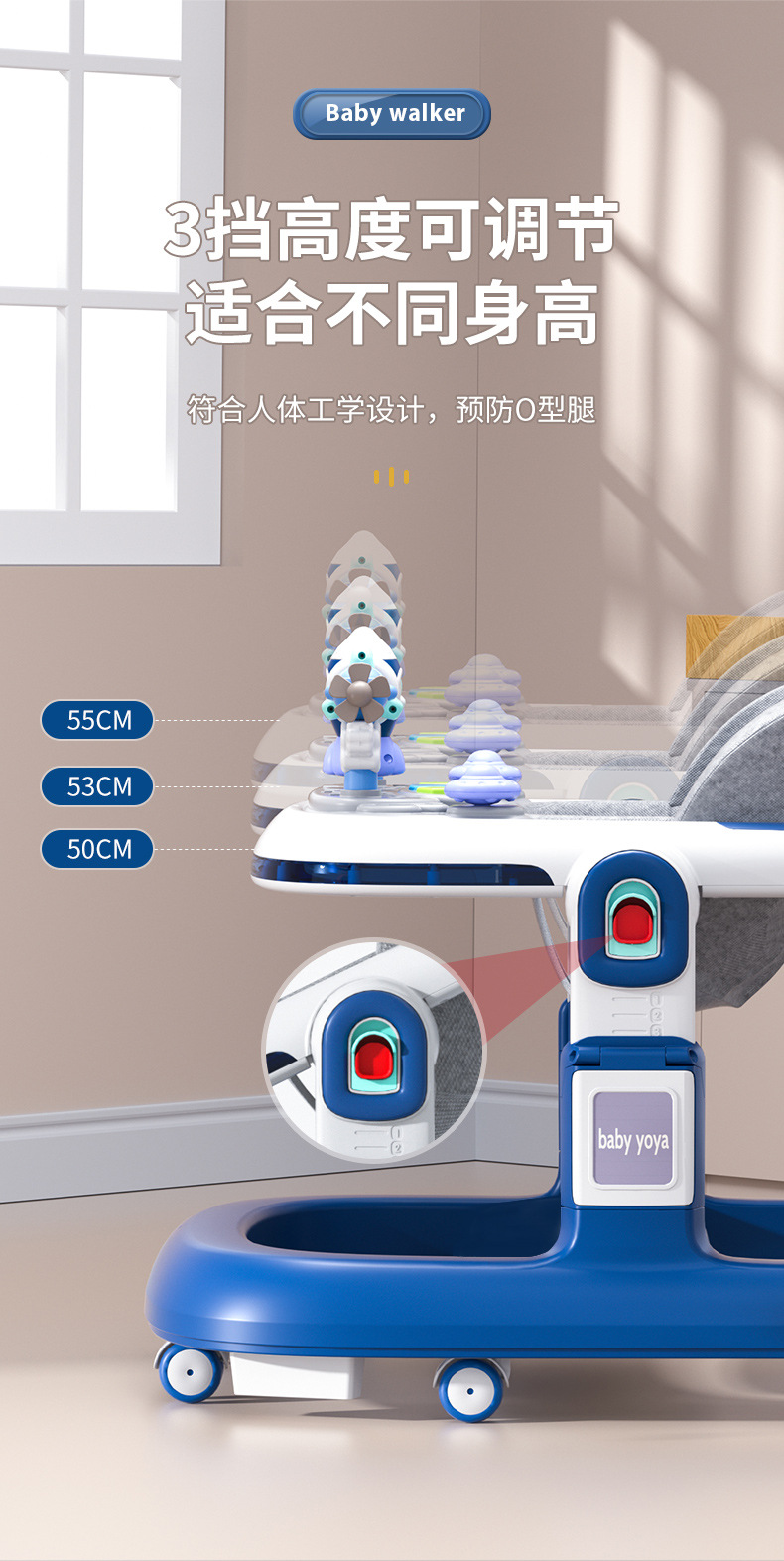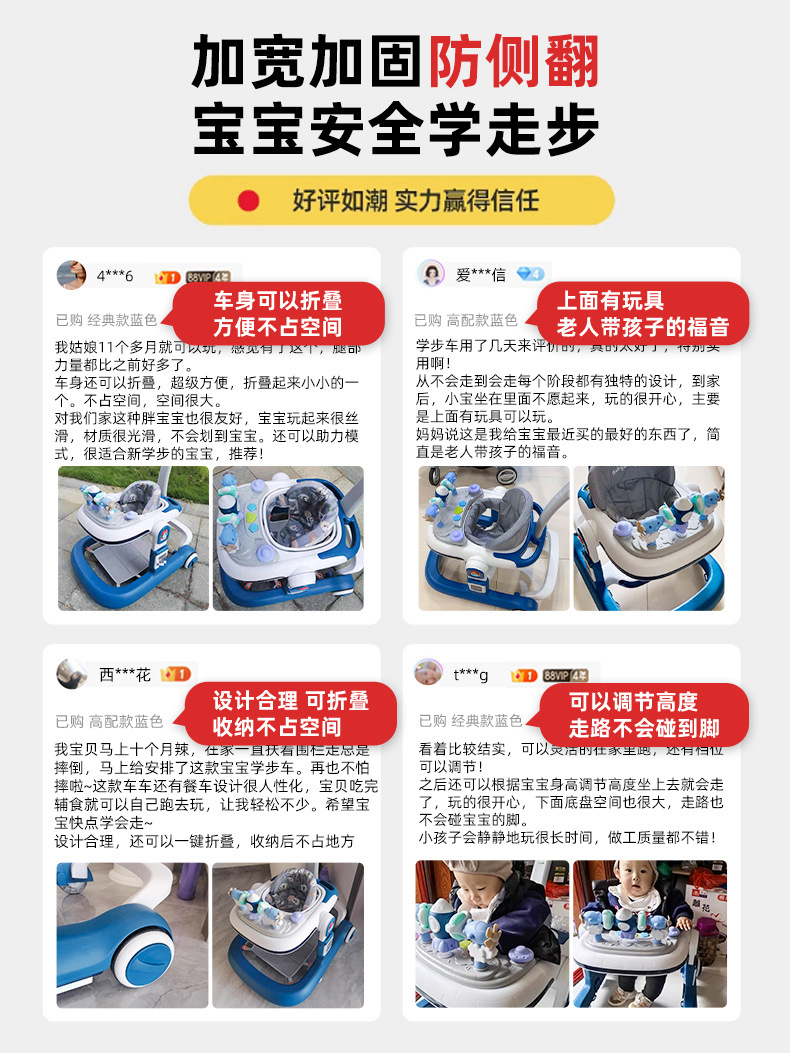 El andador para bebés y niños pequeños es anti-vuelco durante 6-18 meses.
