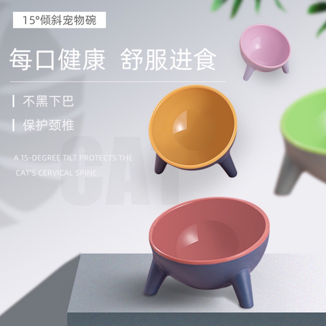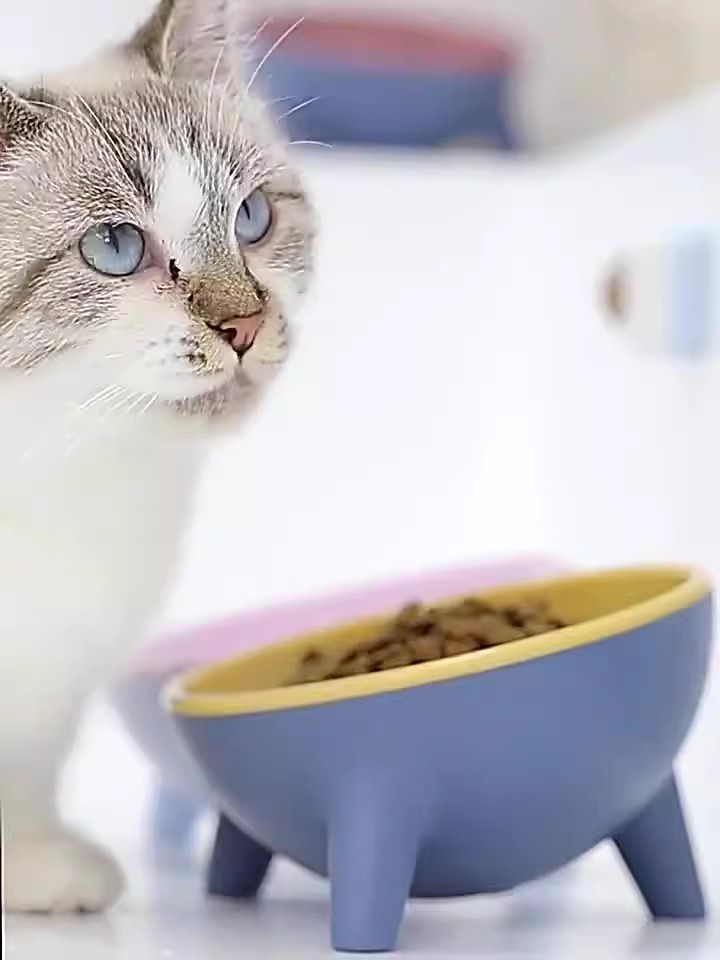 Tazón de comida para gatos de boca inclinada anti-derrumbe Tazón de comida para gatos de pies altos Tazón de agua para gatos Tazón de comida para gatos Protección de columna cervical Tazón de arroz para perros