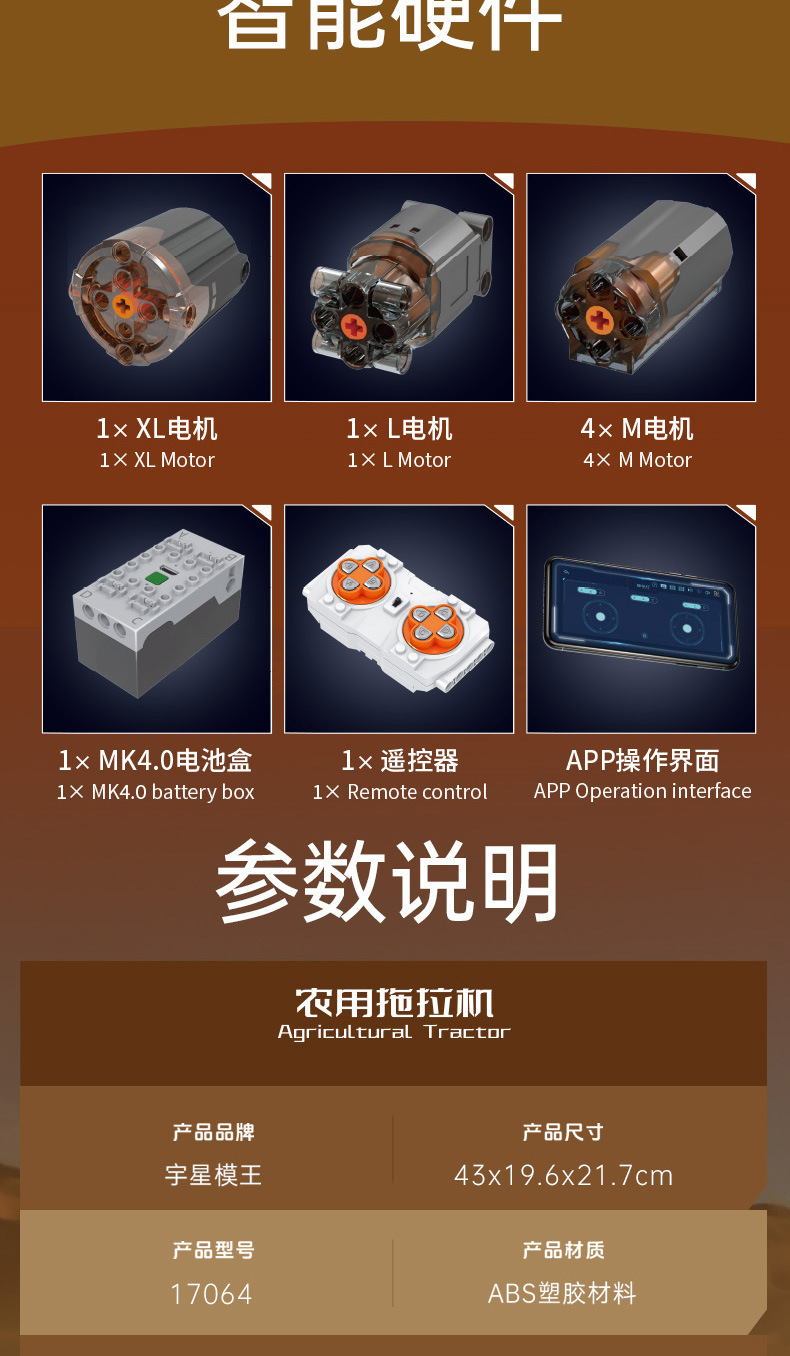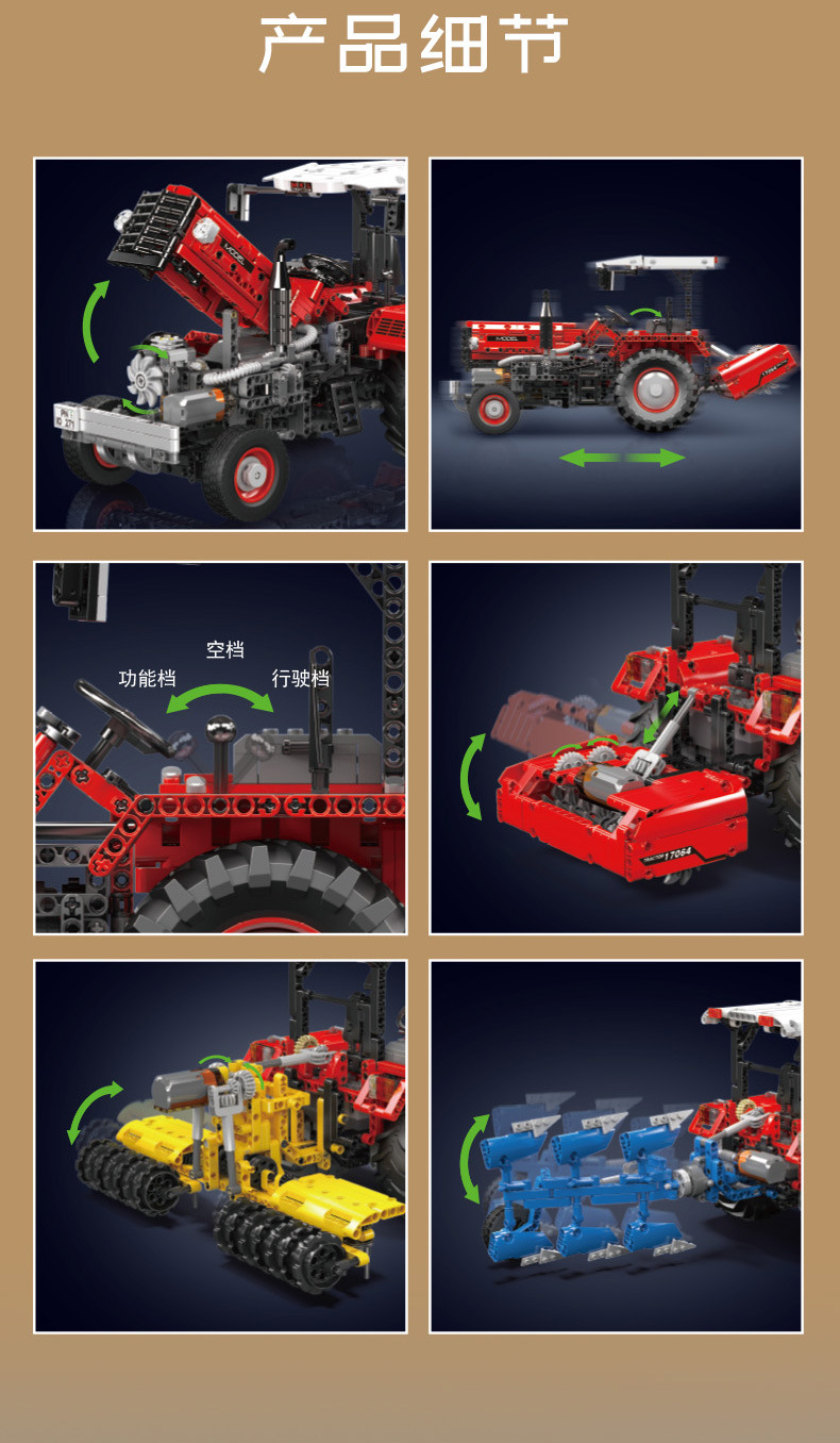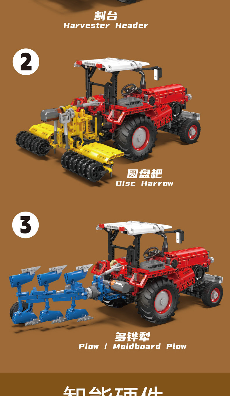 Nuevos productos de ingeniería de Yuxing 17064 tractor agrícola grandes juguetes de bloques de construcción regalo para niños de alta dificultad ensamblaje