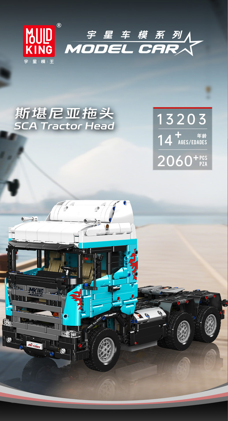 Modelo de vehículo espacial 13203 Scania tractor gran bloque de alta dificultad ensamblaje de control remoto regalos para niños eléctricos