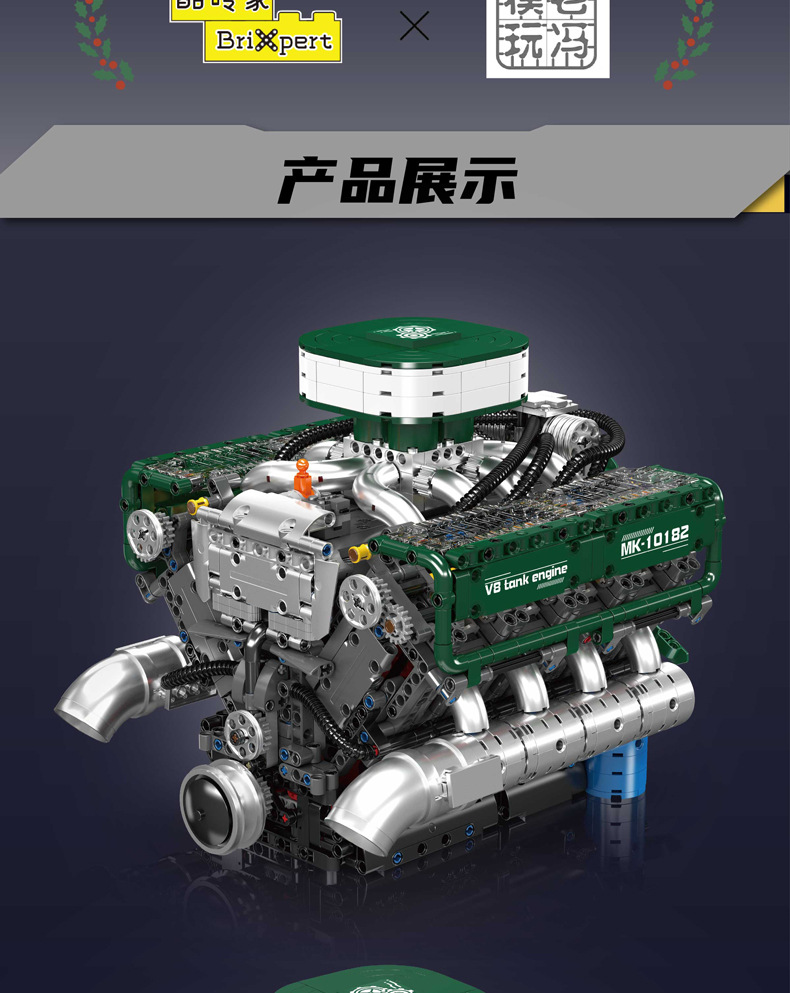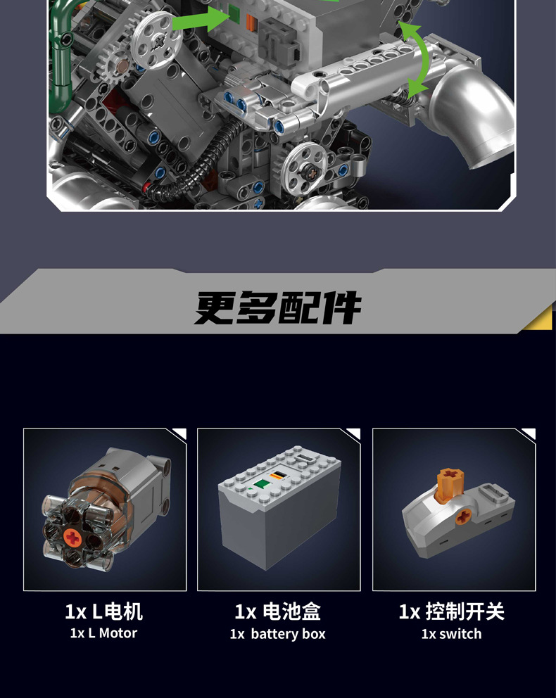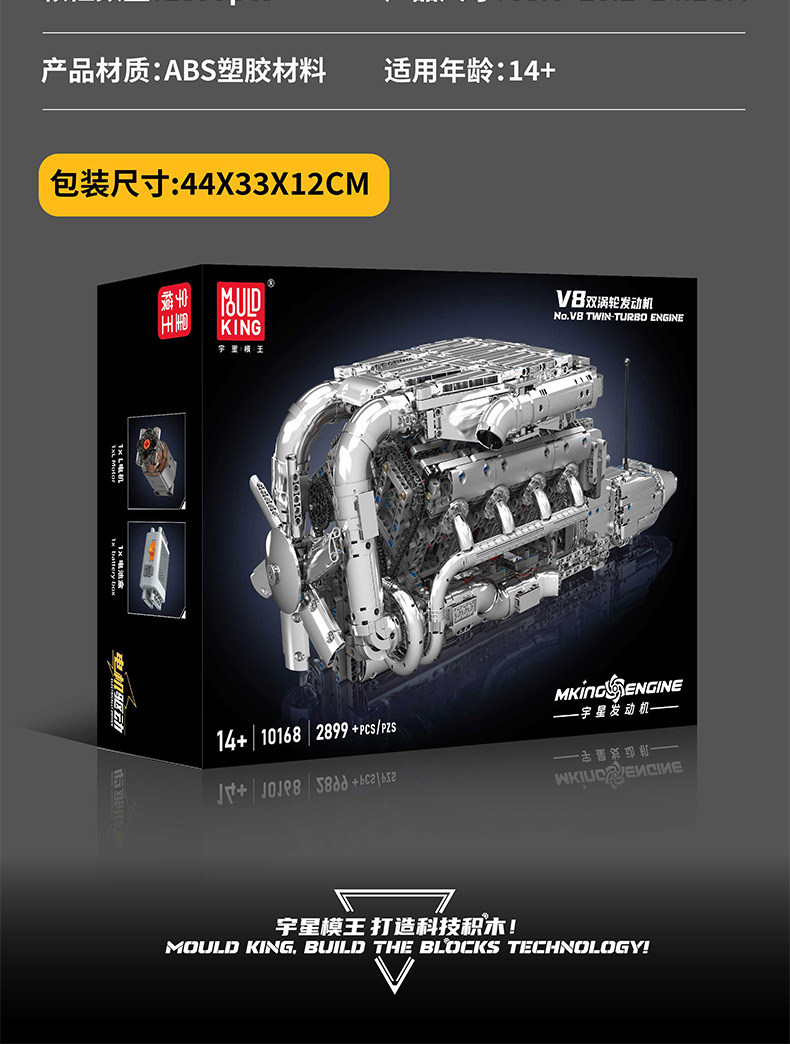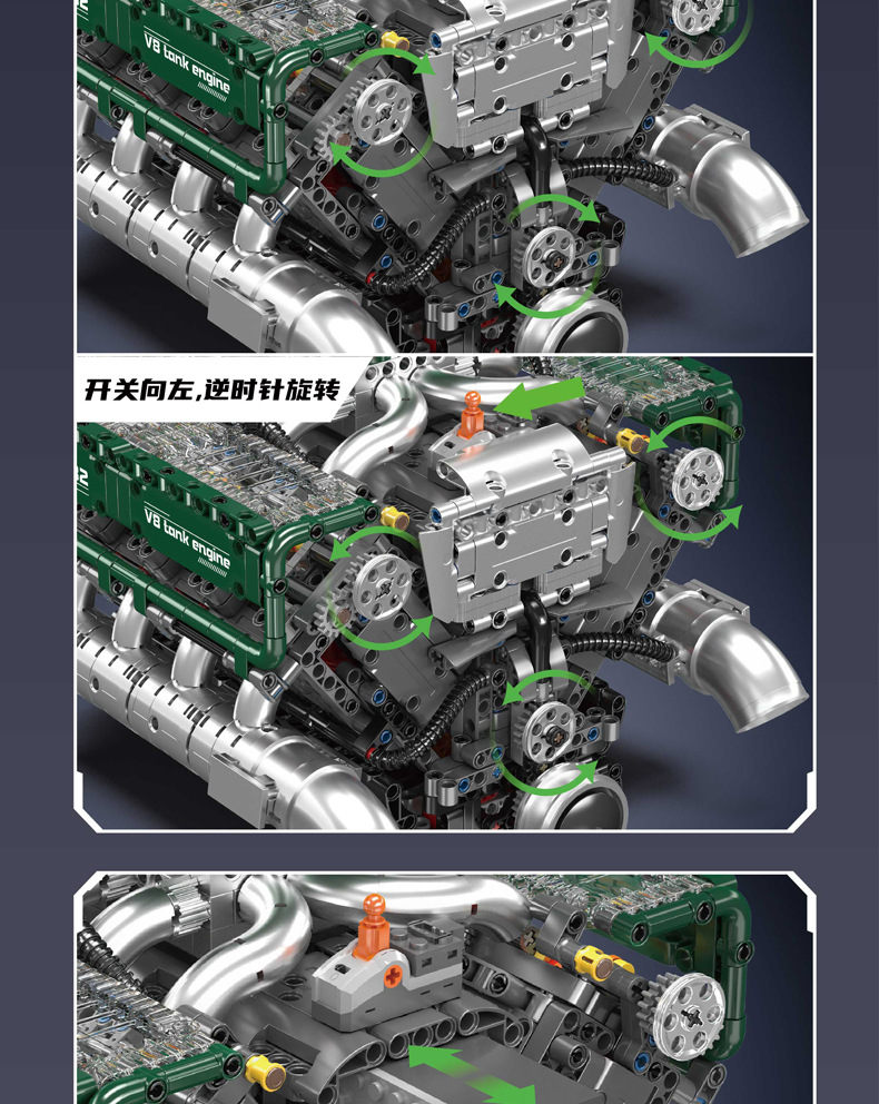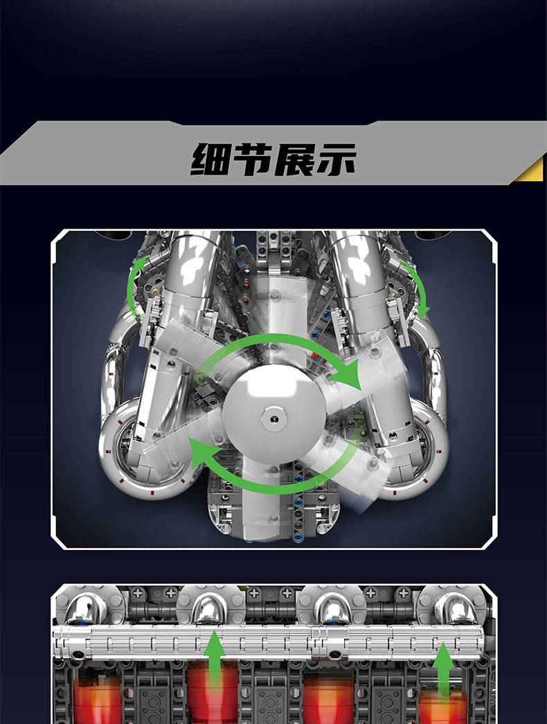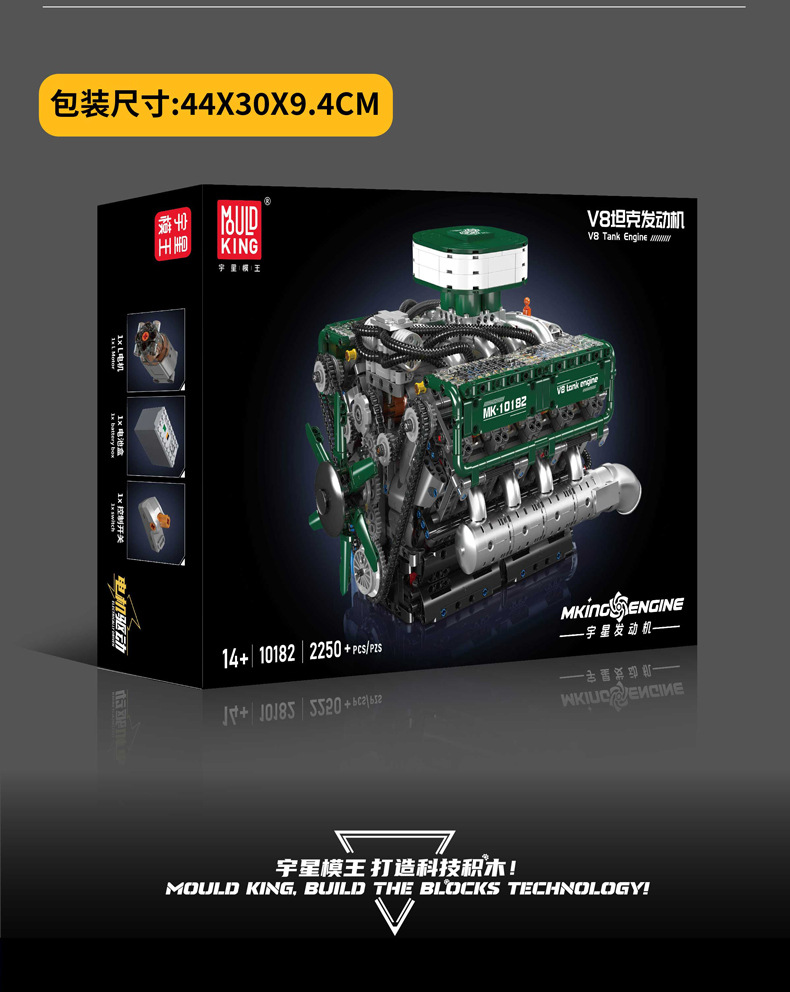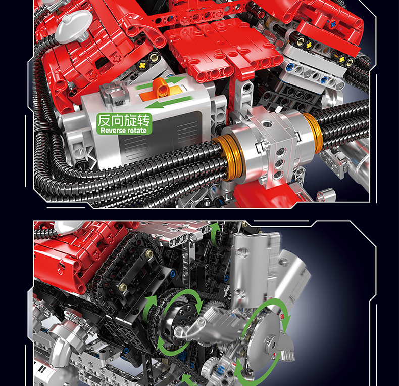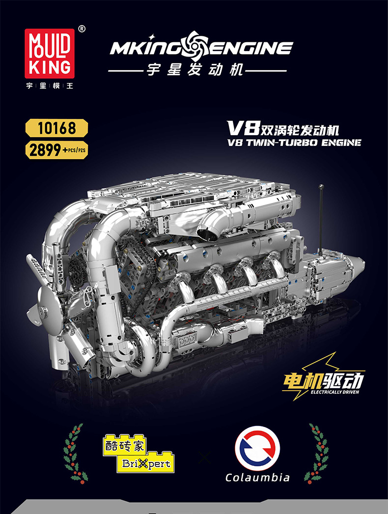 | Color | 10168 motor V8 de doble turbina, 10169 motor Limbaugh V12, 10181 motor de contraposición horizontal, 10182 motor de tanque V8 |