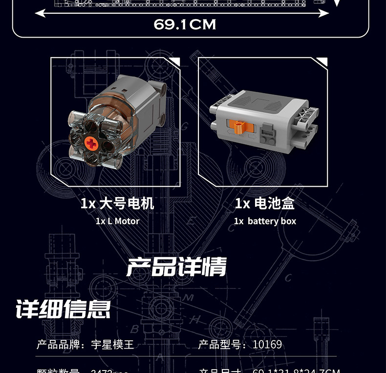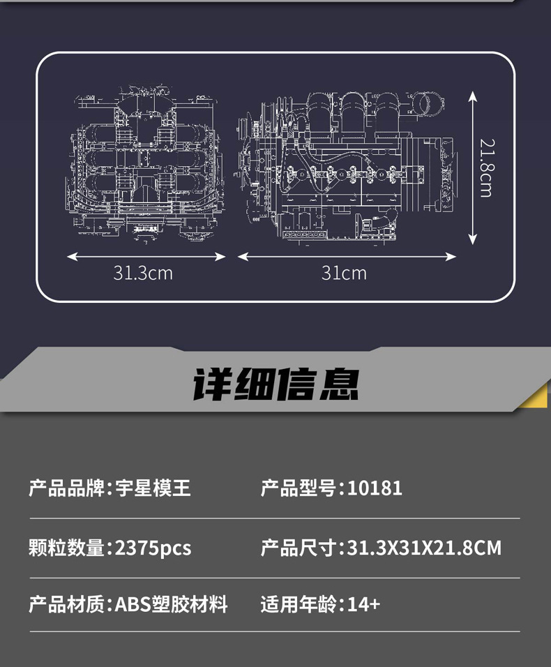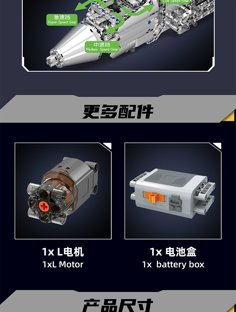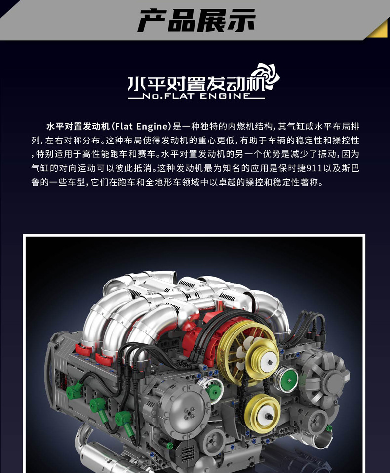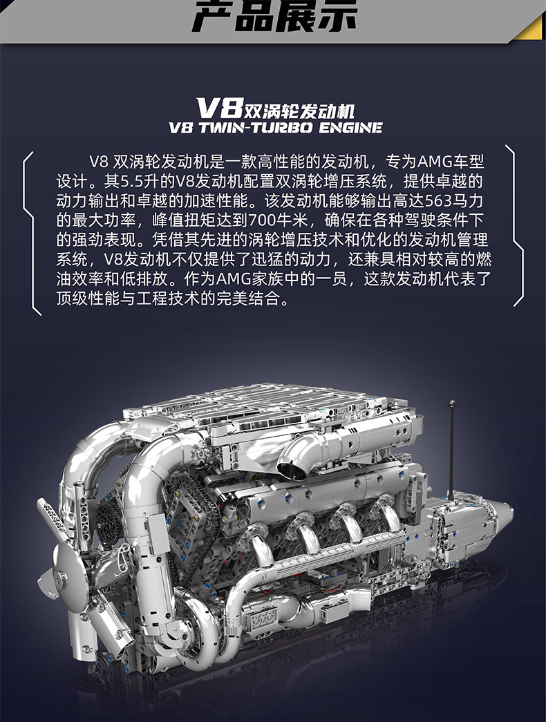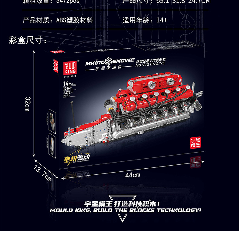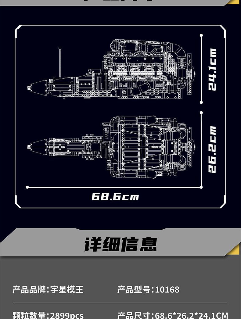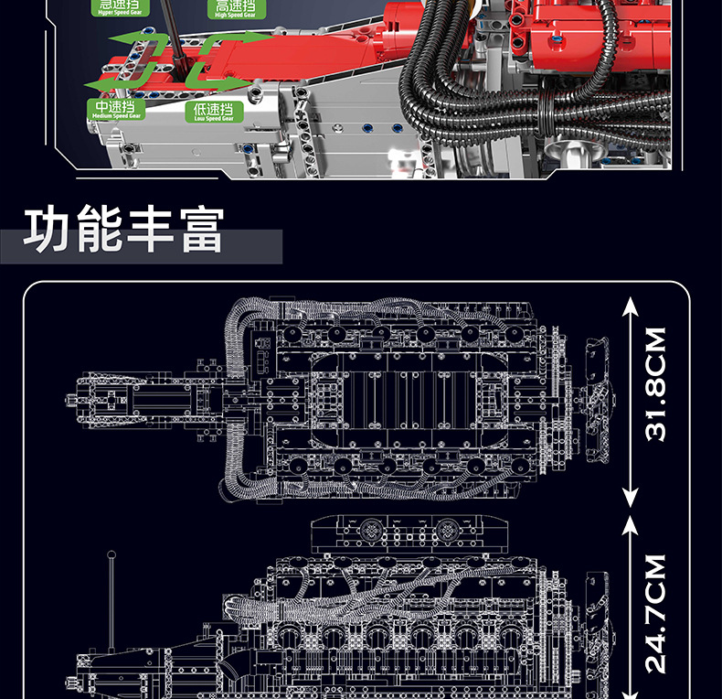 | Color | 10168 motor V8 de doble turbina, 10169 motor Limbaugh V12, 10181 motor de contraposición horizontal, 10182 motor de tanque V8 |