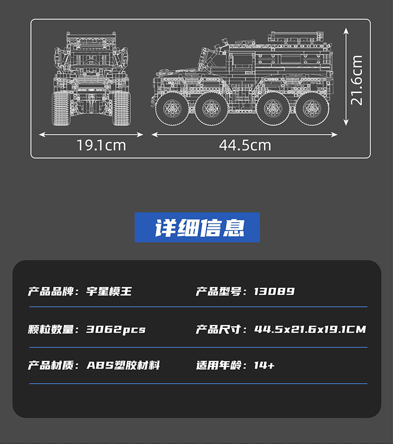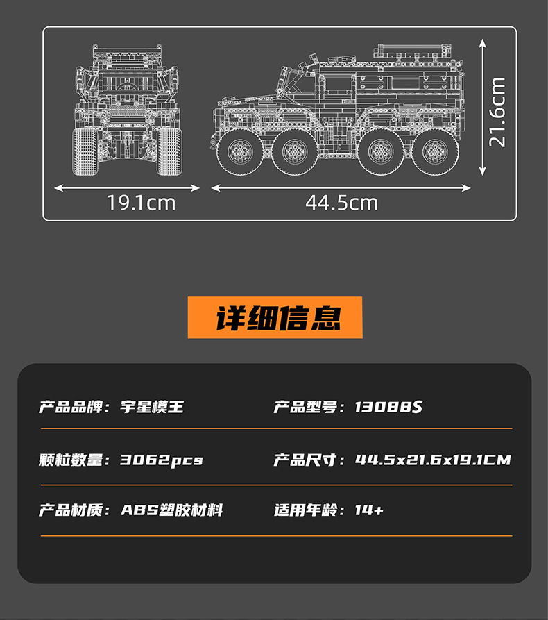 | Color | 13088S Shaman 8X8 SUV (naranja), 13089 Shaman 8X8 SUV (azul) |