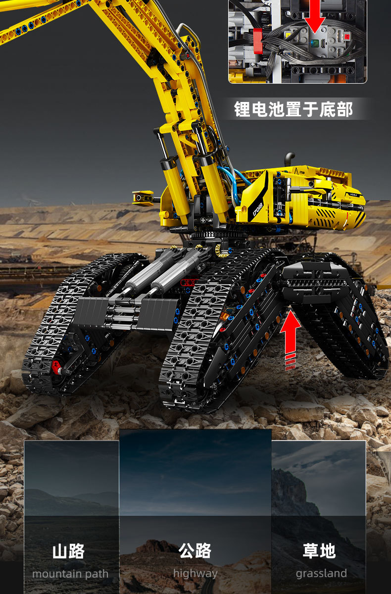 17018 excavadora todo terreno de alta dificultad de ensamblaje de bloques de construcción juguetes eléctricos de control remoto