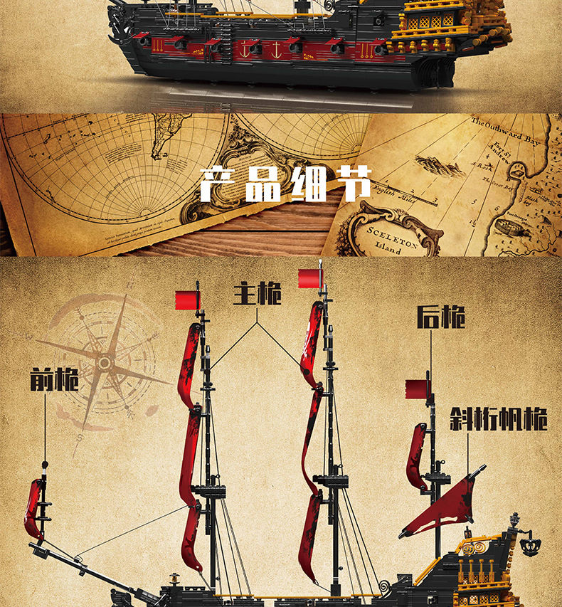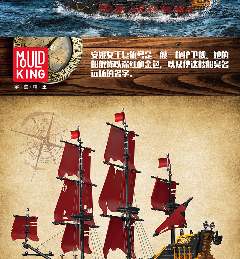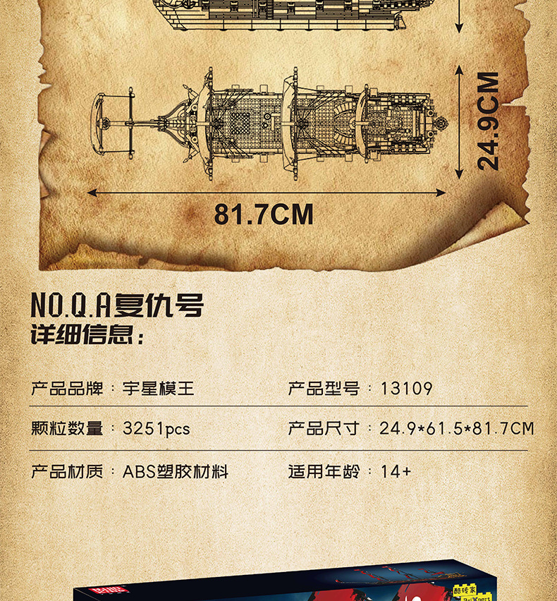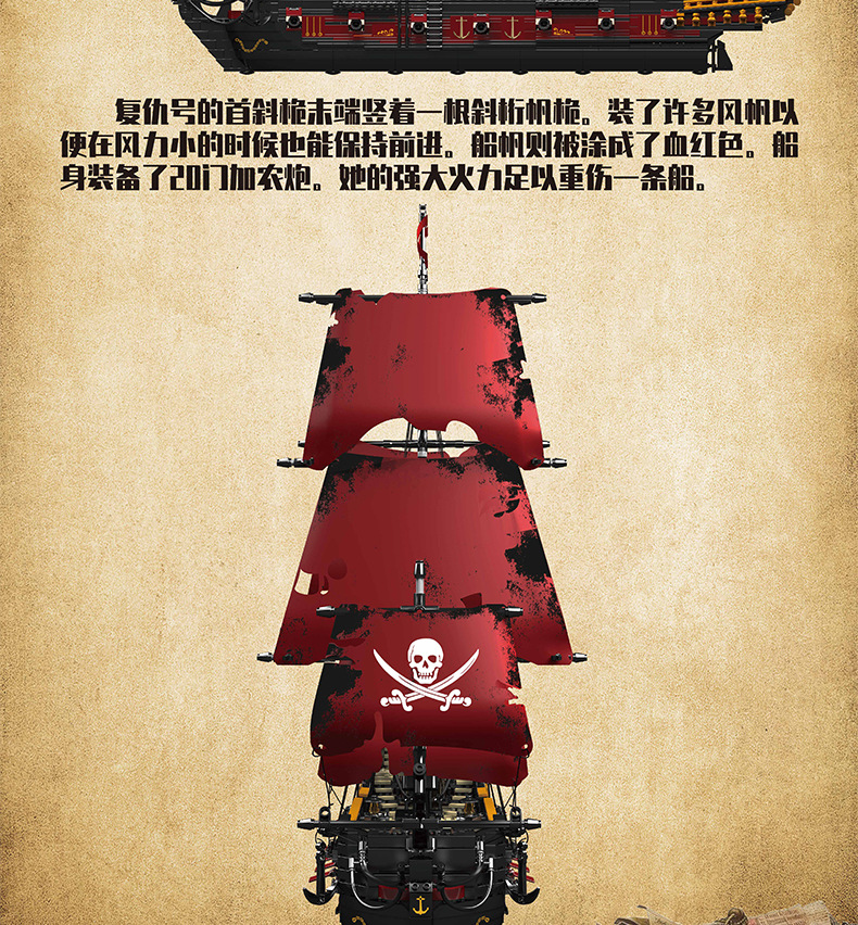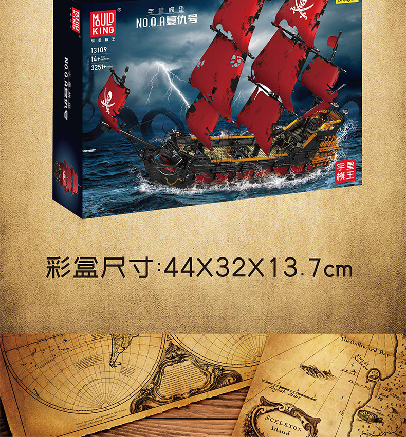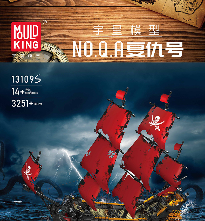 Yuxing Model King 13109S Vengeance Pirate Sailing Model Adornos de juguete de bloques de construcción grandes y difíciles