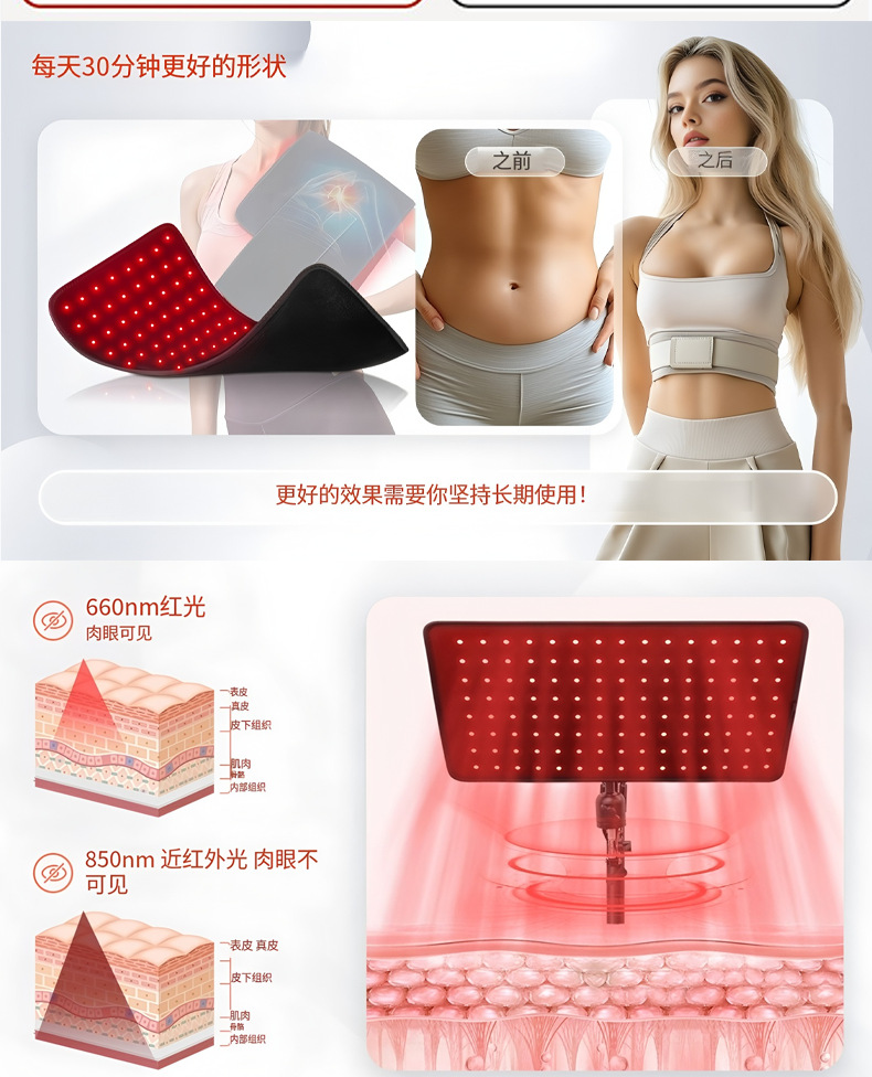 Lámpara de fisioterapia de luz roja transfronteriza, desmontable 2 en 1, cinturón de fisioterapia de luz roja retráctil, luz de soporte de pulso de sincronización