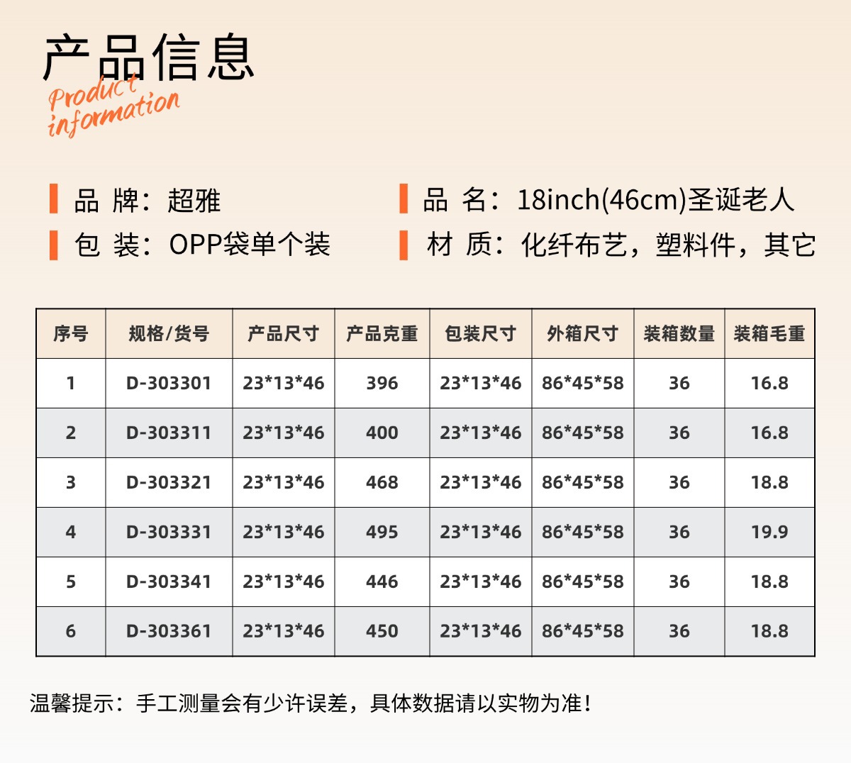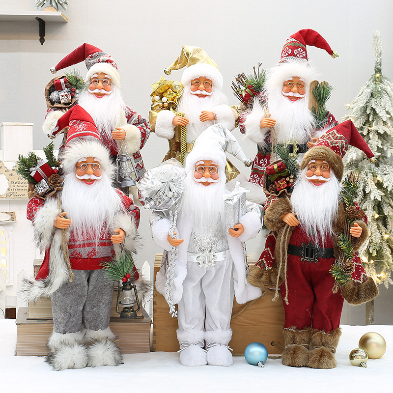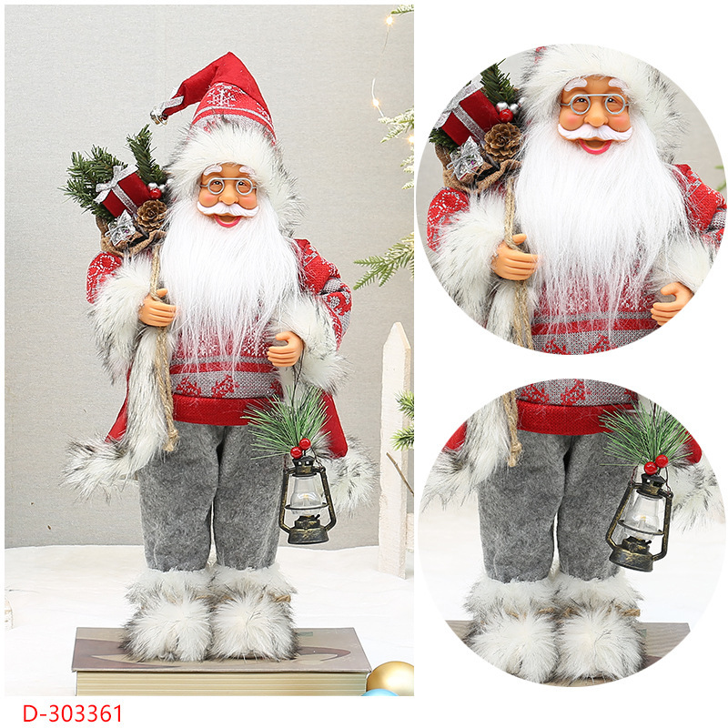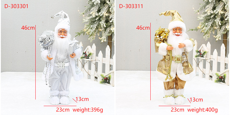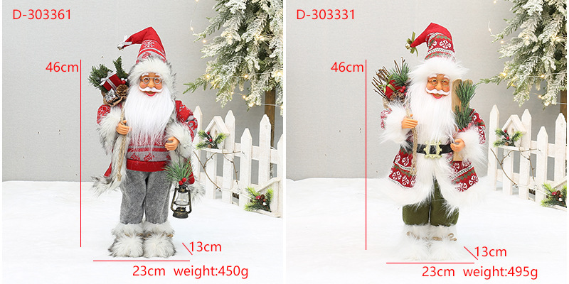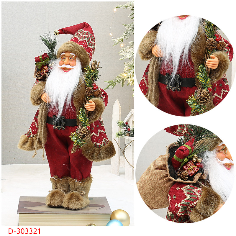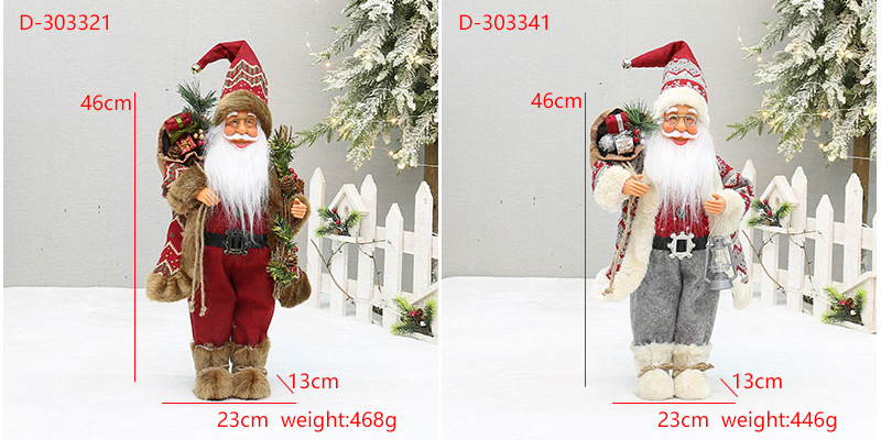 | Atributos | 18 pulgadas Yiwu Navidad artesanías transfronterizas nuevos pies con botas de nieve mochila de pie muñecas de Santa Claus |