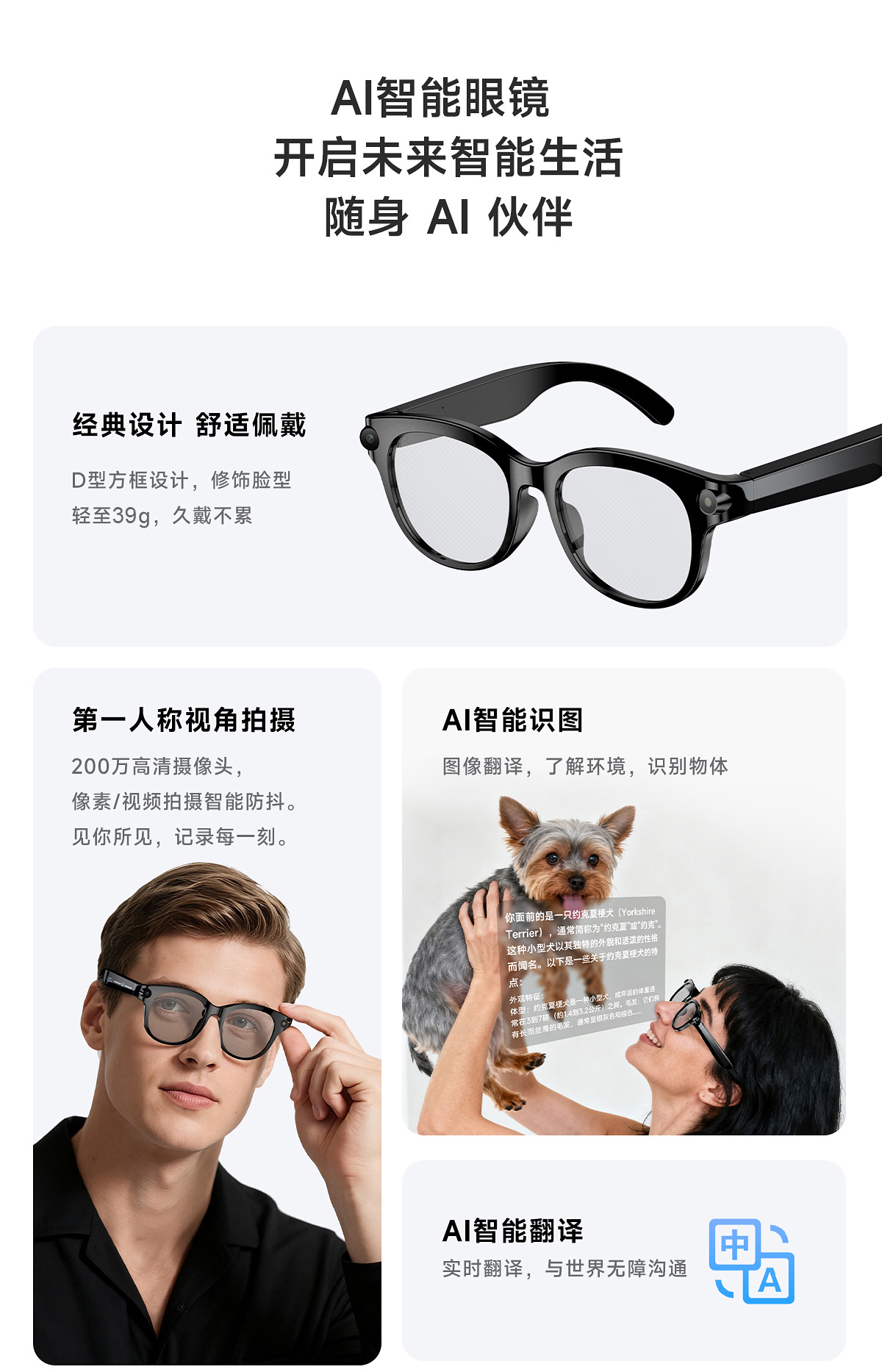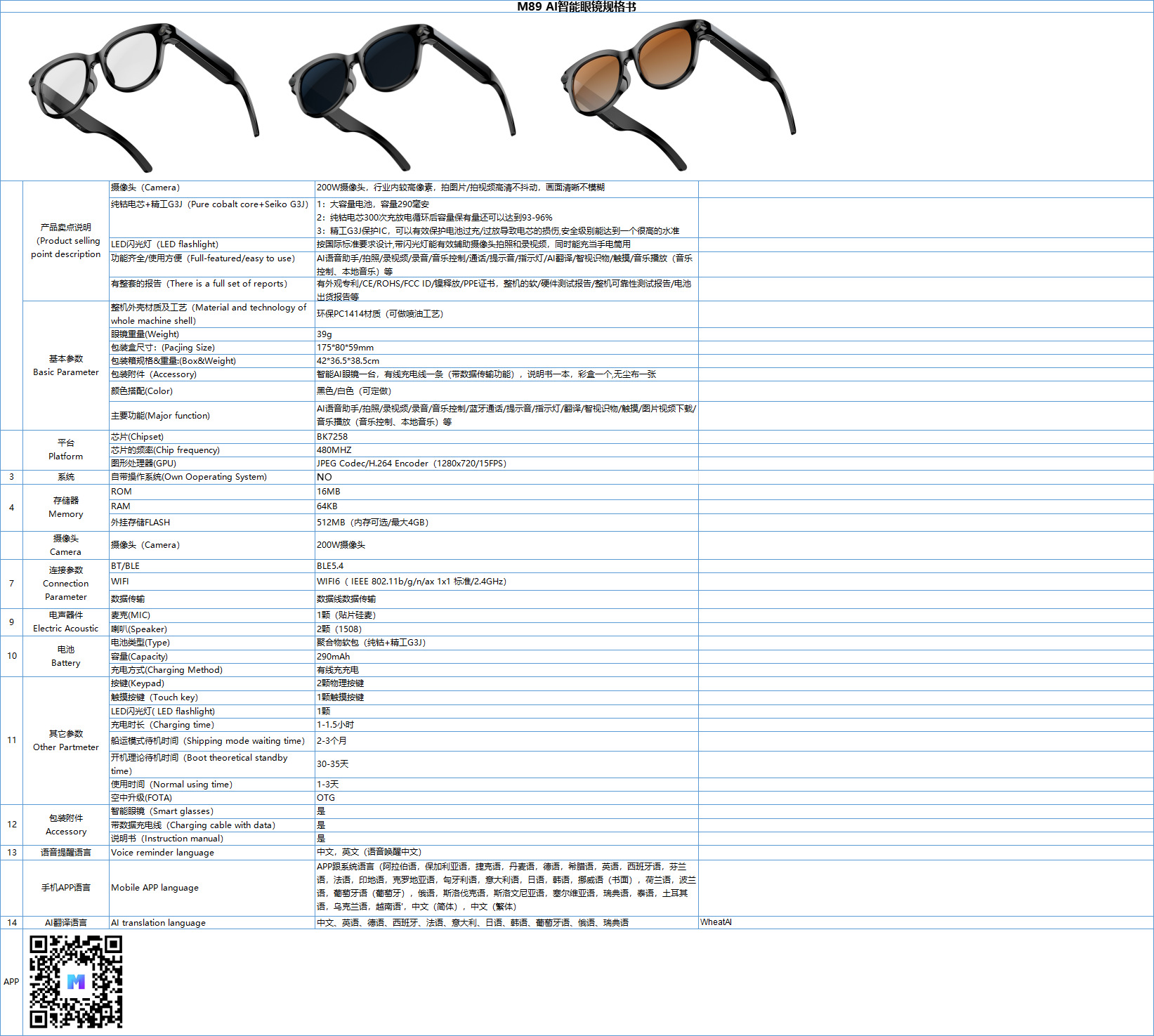 M89 (WheatAI) llamadas Bluetooth 200W píxeles fotos de vídeo anti-vibración AI traducción de música gafas inteligentes