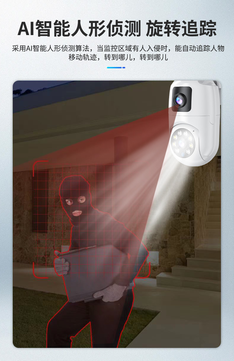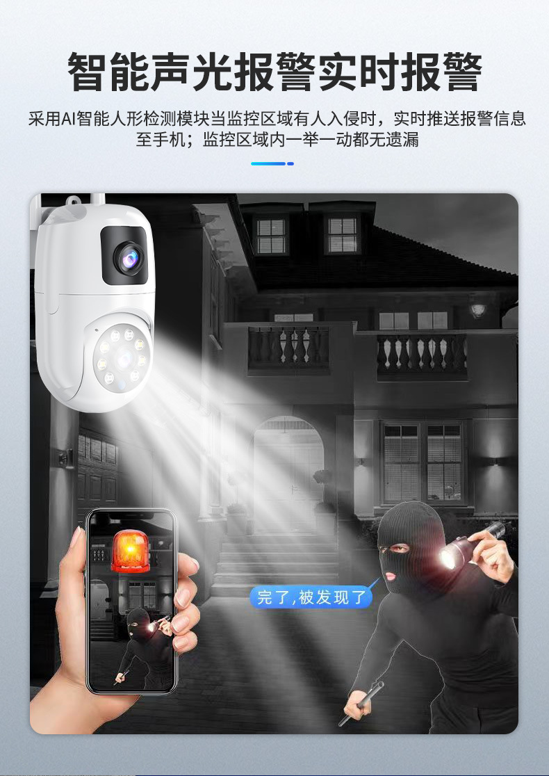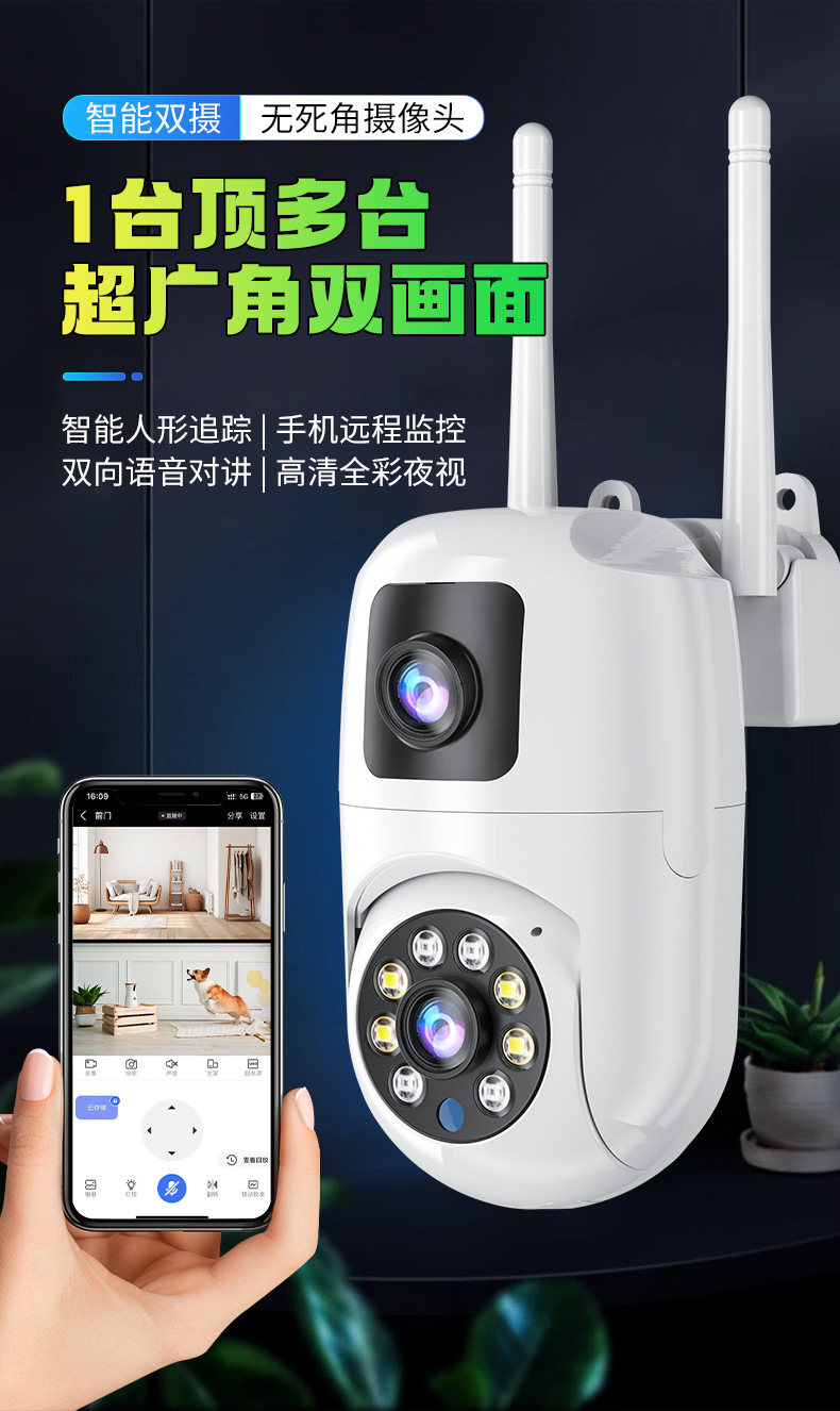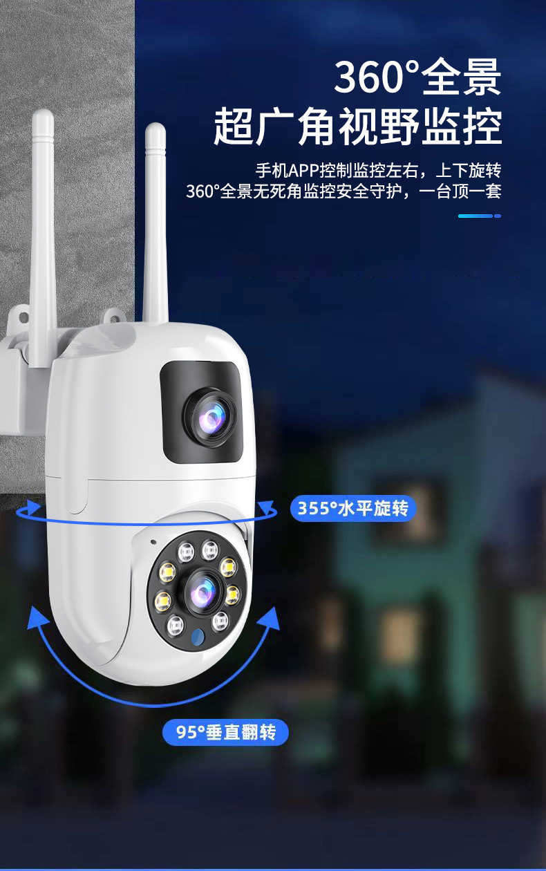 Máquina de bola de cámara fija de alta definición de 360 ° panorámica de monitoreo inteligente de doble lente al aire libre
