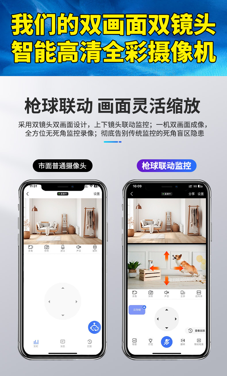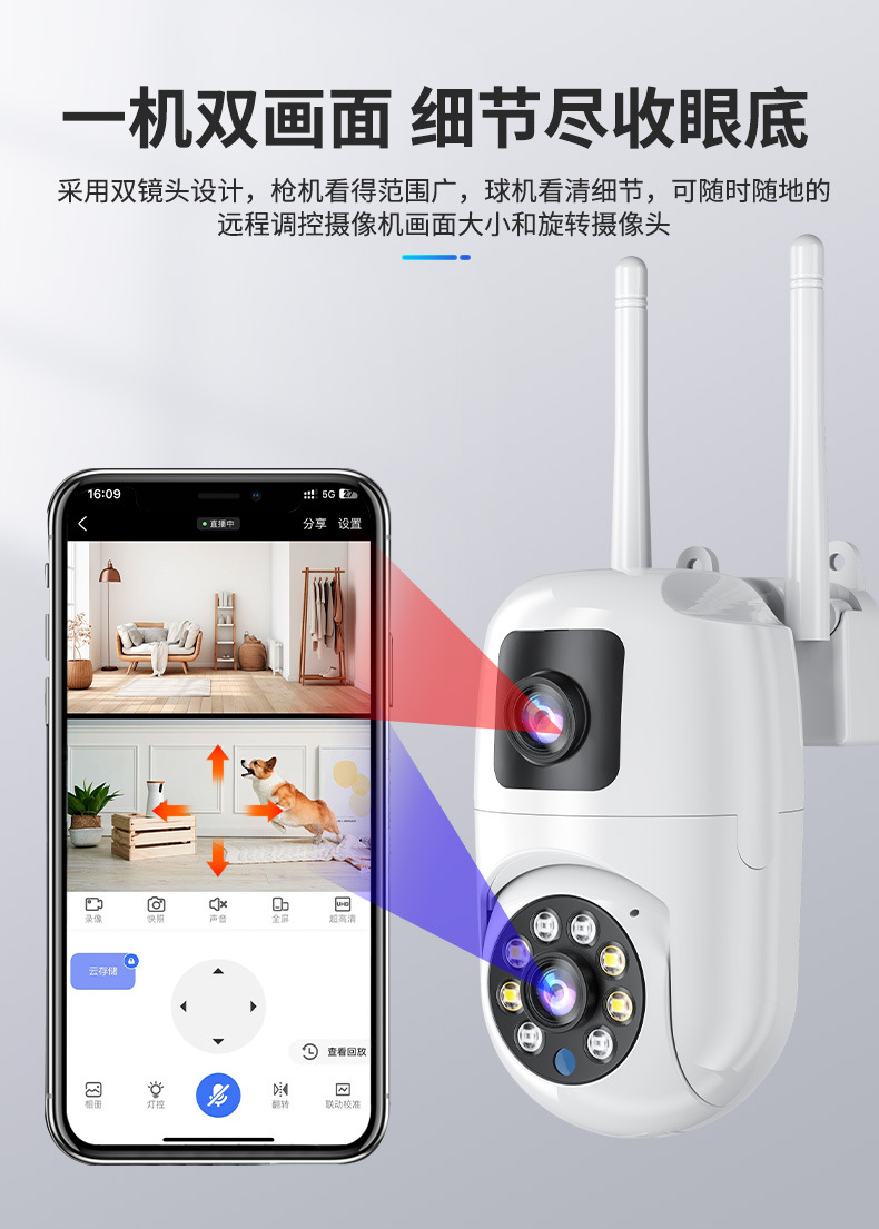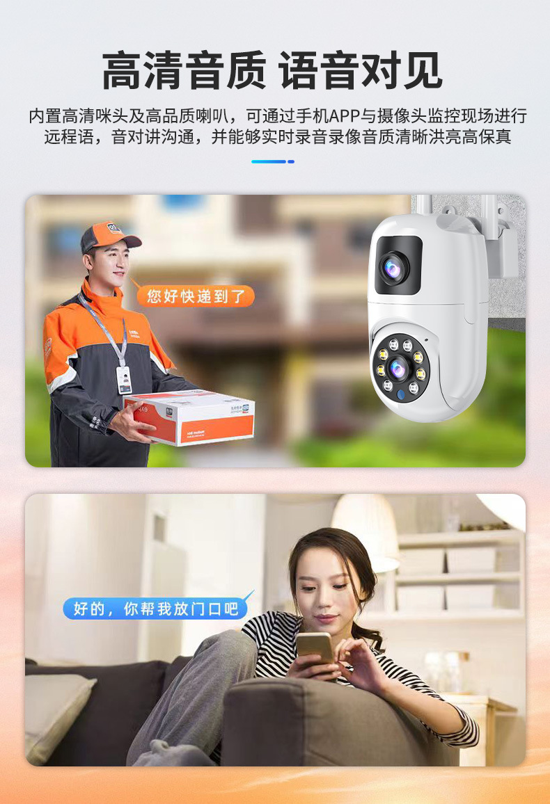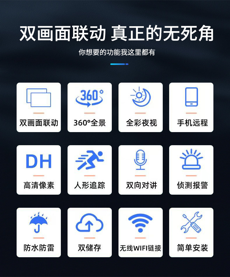 Máquina de bola de cámara fija de alta definición de 360 ° panorámica de monitoreo inteligente de doble lente al aire libre