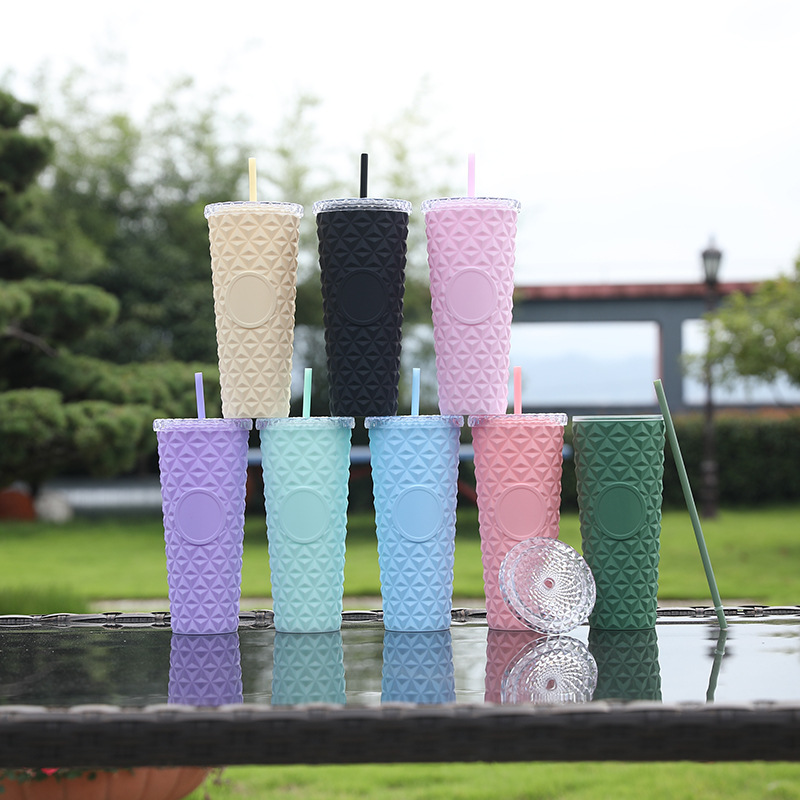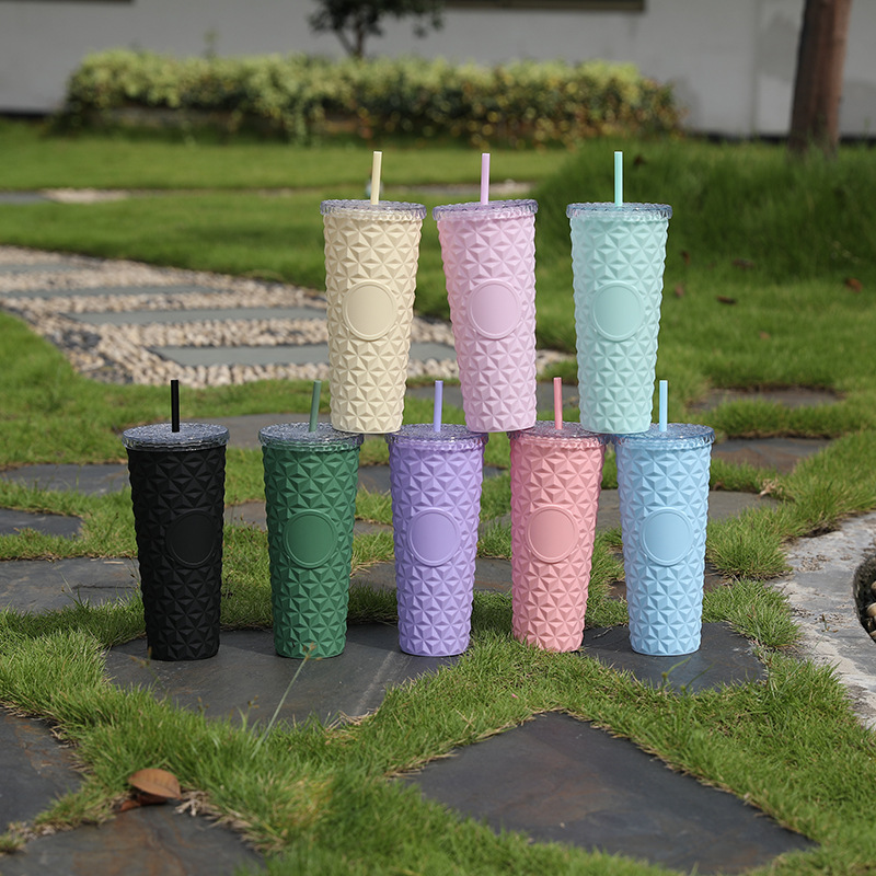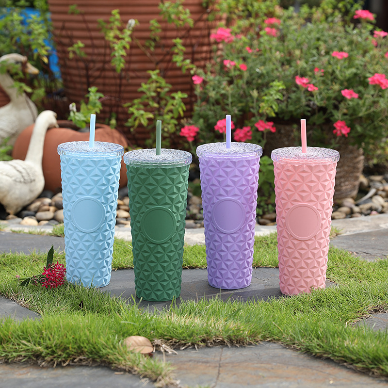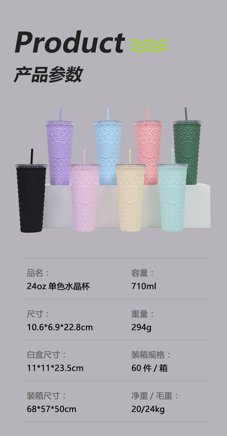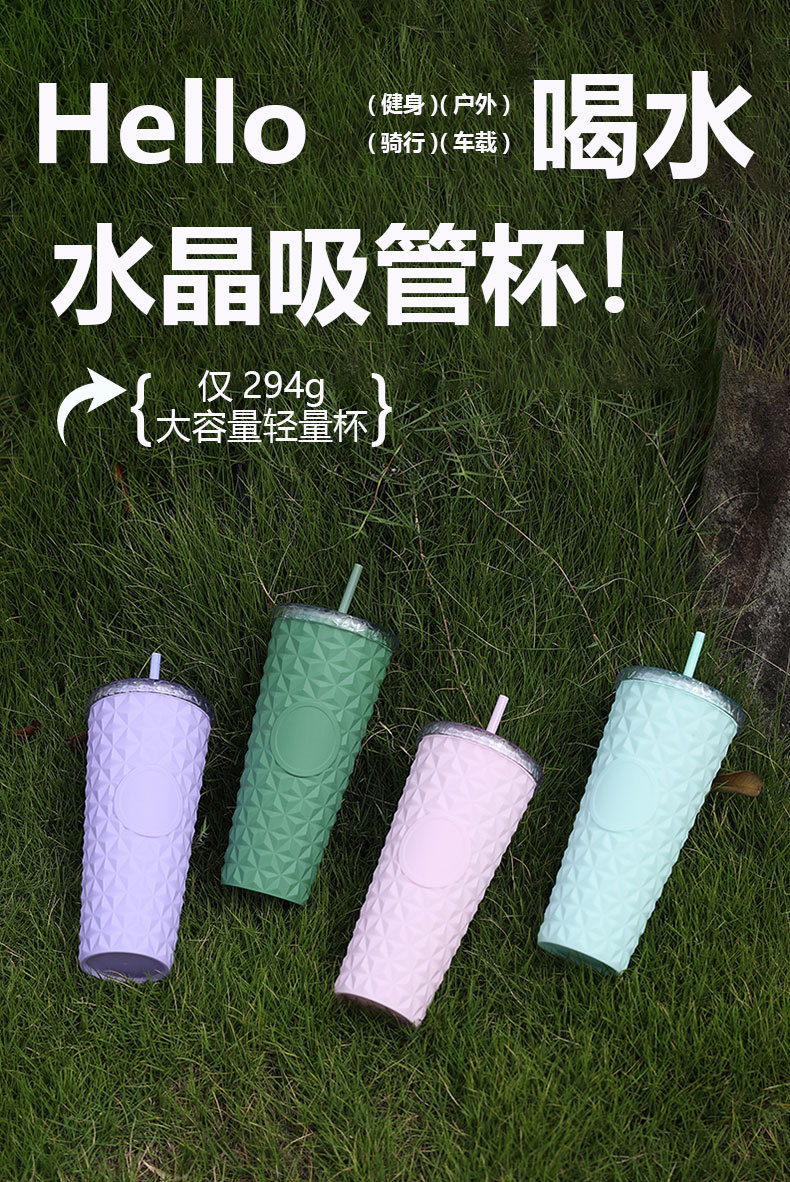 Suministro directo de fábrica AS taza de paja de doble capa taza de agua de plástico de grado alimenticio taza de cristal simple de alto valor de verano de 710ml