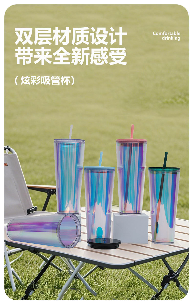 Taza de plástico transparente de gran capacidad con paja de alto valor facial para bebidas domésticas femeninas taza de jugo de fruta taza de agua creativa