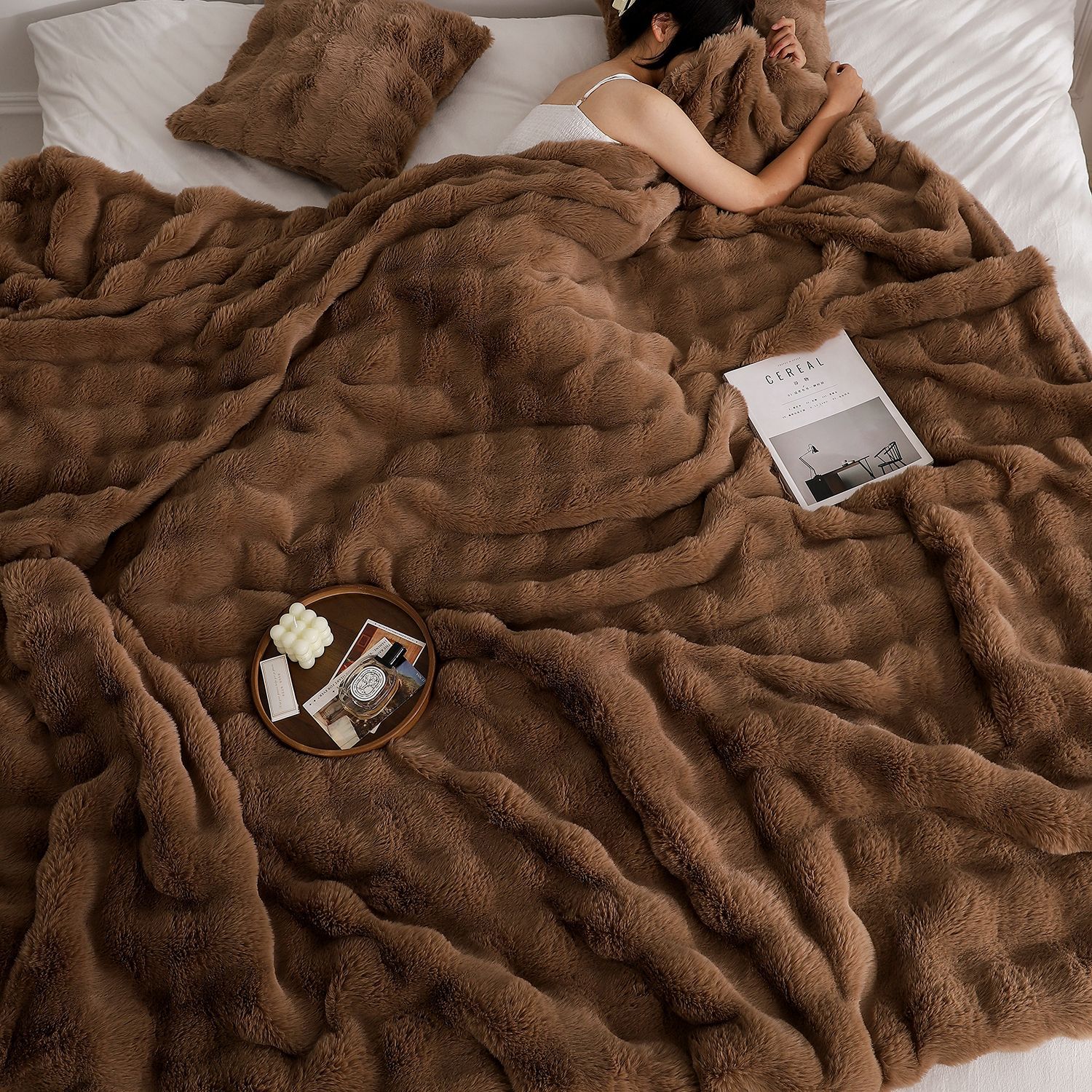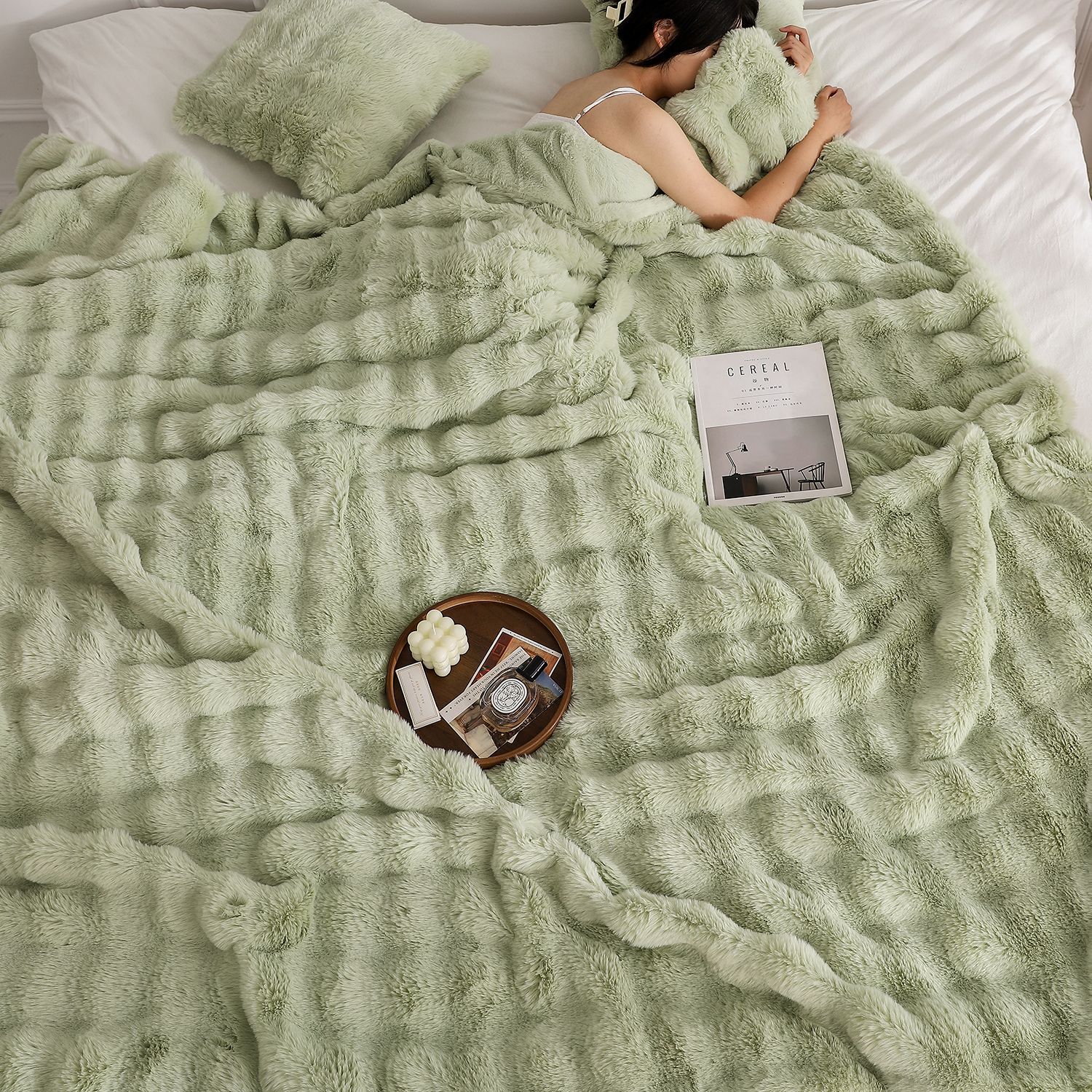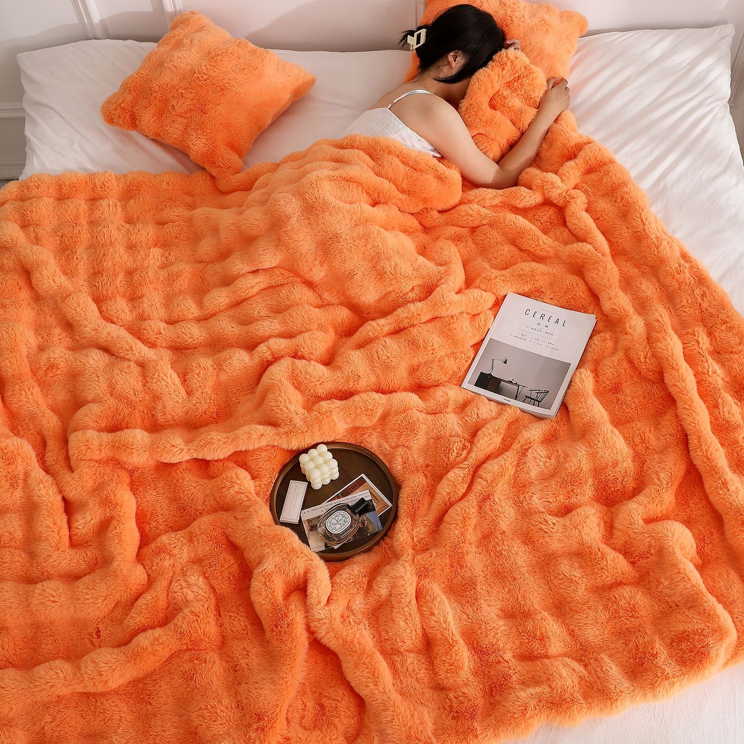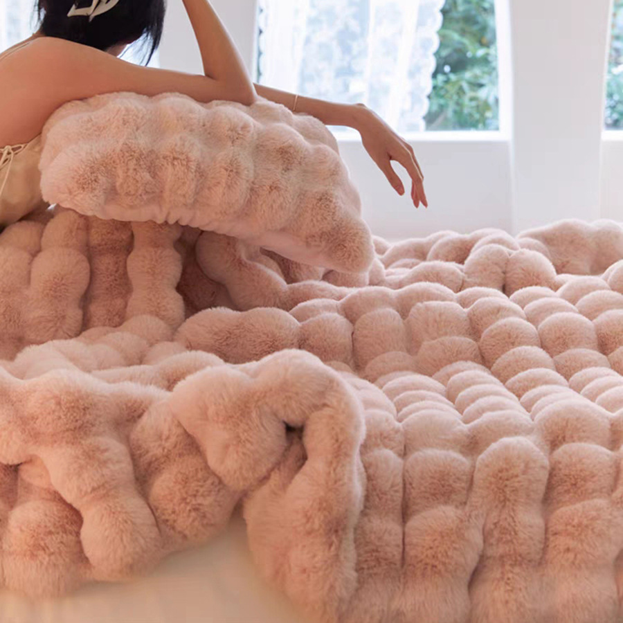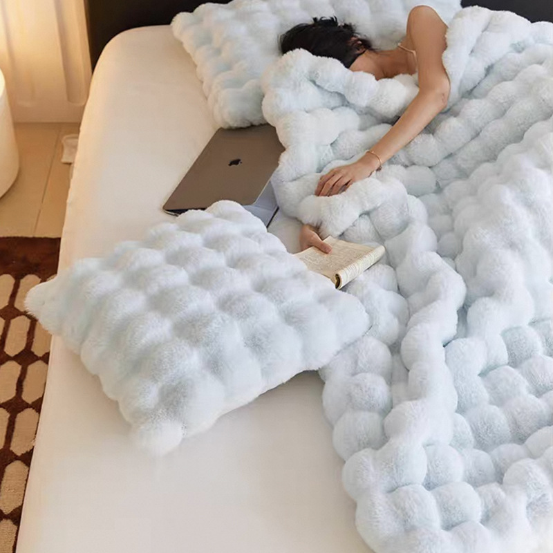 Tombas de burbuja de peluche de conejo, mantas de siesta de oficina, mantas de doble espesor, mantas de burbuja de oficina multifuncionales