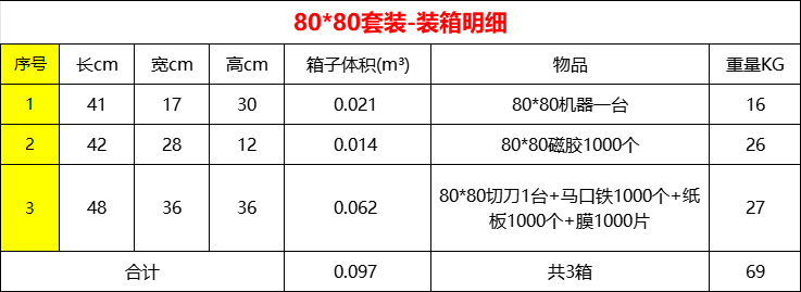 | Color | 80 * 80 máquina de pegatinas de refrigerador (16kg), 80 * 80 cortador (12kg), 80 * 80 placa de pegatinas de refrigerador tipo consumo de pegatinas magnéticas 500 juegos (4,2kg), 80 * 80 placa de pegatinas de refrigerador tipo consumo de pegatinas magnéticas 1000 juegos (42kg), 80 * 80 conjunto de pegatinas de refrigerador: máquina + cortador 1 conjunto + 1000 juegos de cartón tipo consumo de pegatinas magnéticas (69kg), 80 * 80 pegatinas de refrigerador tipo acrílico tipo consumo de pegatinas magnéticas 1000 juegos, 80 * 80 conjunto de pegatinas de refrigerador: Máquina + 1 cuchillo de corte + 1000 juegos de acrílico consumo magnético, 80 * 80 refrigerador acrílico + 1000 juegos de consumo de pines |