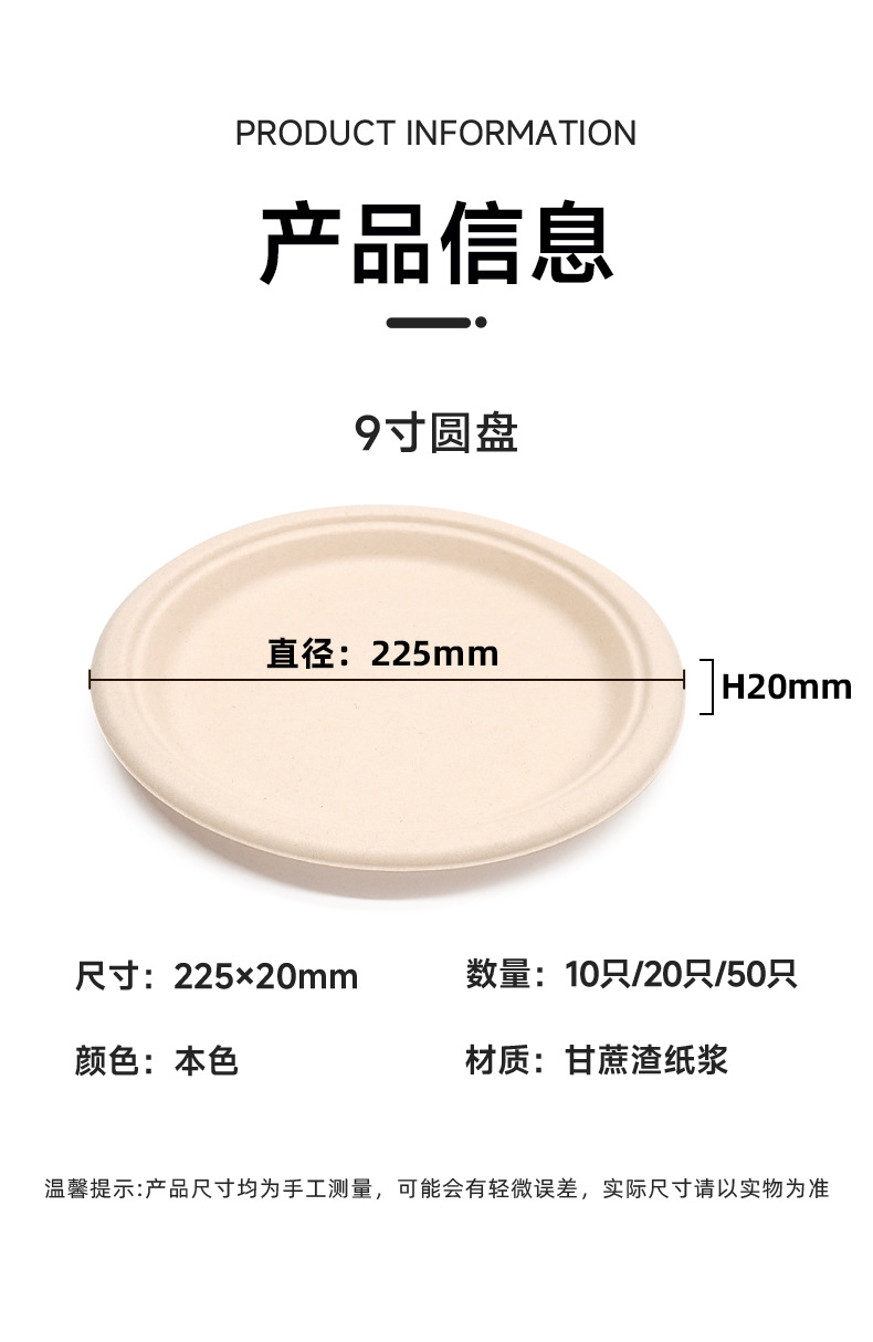 | Color | Discos de 9 pulgadas en color natural (10 paquetes), Discos de 9 pulgadas en color natural (20 paquetes), Discos de 9 pulgadas en color natural (50 paquetes) |