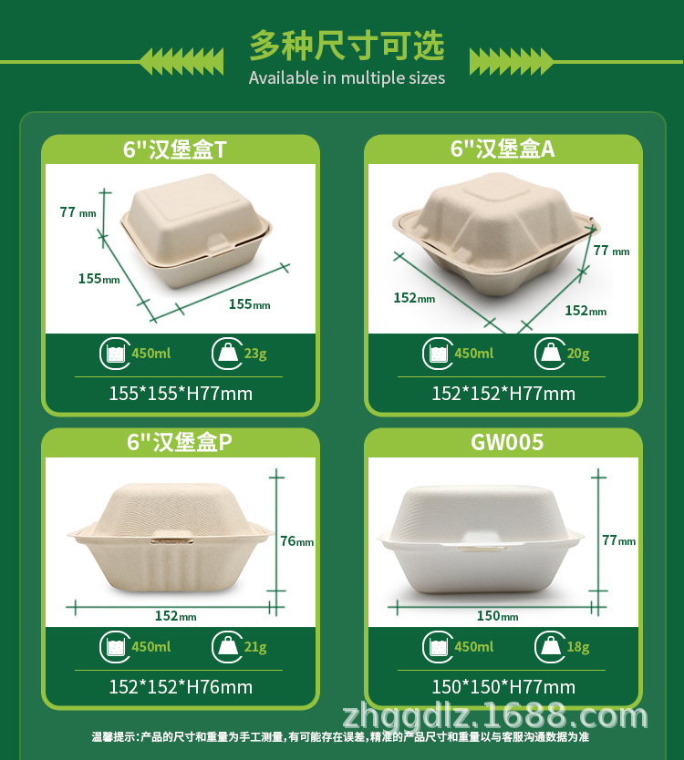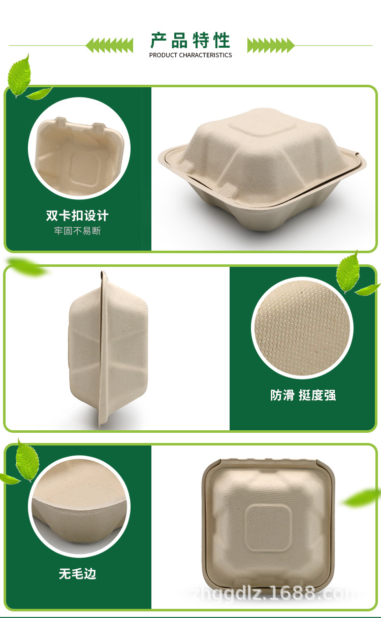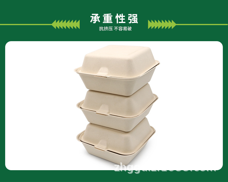 Shaogeng oasis fábrica Ventas Directas Pulpa de caña de azúcar Pulpa de bambú vajilla desechable caja de hamburguesa de 6 pulgadas degradable compostable