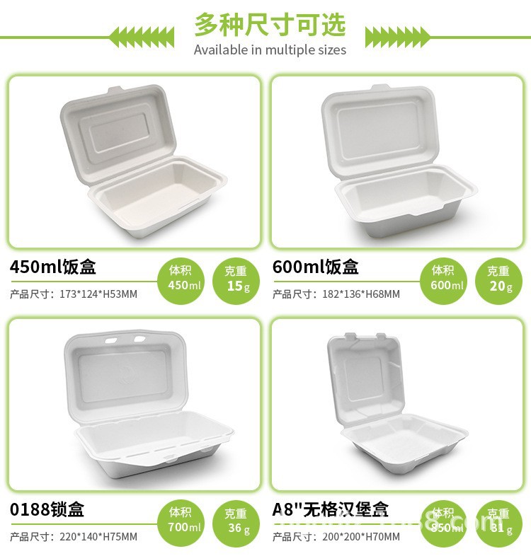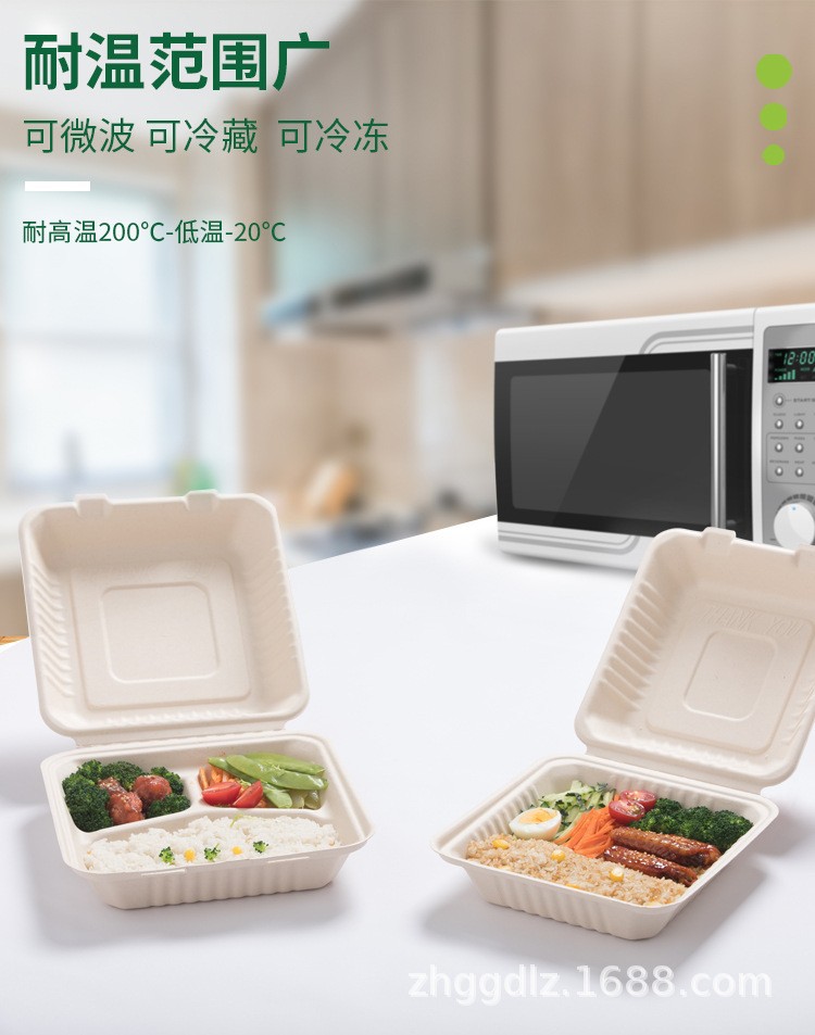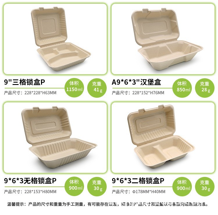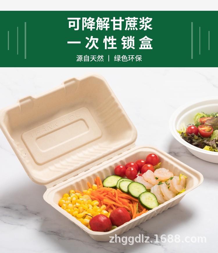Pulpa de bambú de caña de azúcar de gran capacidad desechable engrosada ecológica caja de cerradura de cubiertos degradable compostable cuenco de cocina de cocina al aire libre