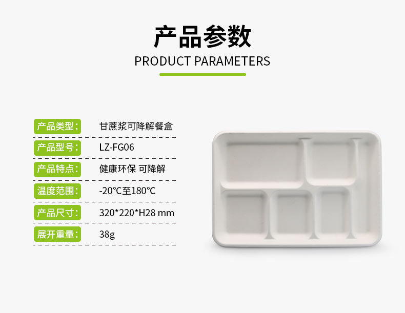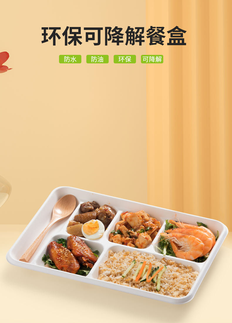 Shaogeng Oasis degradable compostable Hospital escolar desechable bandeja de 6 compartimentos 250 piezas por caja