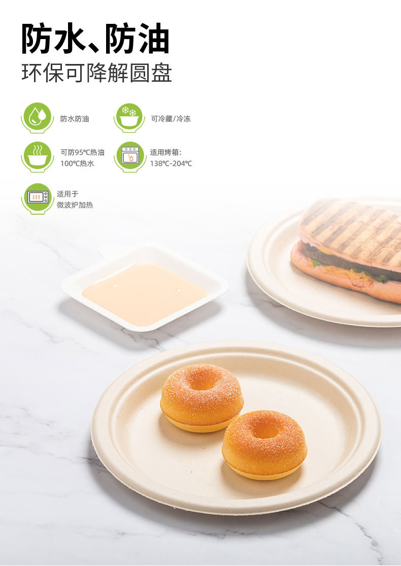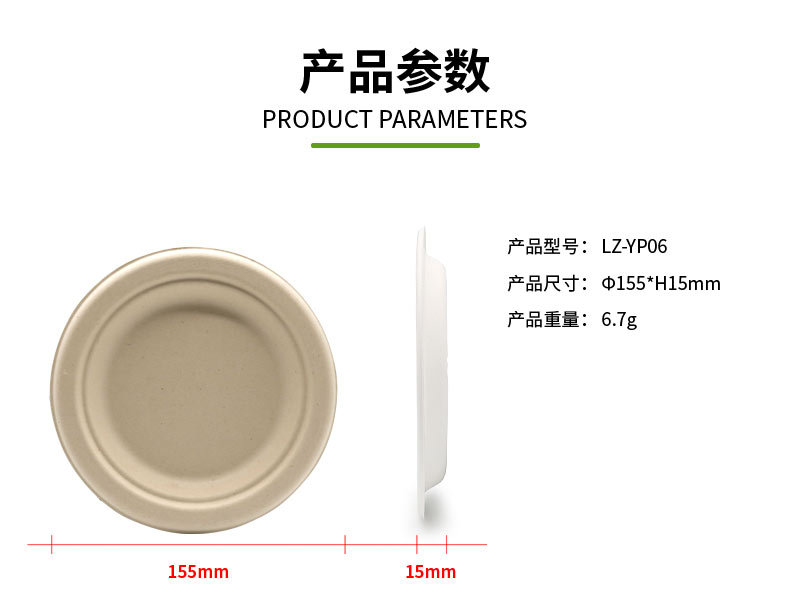 Shaogeng oasis 6-pulgadas degradable compostable desechable bagazo partido boda disco pastel placa 1000
