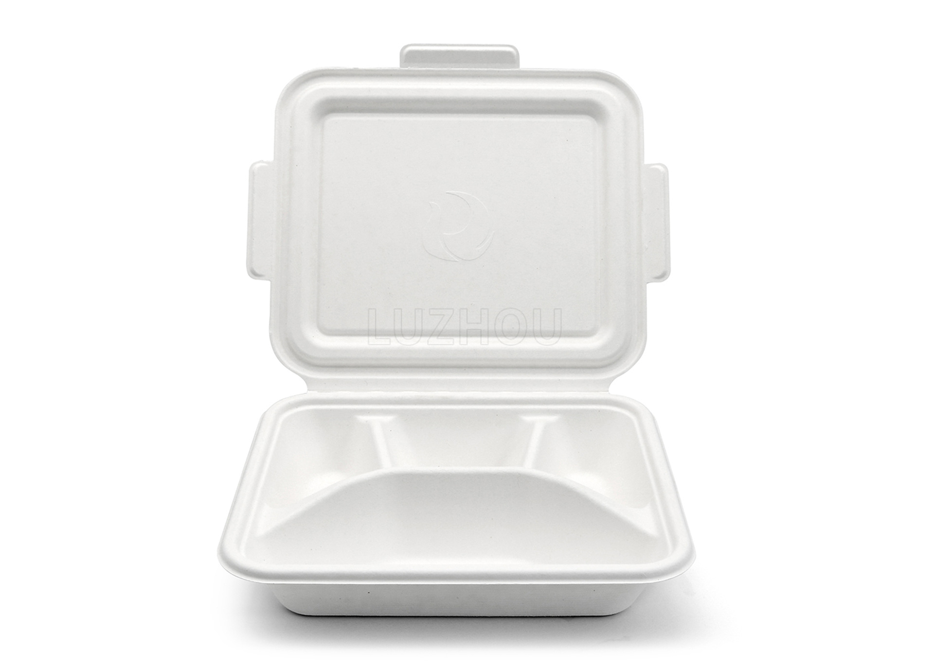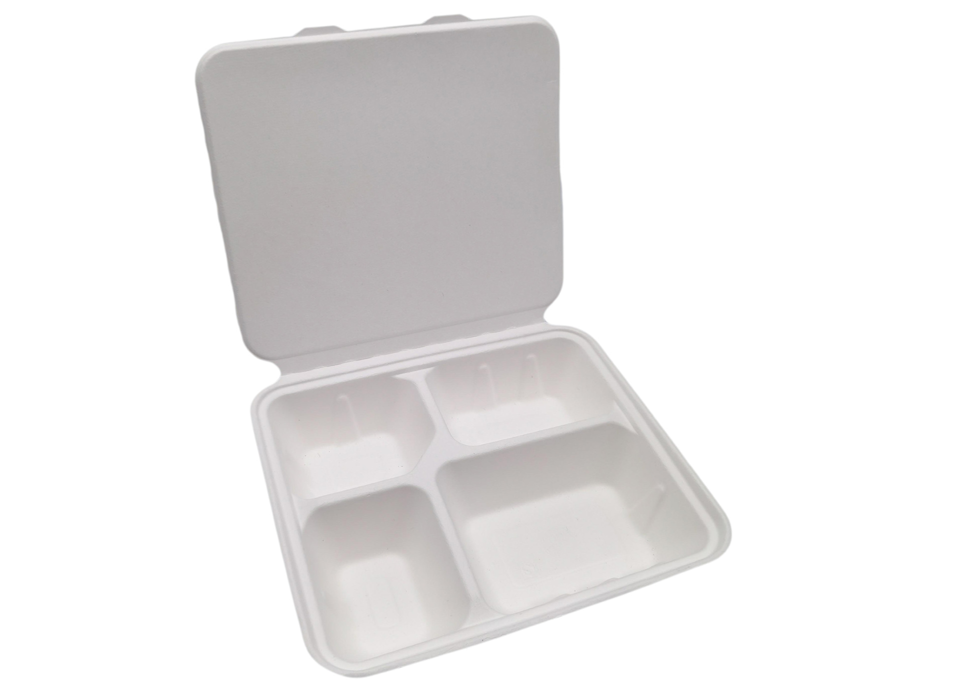 Fábrica verde al por mayor Pulpa de caña de azúcar Pulpa de bambú desechable protección ambiental vajilla de una sola pieza serie de cuatro rejillas