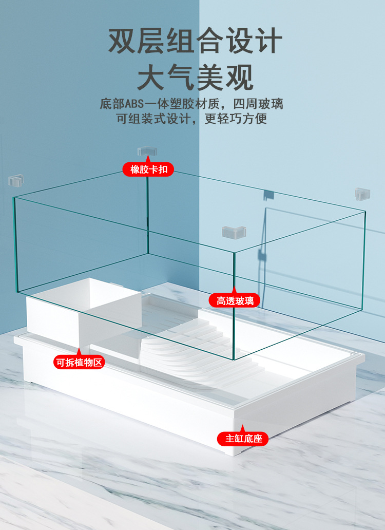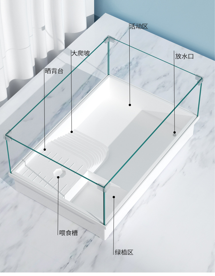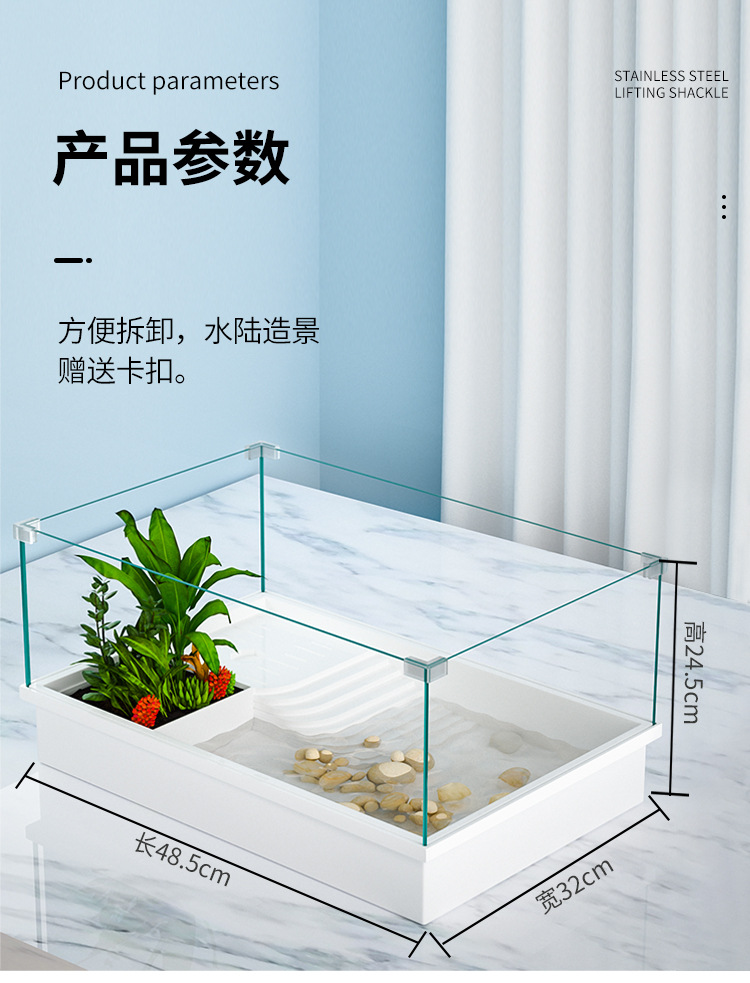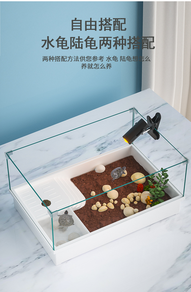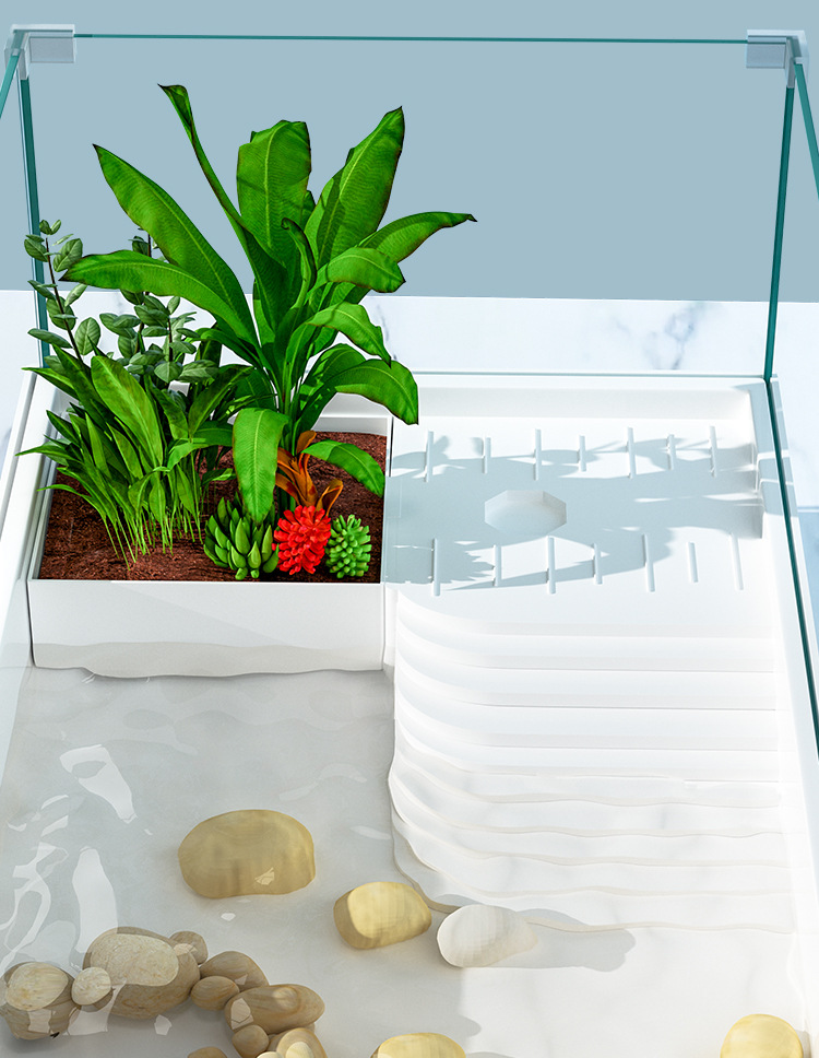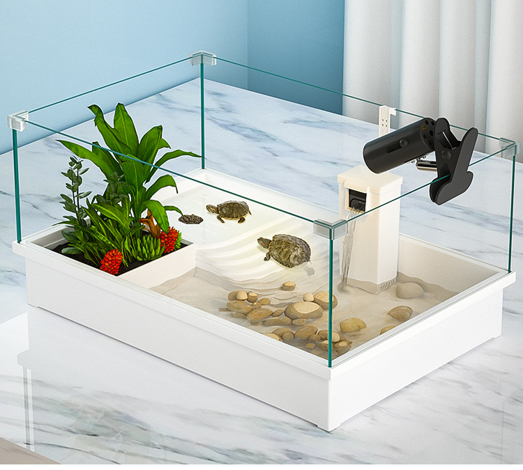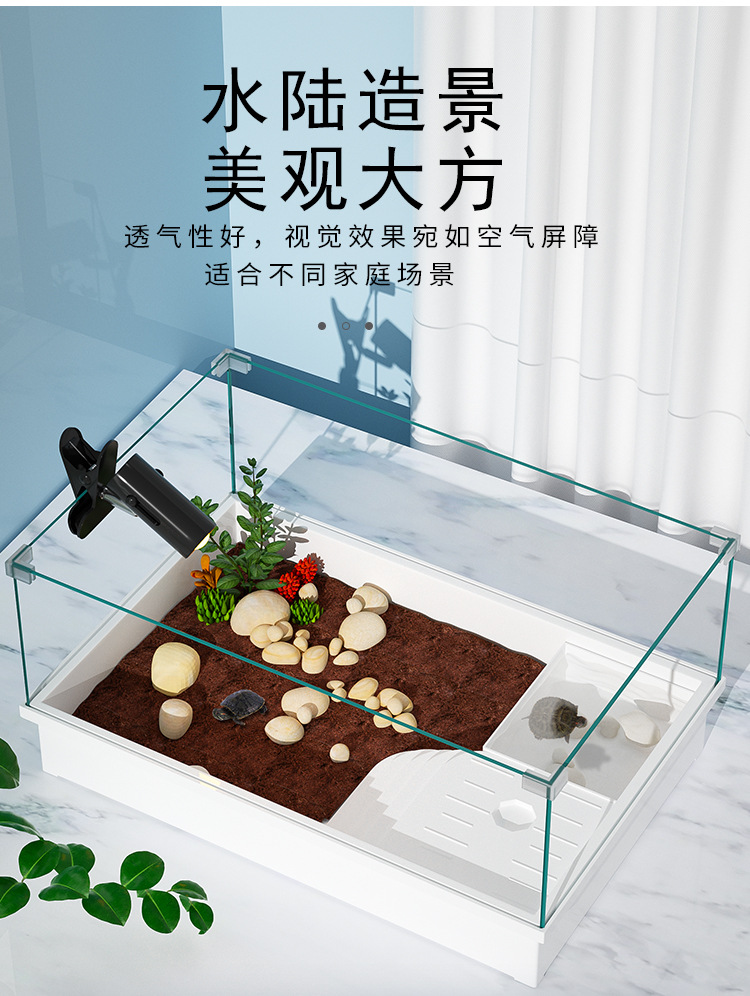 Tanque de cría de tortugas extragrande para uso doméstico con plataforma para tomar el sol, plataforma para trepar, paisajismo ecológico, plástico con tapa para evitar escapes.