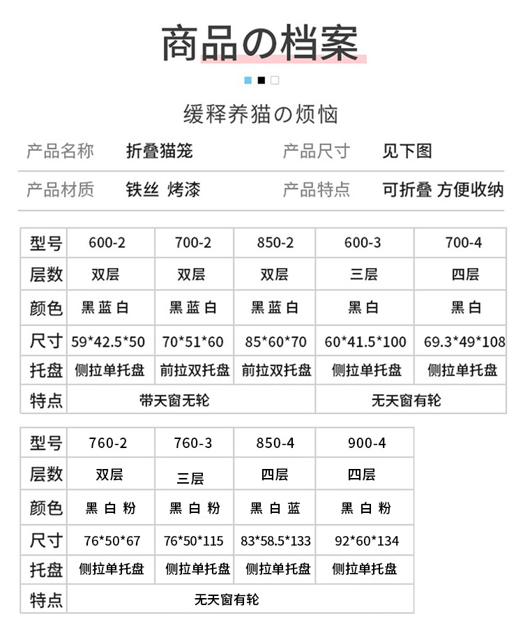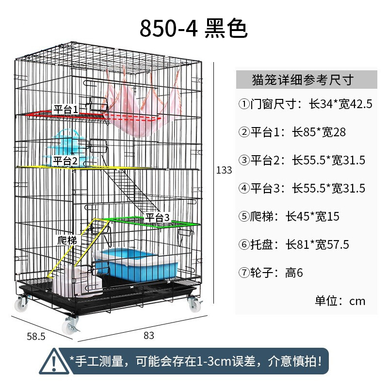 | Especificaciones | 600-2 jaula de gato de doble capa azul (59*42,5*50cm),600-2 blanco de doble capa jaula de gato (59*42,5*50CM),600-2 negro de doble capa de jaula de gato (59*42,5*50CM),700-2 jaula de gato de doble capa azul (70*51*60cm),700-2 jaula de gato de doble capa blanca (70*51*60CM),700-2 jaula de gato de doble capa negra (70*51*60CMCM),850-2 jaula de Gato Azul de doble capa (85*60*70cm),850-2 jaula de gato de doble capa blanca (85*60*70CM),850-2 jaula de gato de doble capa negra (85*60*70CM),600-3 negro pequeño tres capas (60*41,5*100cm),600-3 blanco pequeño tres capas (60*41,5*100cm),600-3 azul pequeño tres capas (60*41,5*100cm),760-2 Negro Grande doble capa (76*50*67cm),760-2 blanco grande doble capa (76*50*67cm),760-2 Rosa grande doble capa (76*50*67cm),760-3 Negro Grande tres capas (77*51*116,5 cm),760-3 blanco grande tres capas (77*51*116,5 cm),850-4 Negro Grande cuatro capas (83*58,5*133cm),850-4 blanco grande cuatro capas (83*58,5*133cm),900-4 Negro Grande cuatro capas (92*60*134cm),900-4 blanco grande cuatro capas (92*60*134cm),900-4 Rosa grande cuatro capas (92*60*134cm),760-4 Negro Grande cuatro capas,900-6 Negro Grande seis capas (193*90,3*60) |