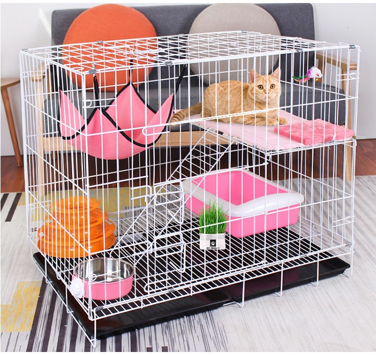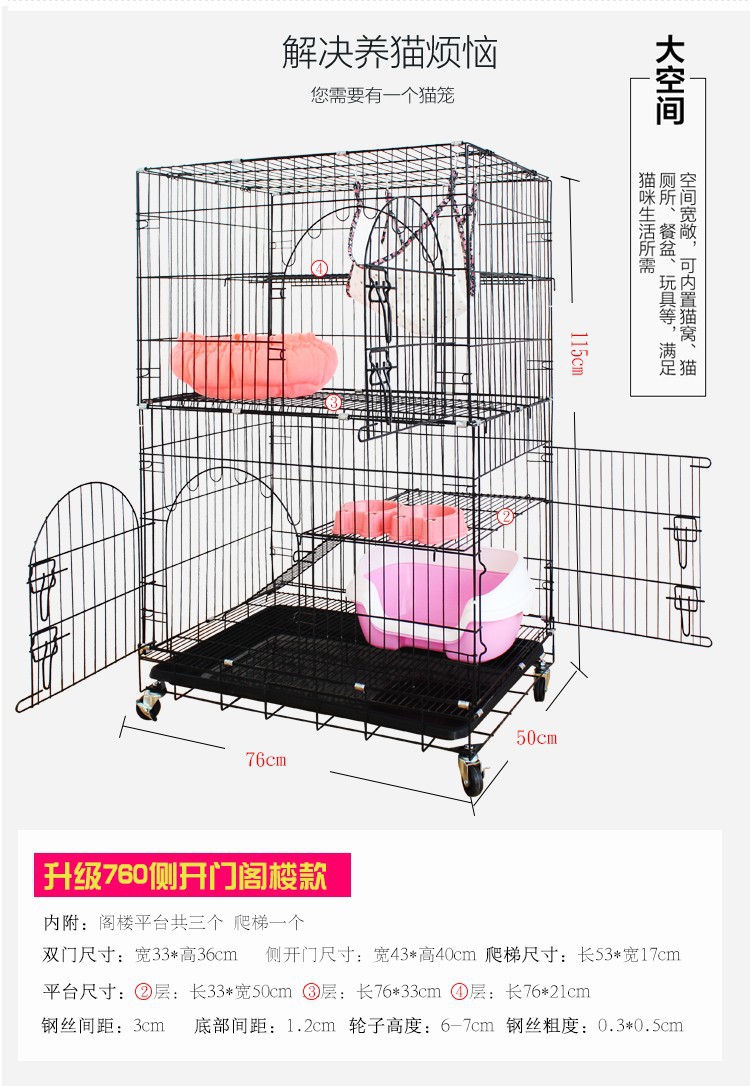 Gato jaula plegable hierro alambre gato jaula negrita cifrado gato Villa doble capa tres capas gato casa gato nido mascota jaula