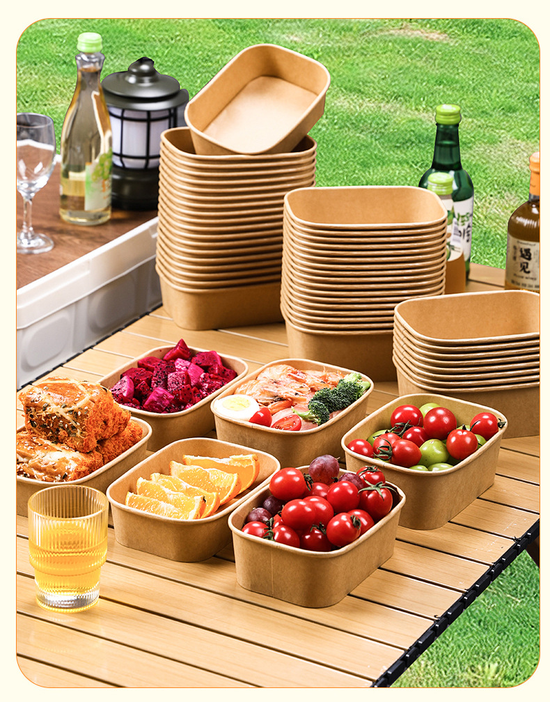 Caja de comidas desechable kraft rectangular para llevar caja de comida rápida caja de almuerzo de picnic caja de ensalada de almuerzo de almuerzo grande