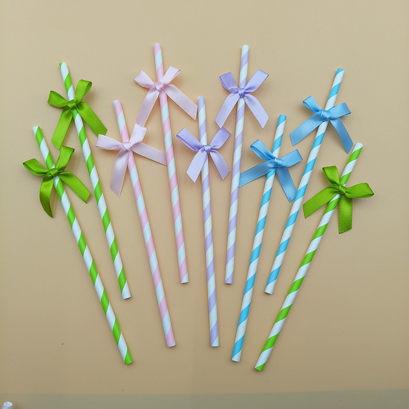 Cross-border bow party paper straw ribbon fabric panadería postre decoración inserto cóctel decoración straw