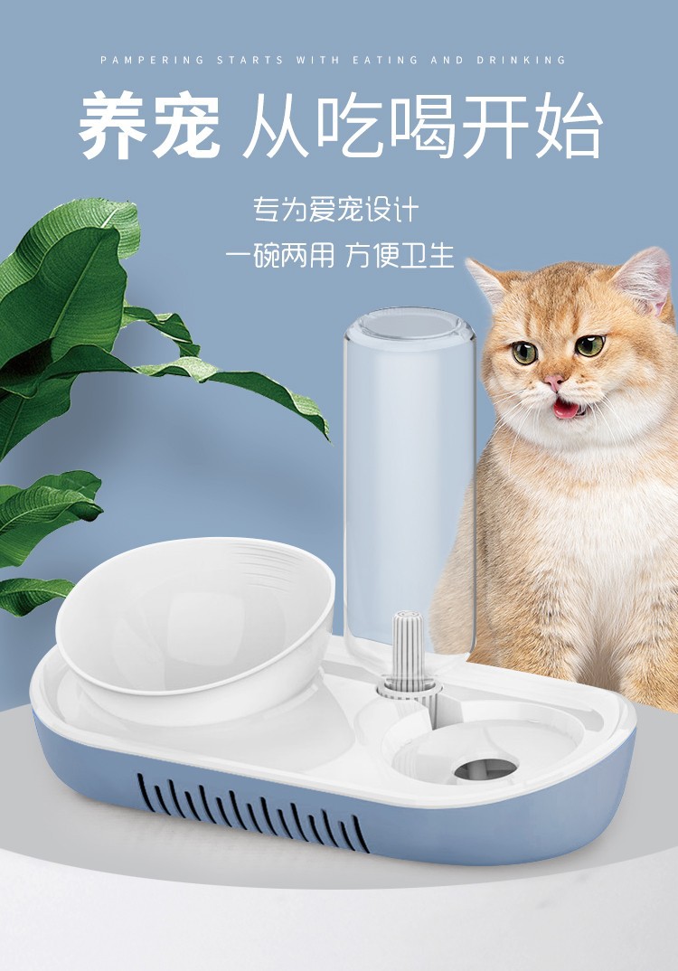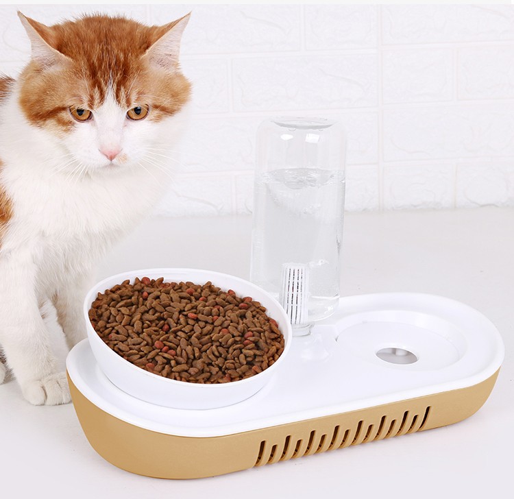 Bebedero para gatos, tazón para gatos, alimentador automático, tazón integrado para agua potable y comida para gatos, comida para gatos, suministros para mascotas sin electricidad