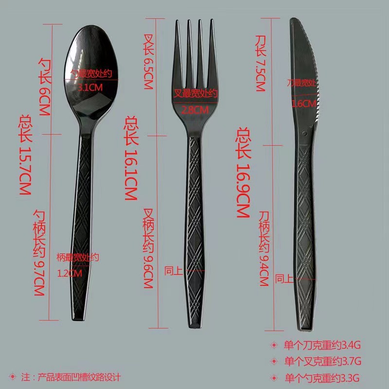 | Color | Cuchillo de plástico desechable,Horquilla de plástico desechable,Cuchara de plástico desechable |