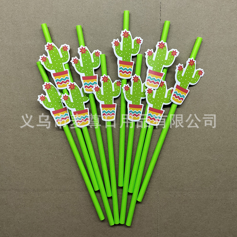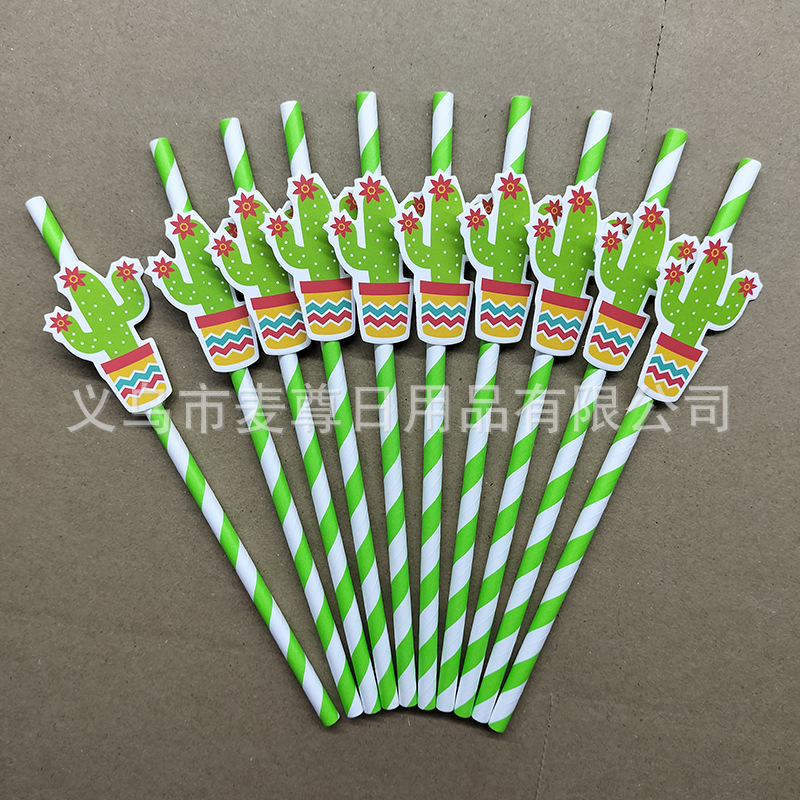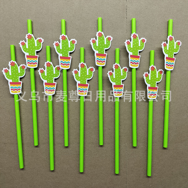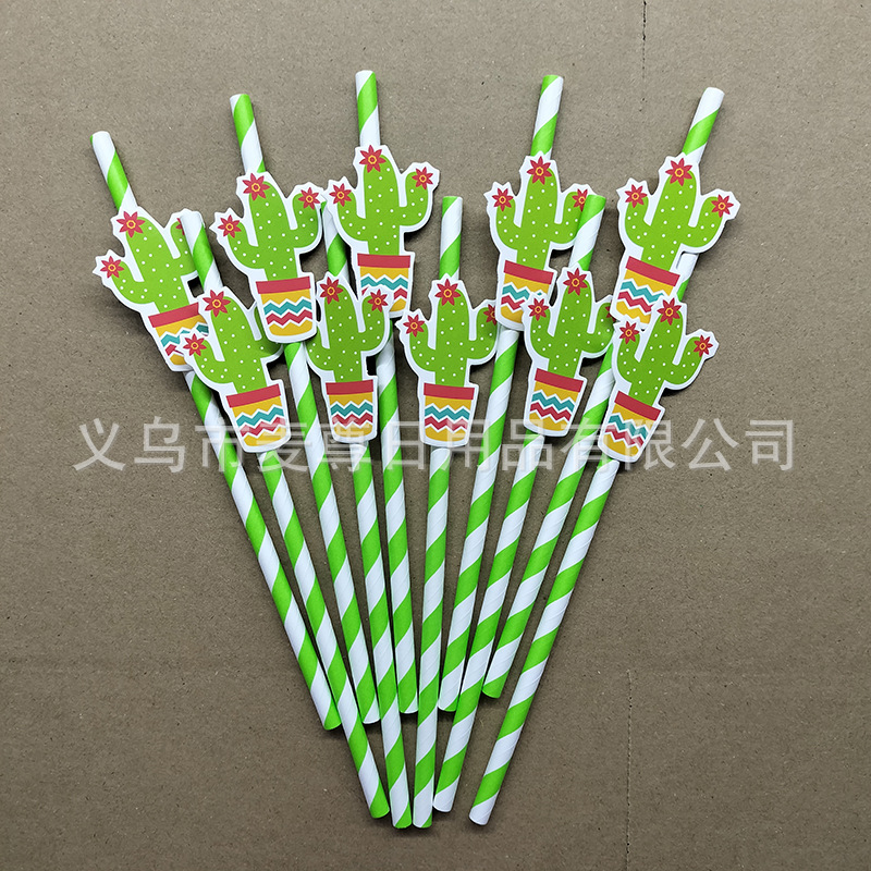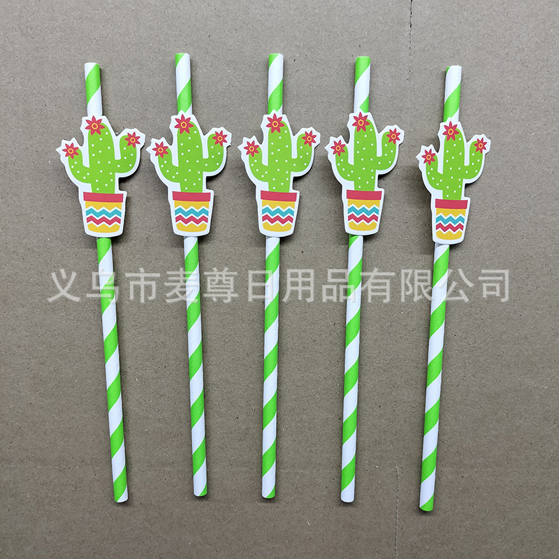 Pajitas de papel, tarjetas de cactus, pajitas decorativas, postres degradables desechables, pasteles, cócteles, fiestas, pajitas de papel