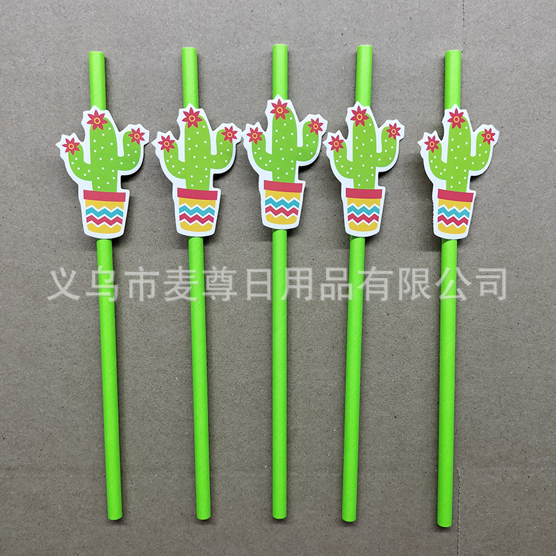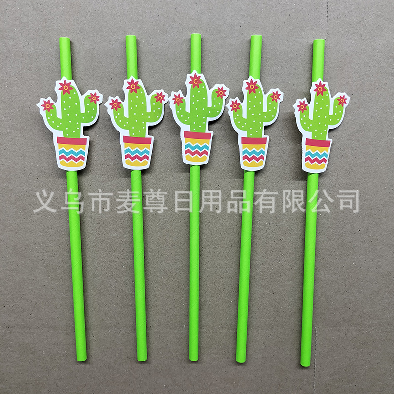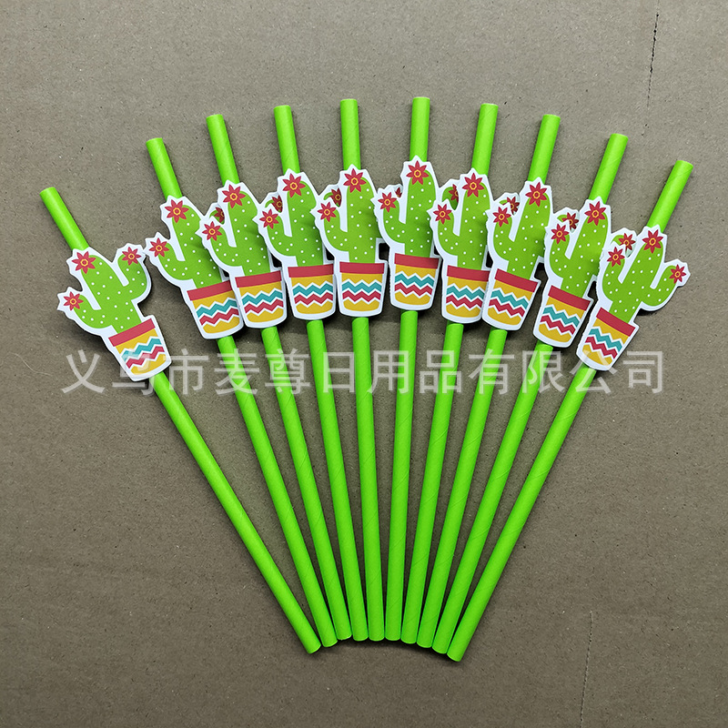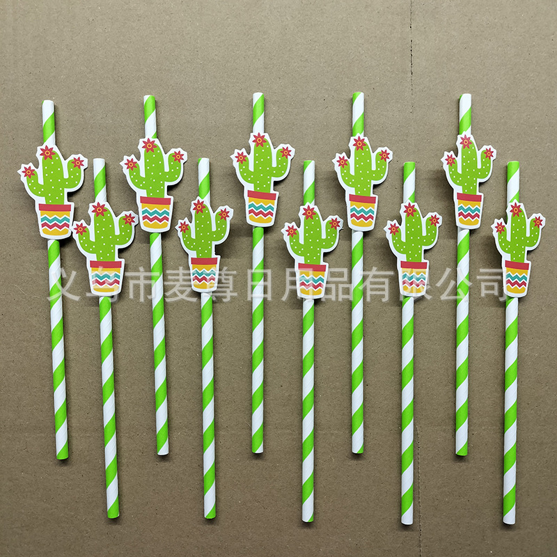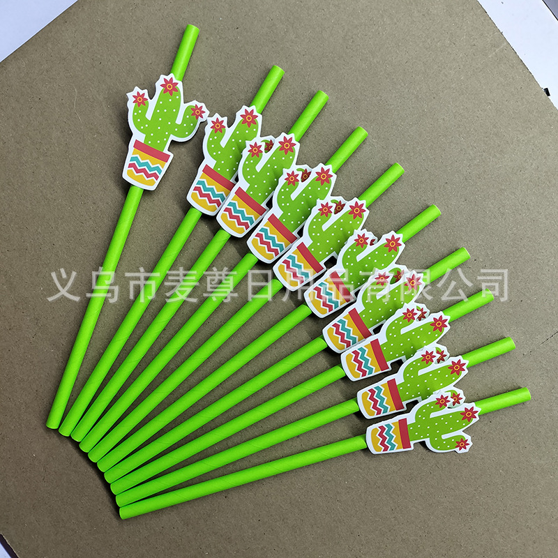 Pajitas de papel, tarjetas de cactus, pajitas decorativas, postres degradables desechables, pasteles, cócteles, fiestas, pajitas de papel