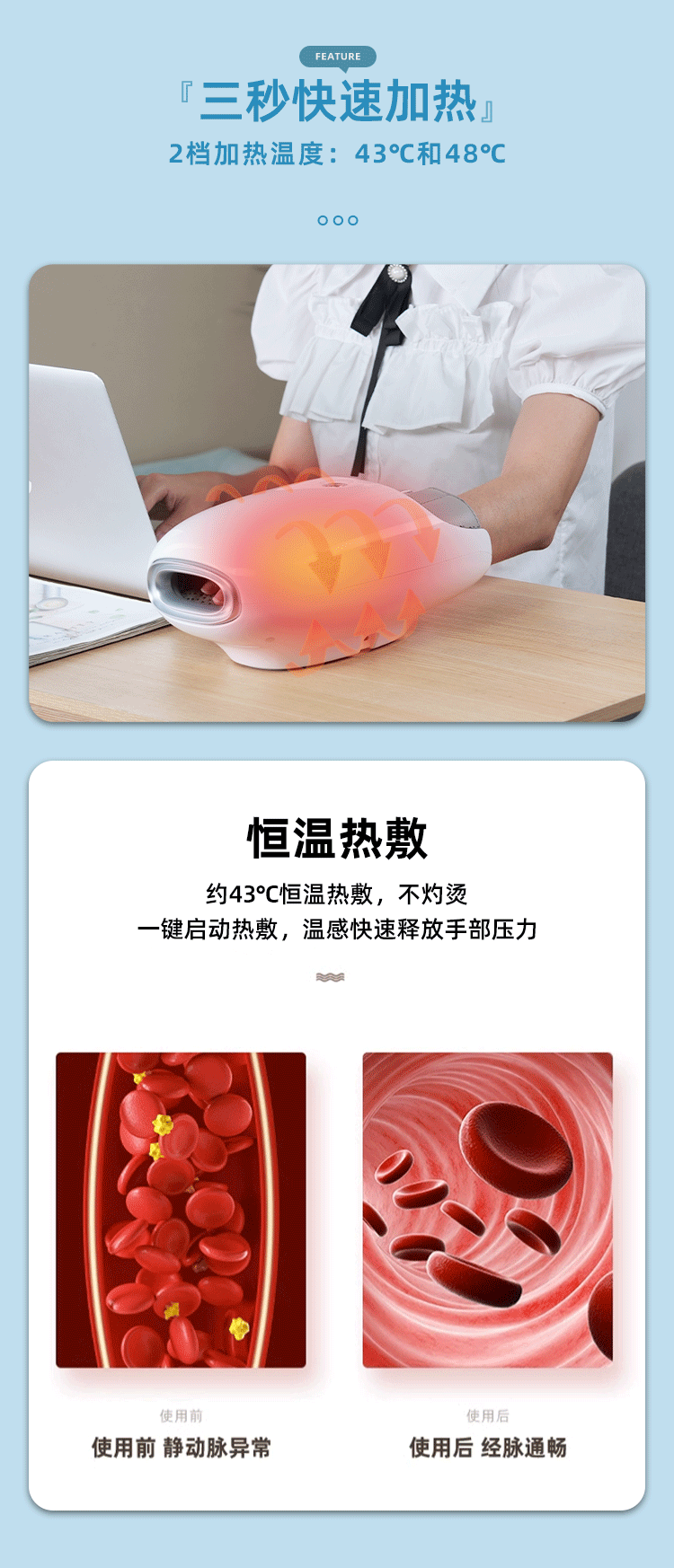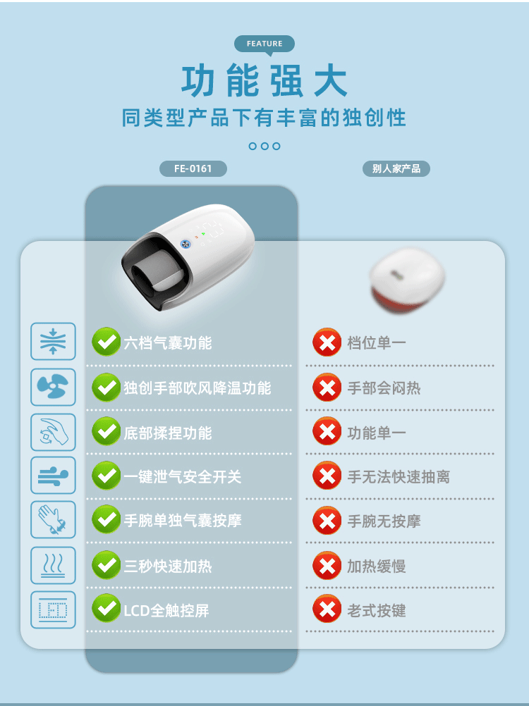 Transfronterizo de calefacción secador de pelo masaje de mano rodillo masaje de mano instrumento de belleza bolsa de aire eléctrica masaje de mano amasado