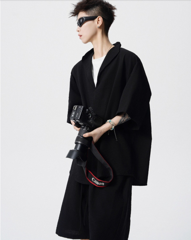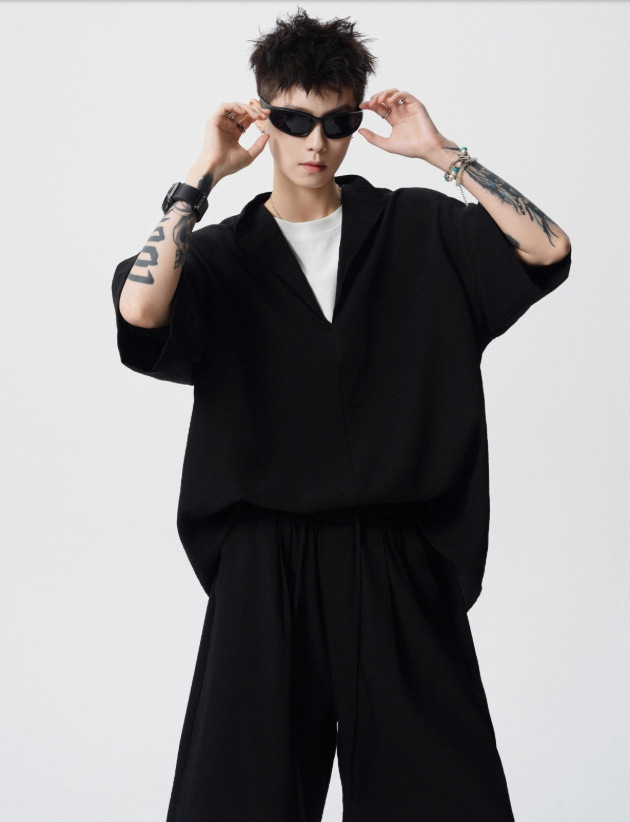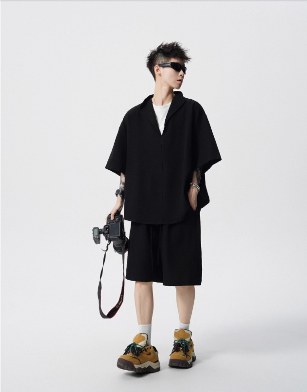 Nuevo verano suelto de tamaño grande falso dos piezas camiseta de manga corta pantalones cortos conjunto simple de alto nivel sentido antiguo estilo de dinero dos piezas conjunto