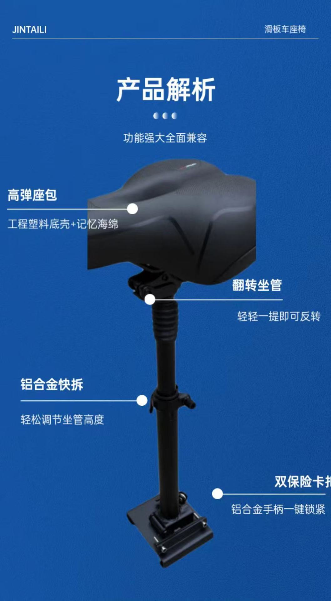 Venta caliente Xiaomi scooter eléctrico asiento adaptado 1S / PRO soporte de amortiguación cojín antideslizante coche de batería plegable