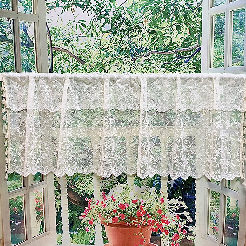 Cortina de café fresca francesa, ventana salediza, cortina de gasa de encaje, gabinete de cocina, protección contra el polvo, cortina corta sin perforaciones, venta al por mayor transfronteriza