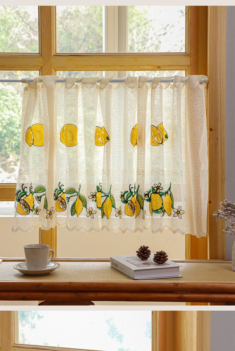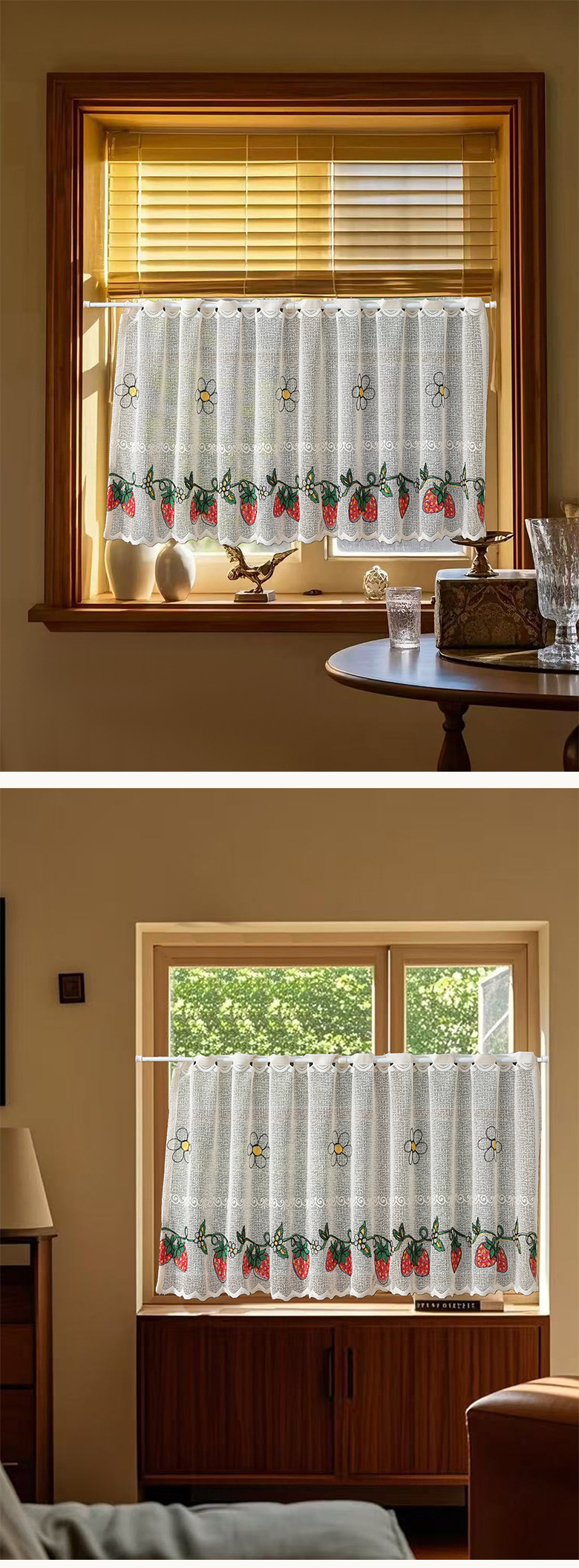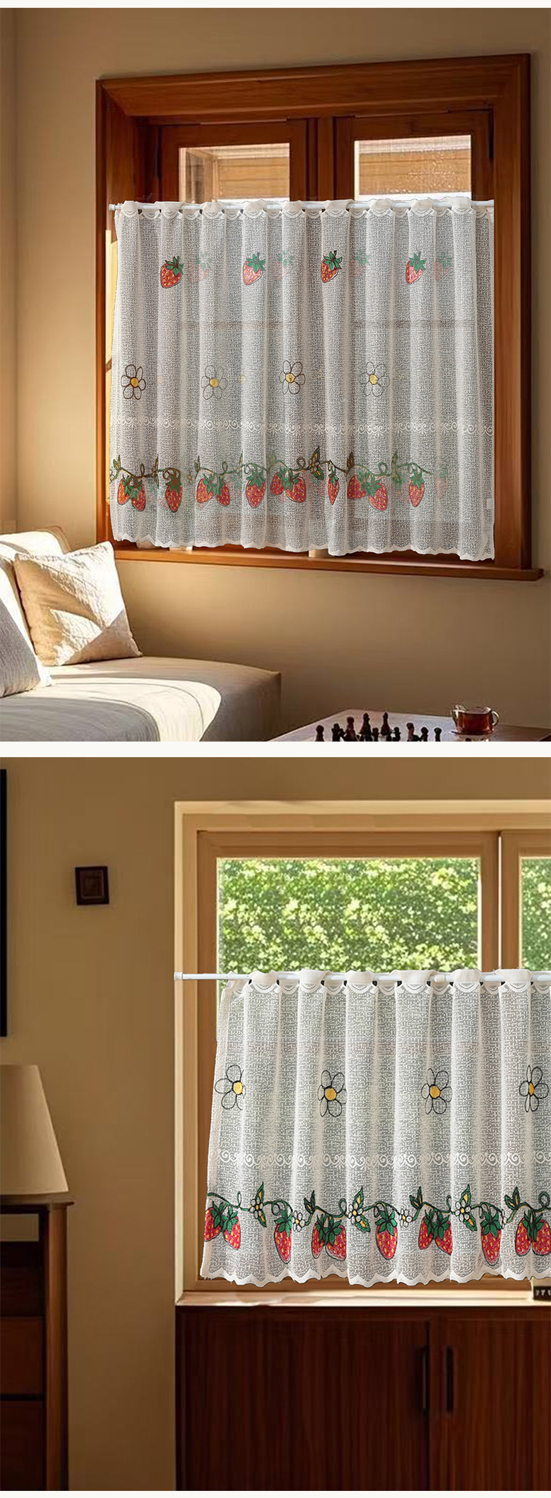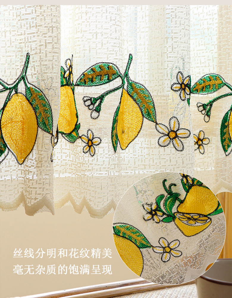 Nuevas cortinas de café transfronterizas, pequeñas, frescas, a prueba de polvo, bordadas, cortinas transparentes, impermeables, sin perforaciones, estadounidenses