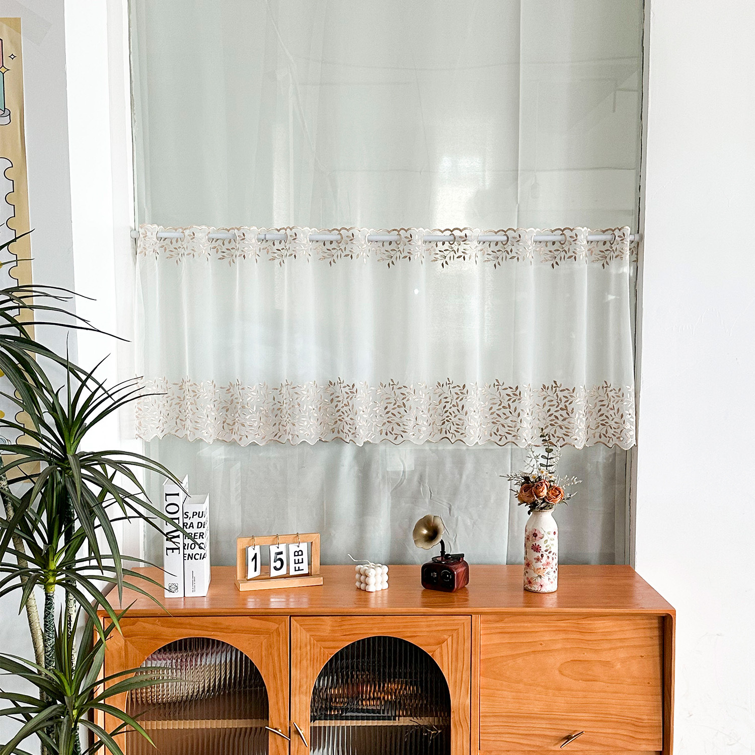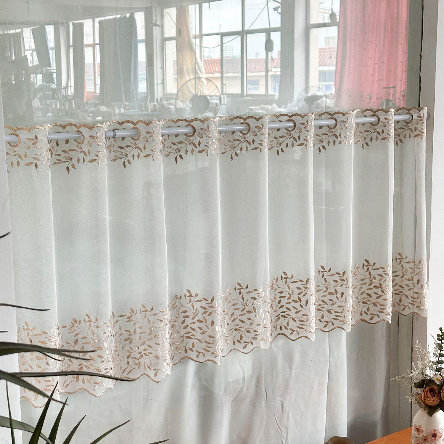 Bordado pastoral transfronterizo encaje con cuentas cortina de ventana cortina de café cortina corta media cortina cortina americana restaurante al por mayor