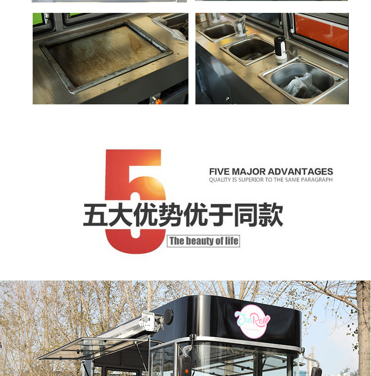 Mercado nocturno multifuncional desayuno rápido móvil carro de barbacoa frito red de té de leche roja venta de bocadillos carro