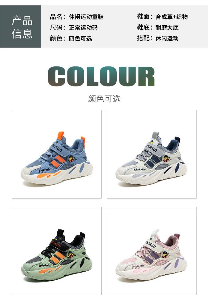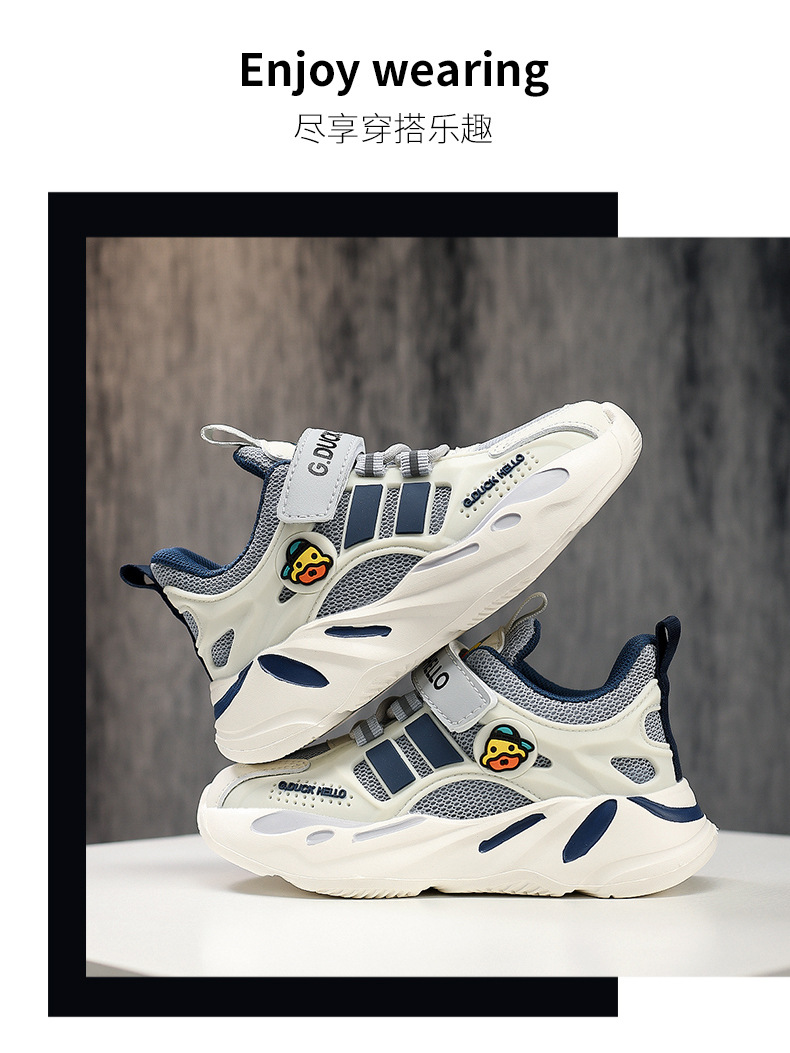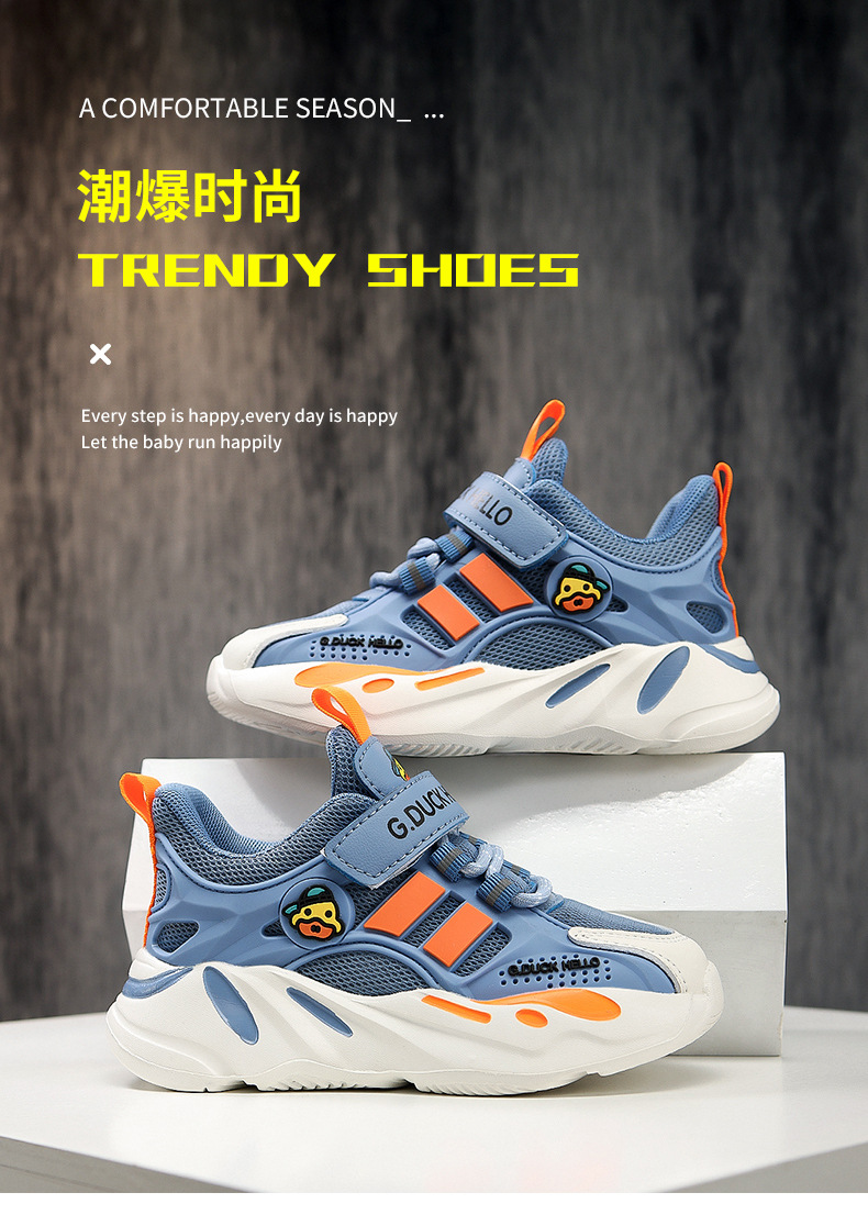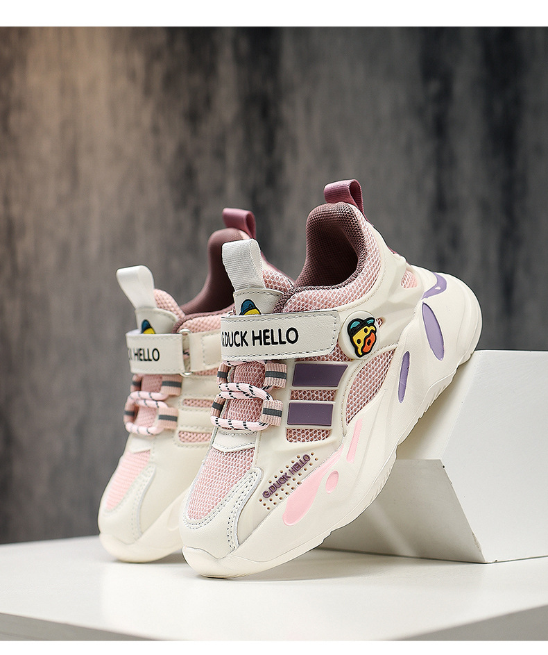 Zapatos de pato amarillo 2024 nuevos zapatos de primavera y otoño para niños con suela suave doble red transpirable zapatos deportivos para niños niñas