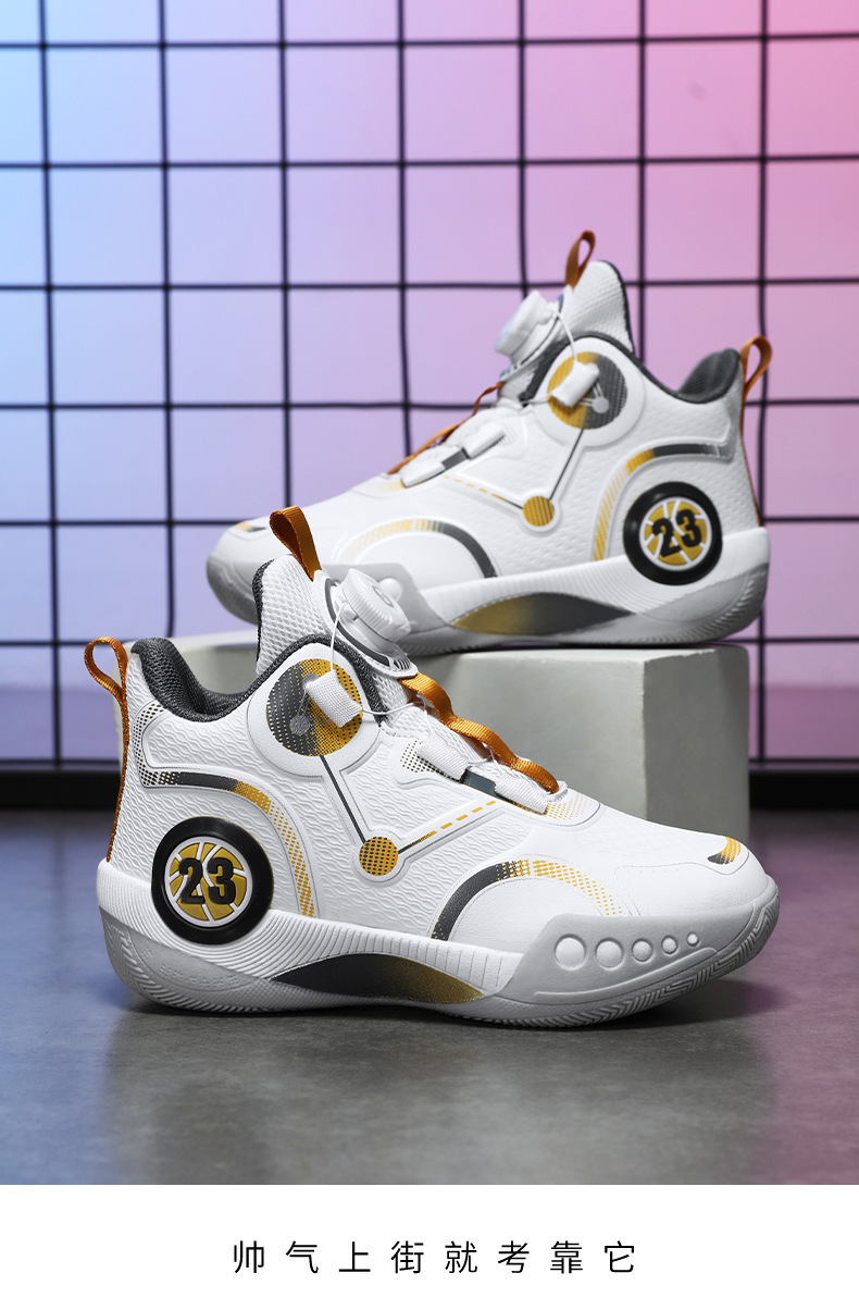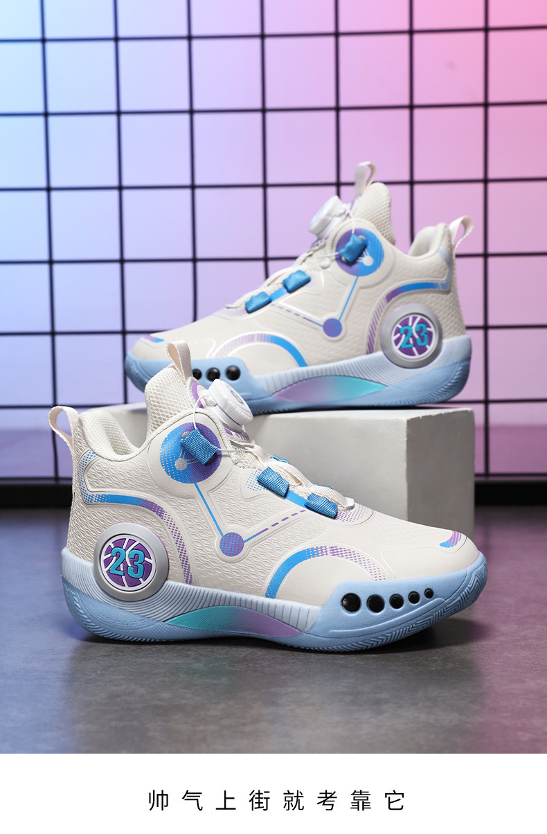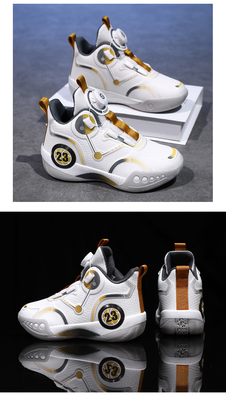 Zapatillas de baloncesto para niños 2025 primavera y otoño estilo caliente zapatos de entrenamiento de combate real para niños zapatos para correr con botones giratorios antideslizantes para niños grandes