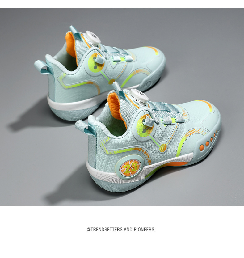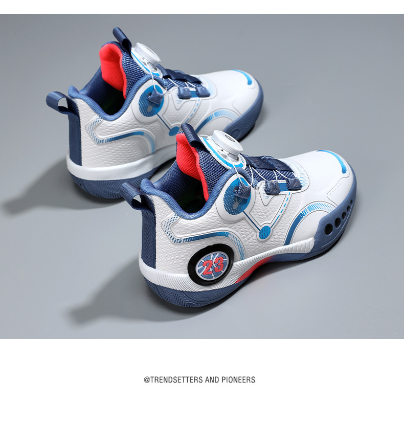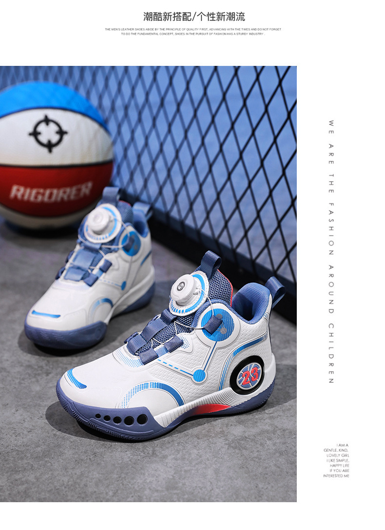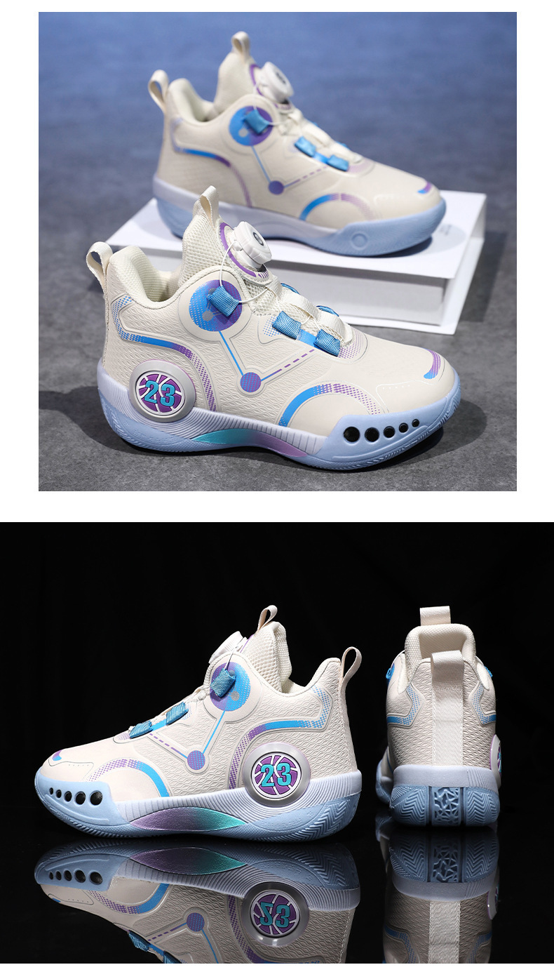 Zapatillas de baloncesto para niños 2025 primavera y otoño estilo caliente zapatos de entrenamiento de combate real para niños zapatos para correr con botones giratorios antideslizantes para niños grandes