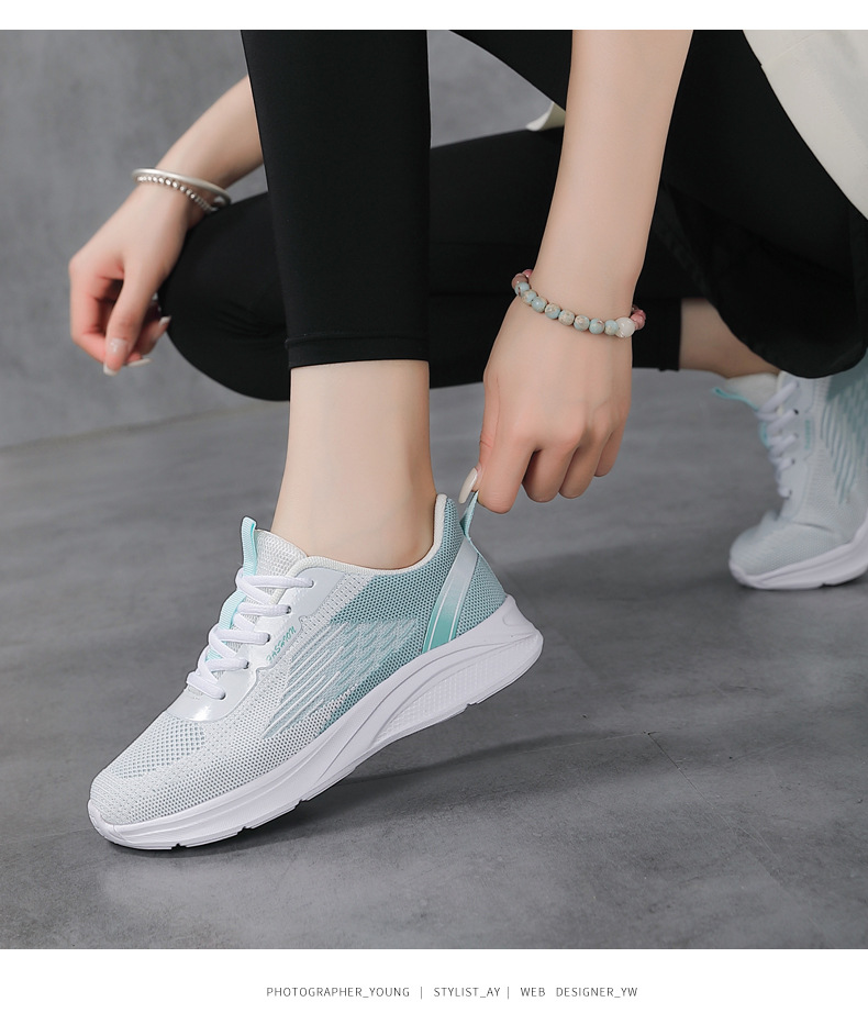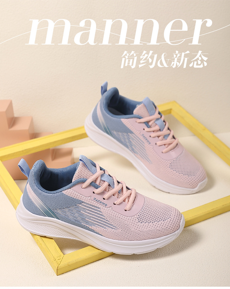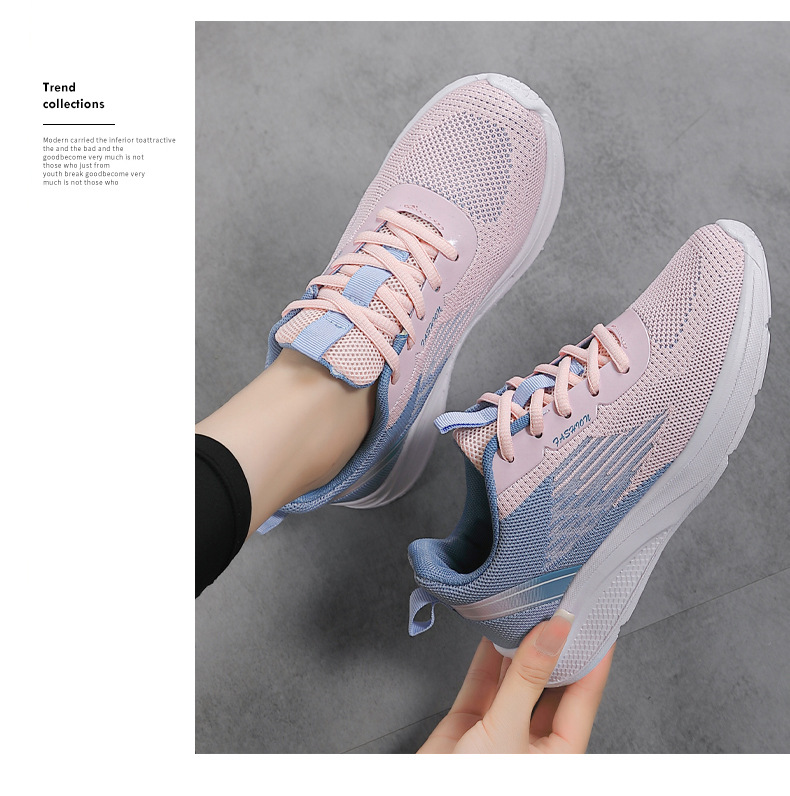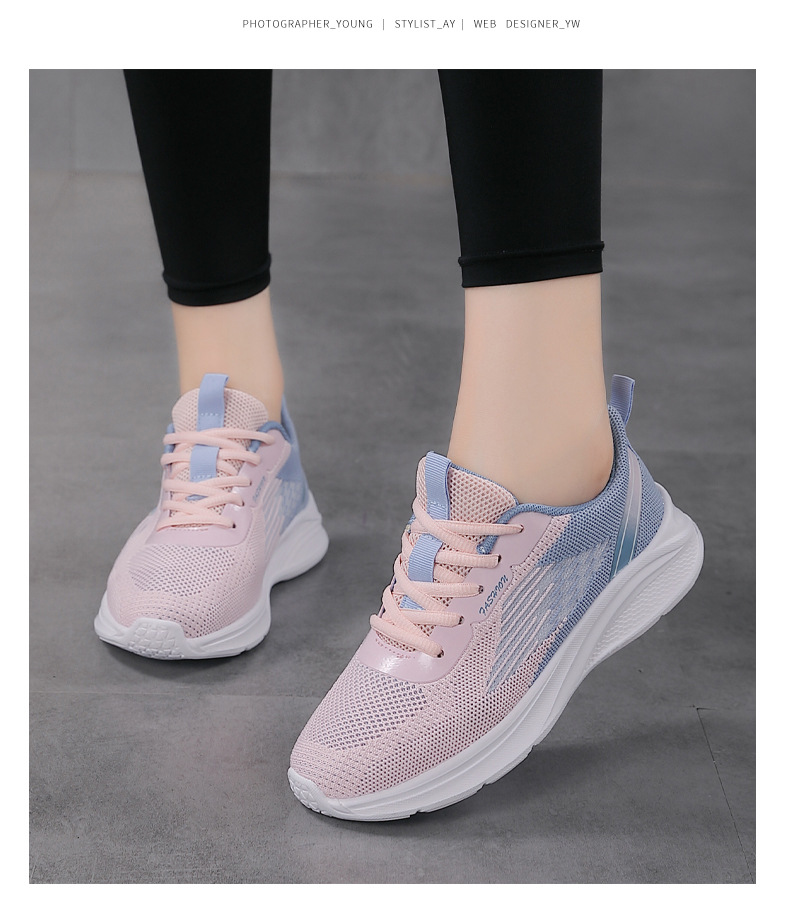 Calzado deportivo de marca para mujer verano fino tejido volador superficie de malla transpirable ultraligero suela suave con amortiguación zapatos de fitness antideslizantes zapatos para correr