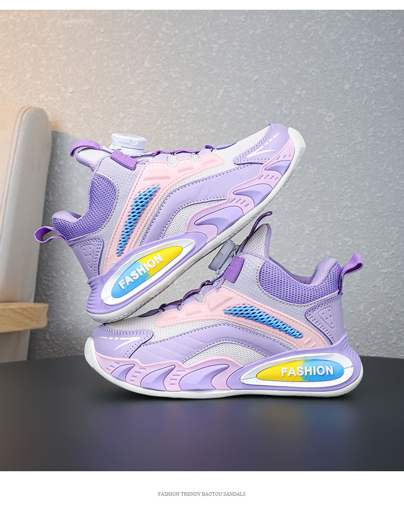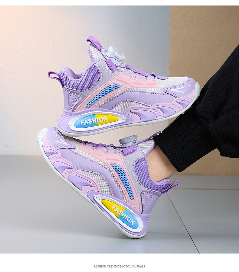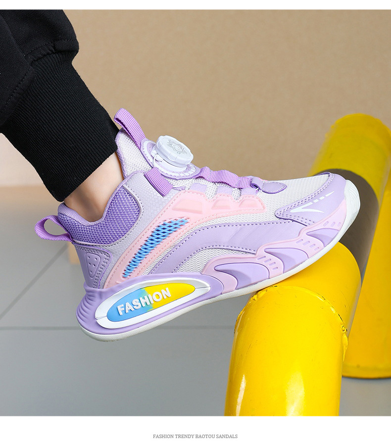 Ligero transpirable y cómodo de moda para niñas zapatos deportivos de botón giratorio casuales para niños zapatos de malla para niños grandes