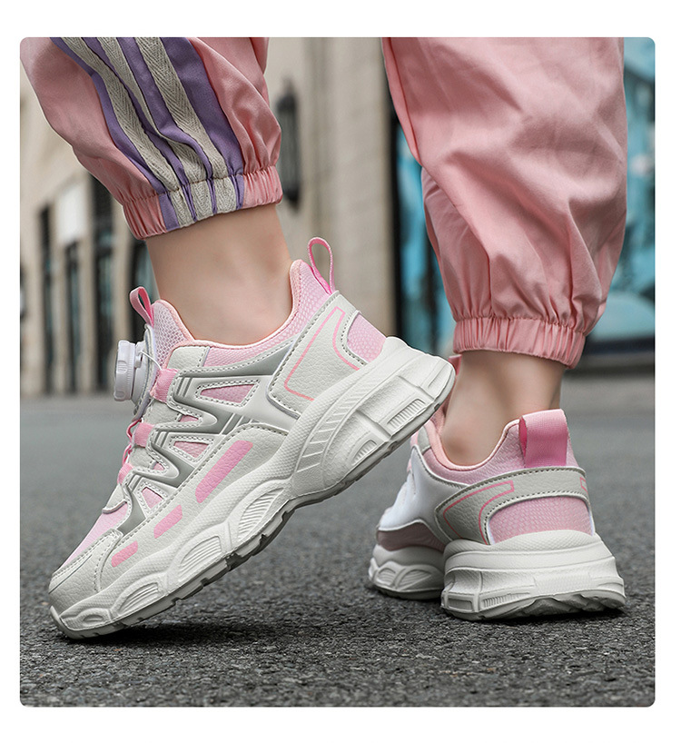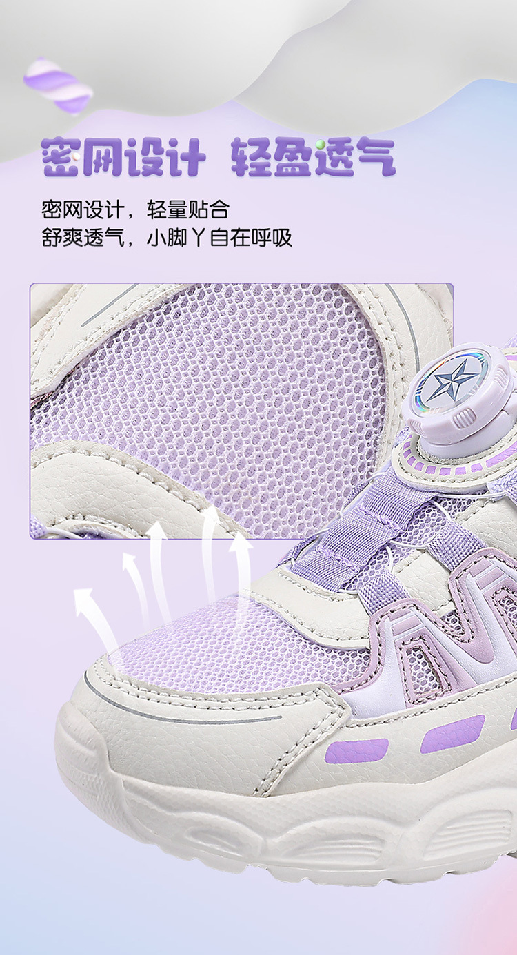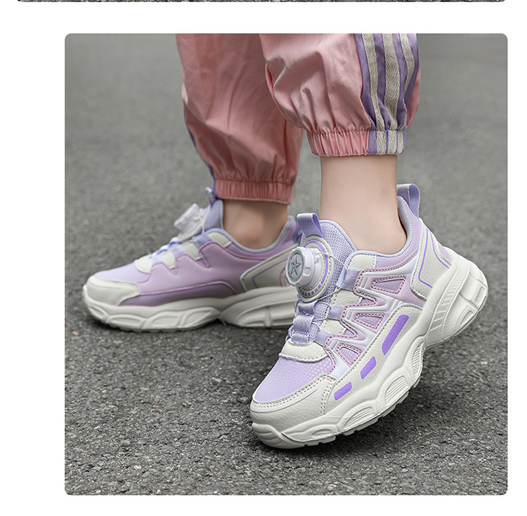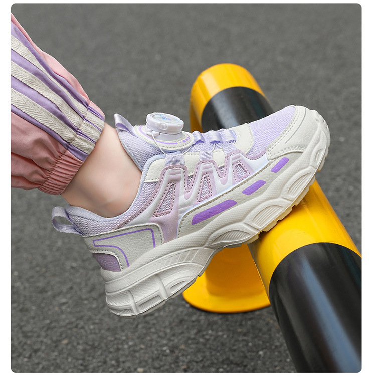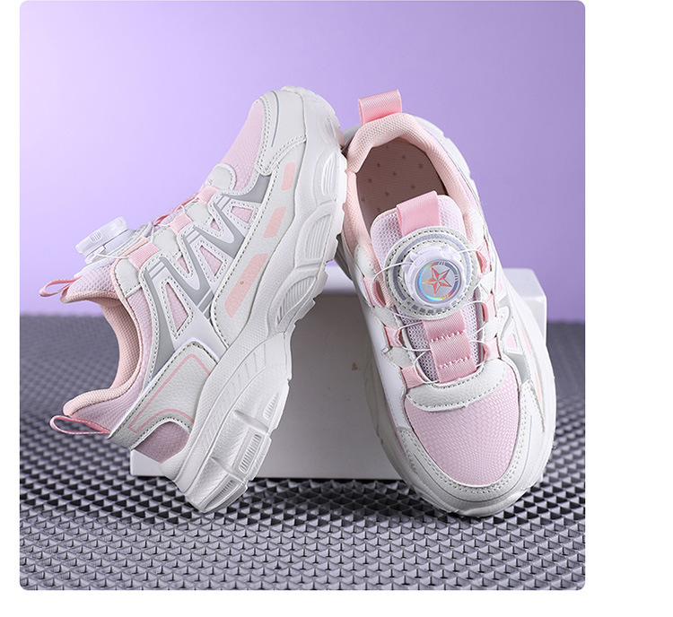 Zapatos de niñas 2024 otoño nuevo botón giratorio transpirable de malla zapatos deportivos para niños con suela suave zapatos casuales antideslizantes para niños