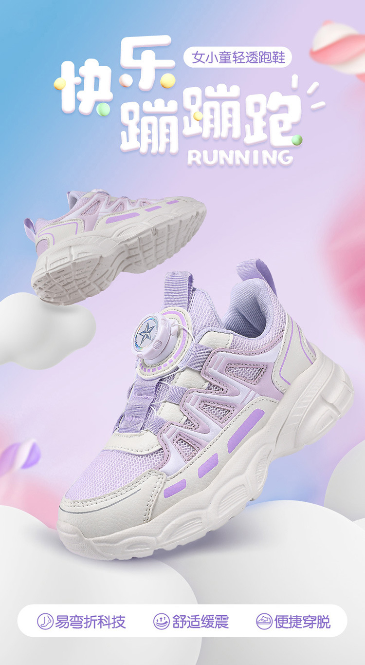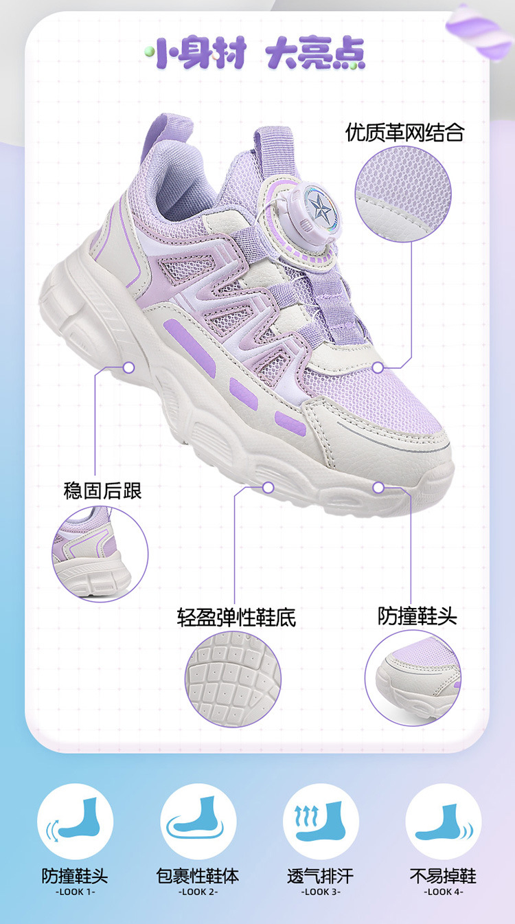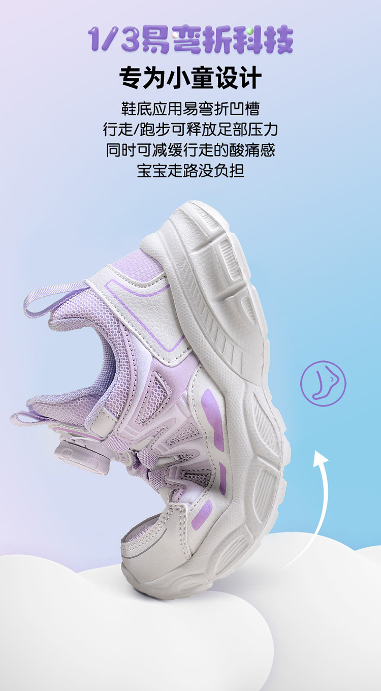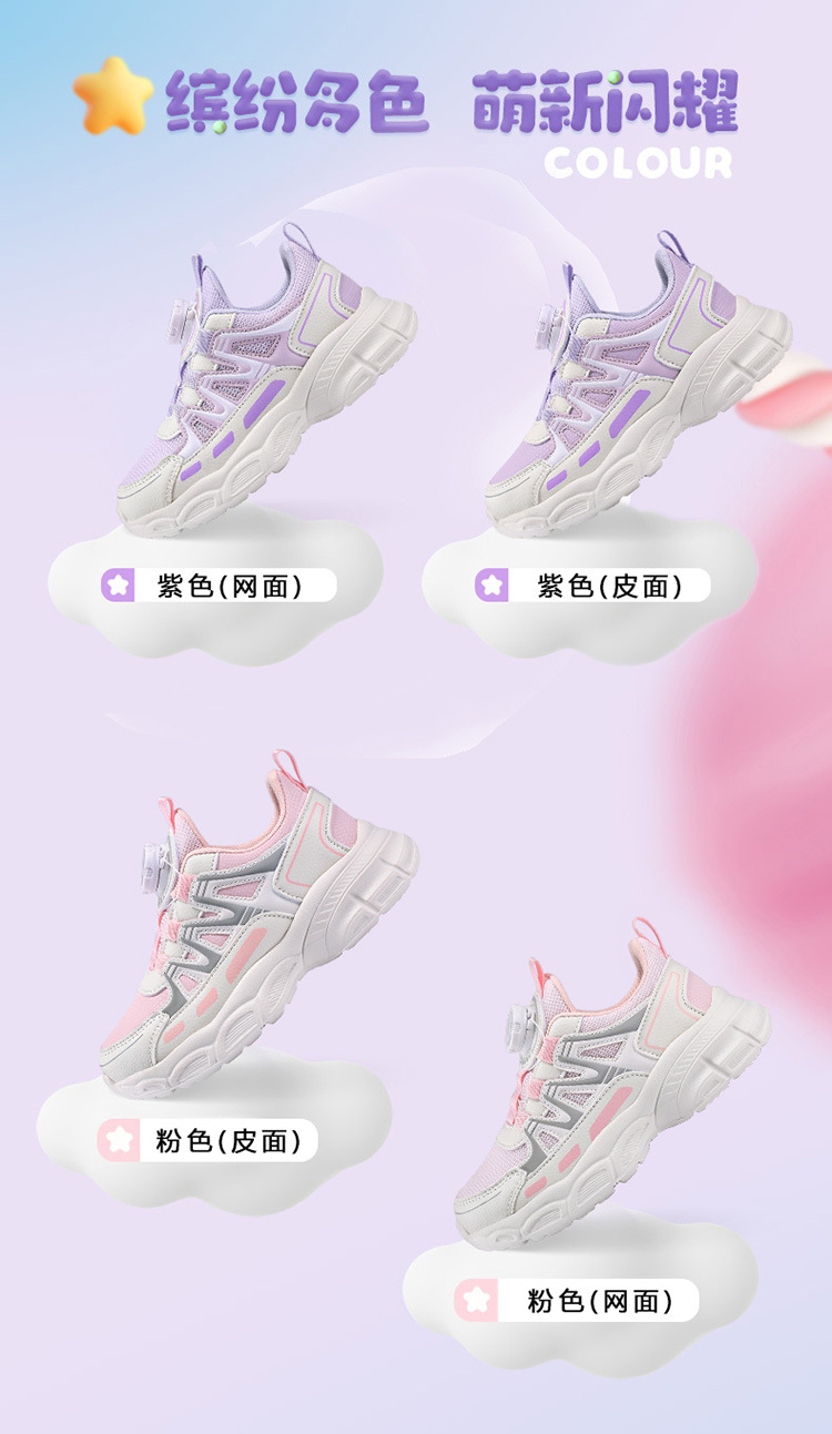 Zapatos de niñas 2024 otoño nuevo botón giratorio transpirable de malla zapatos deportivos para niños con suela suave zapatos casuales antideslizantes para niños